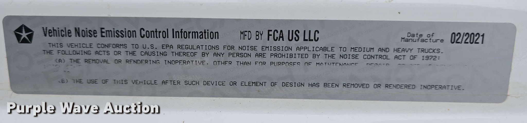 This 2021 Dodge Ram 3500 utility bed pickup truck will sell to the highest bidder regardless of price.