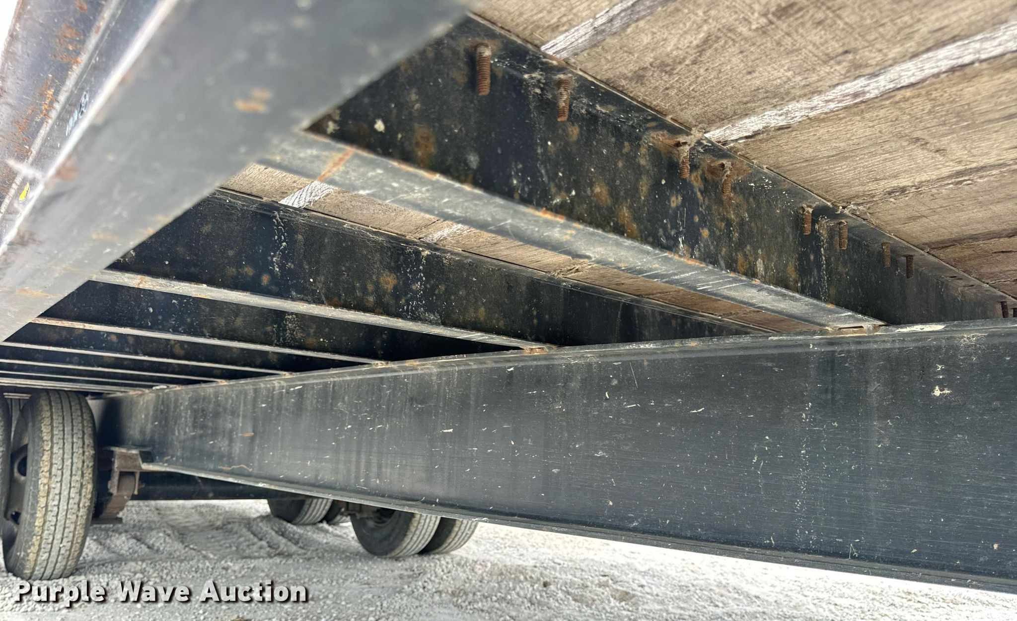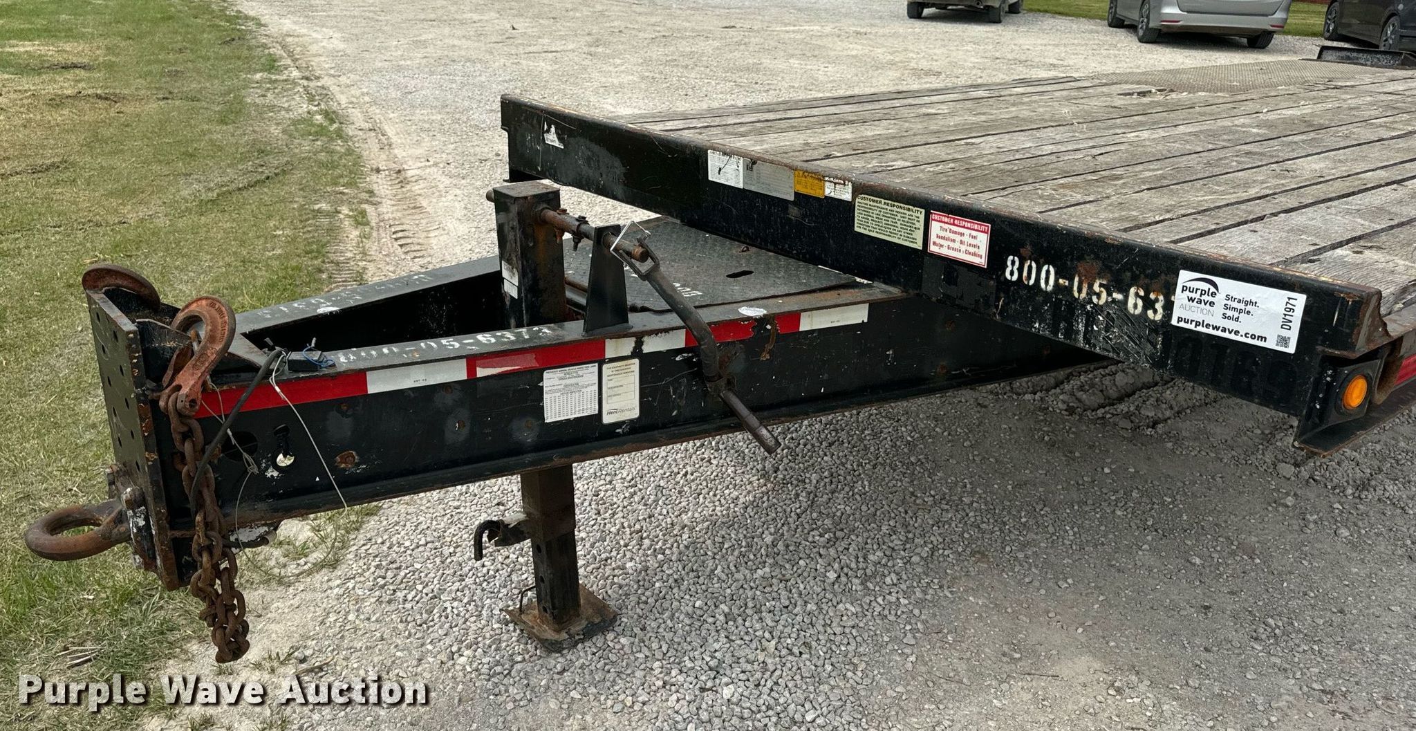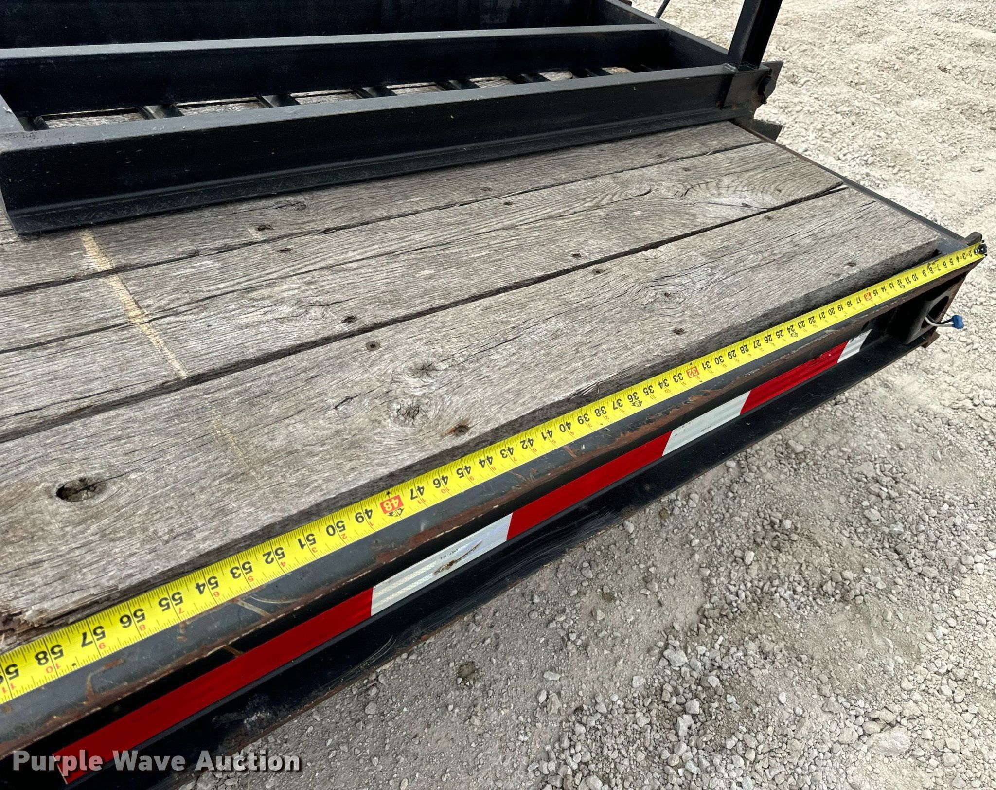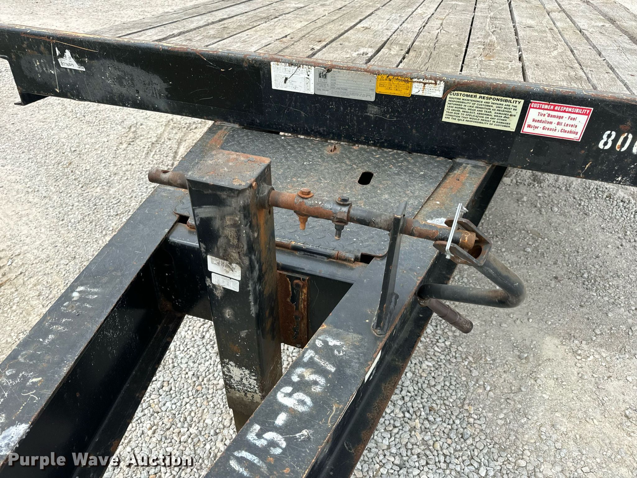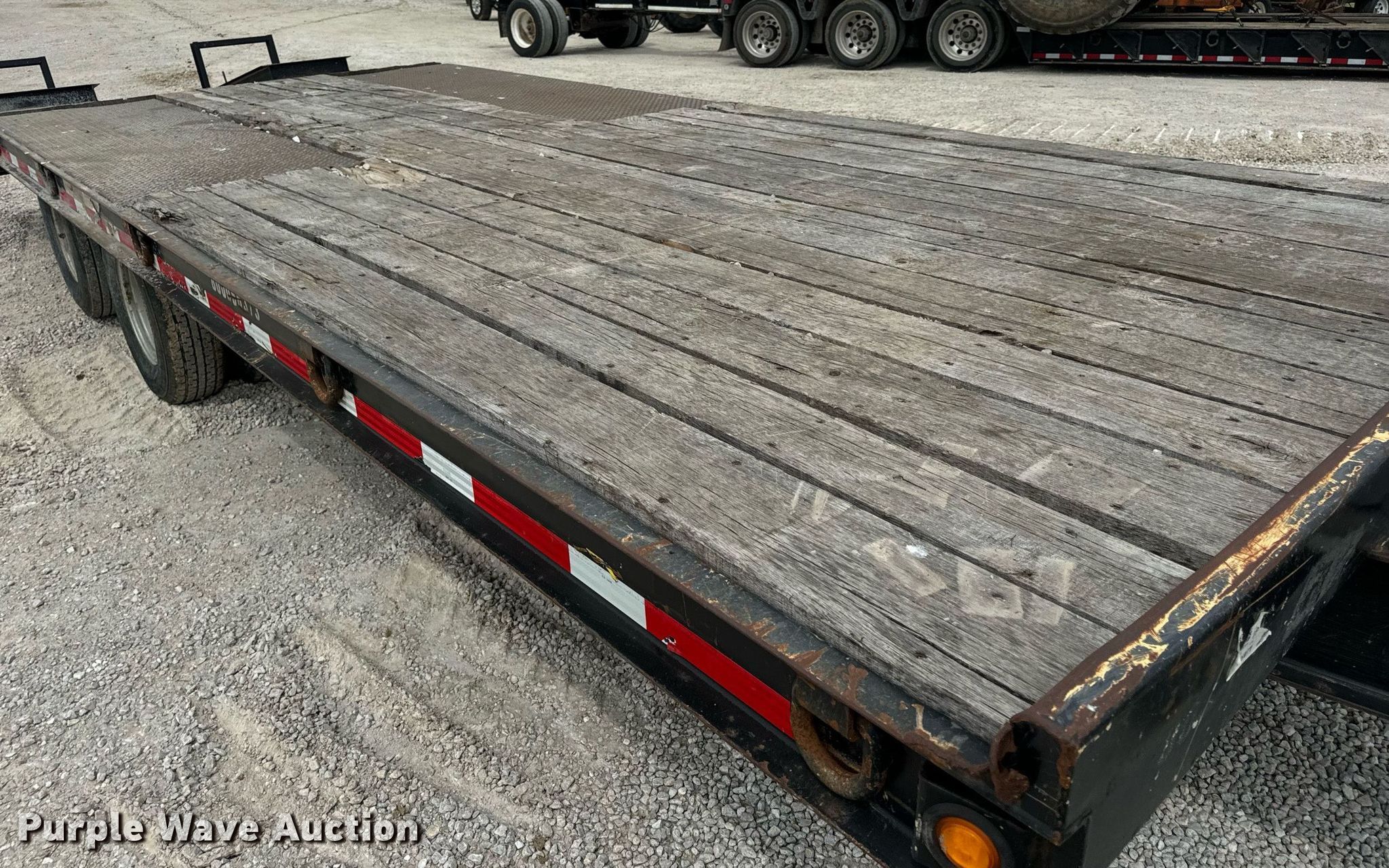 2015 Trail-King TK20LP-242 equipment trailer. VIN: 1TKC02420FR047434. Dimensions Overall: 30' 8" L x 101" W, Deck: 19' L x 101" W, Tail length: 61", Ramps: Manual Length: 54". Features Deck type: Steel, Wood. Chassis Hitch: Pintle, Landing gear: Single, Suspension: Spring, Brakes: Electric, Axles: Tandem, GVWR: 25,990 lbs, GAWR: 10,000 lbs. Tires Steel wheels, Size: ST235/80R16. Missouri title. Title has a lien that will be released following the close of the auction. Title distribution may be delayed up to 30 days from verification of funds. Hardy Holding Group. Boonville , MO 65233