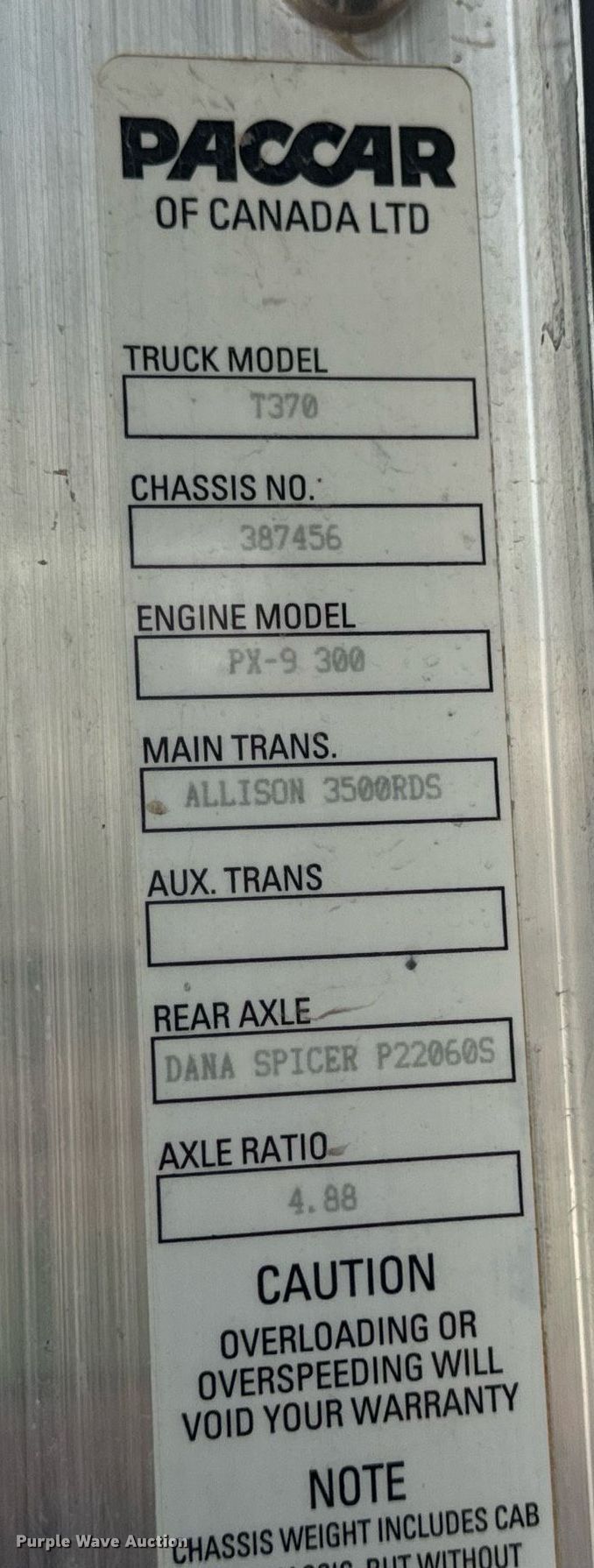 2020 Kenworth T370 utility / service truck. Miles: 194,571 on odometer, Hours: 6,688 on meter, VIN: 2NKHHJ7XXLM387456, Unit #: 396. Engine Paccar PX-9, Serial: 74492425, Displacement: 8.9L, Cylinders: 6, Fuel type: Diesel, HP: 300. Transmission Allison 3500RDS, Automatic. Chassis Axles: Single, Suspension: Air, Brakes: Air, PTO, GVWR: 33,000 lbs. Interior AC, Heat, Heated mirrors, Power windows, Power locks, Cruise control, Auxiliary controls. Features Bed Knapheide KMT-2, 14' 1" L x 94" W, Torch bottle rack, Air compressor Infinity 80, Crane Stellar 10621, Maximum boom length: 24' Maximum lift capacity: 10,000 lbs.. Tires Size: 11R22.5. View repairs. Missouri title. Title has a lien that will be released following the close of the auction. Title distribution may be delayed up to 30 days from verification of funds. Hardy Holding Group. Boonville , MO 65233