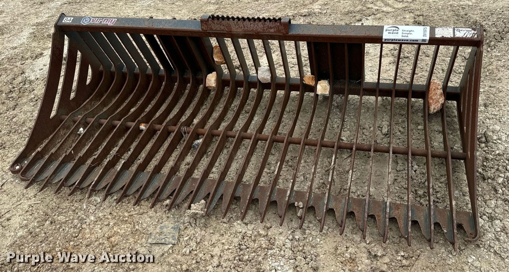 Purple Wave is selling a used Skid Steer Attach. in Missouri. This item is a Virnig skid steer rock bucket with the following: Width: 86"