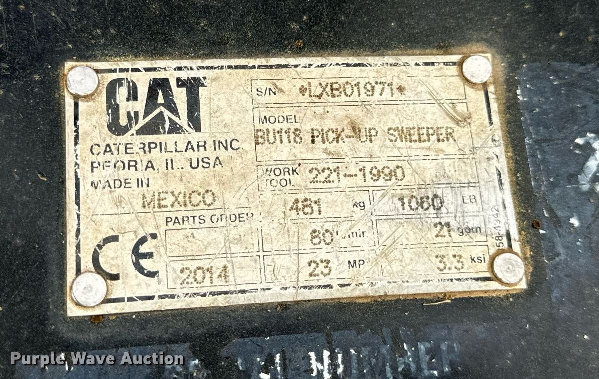 Take a look at this used 2014 Caterpillar BU118 skid steer broom being sold on June 5th, 2025 in the SOLD! June 05 Construction Equipment Auction made by Caterpillar. Take a look at all of the item information below or take a look at similar auctions for Skid Steer Loaders.