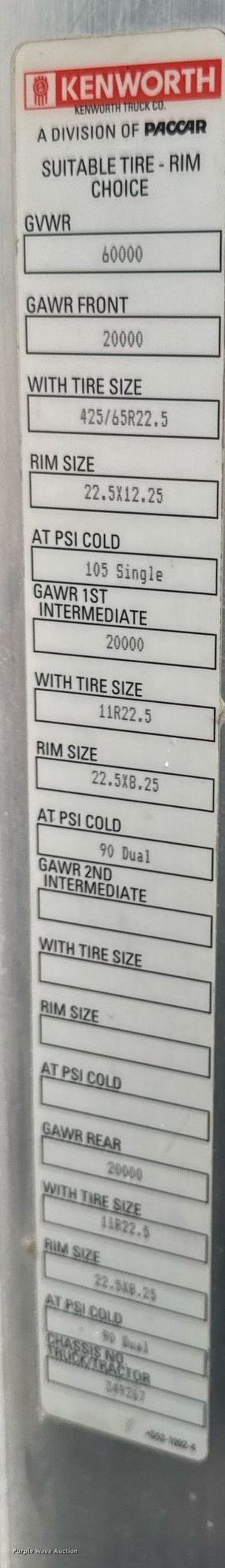 - Front: 425/65R22.5