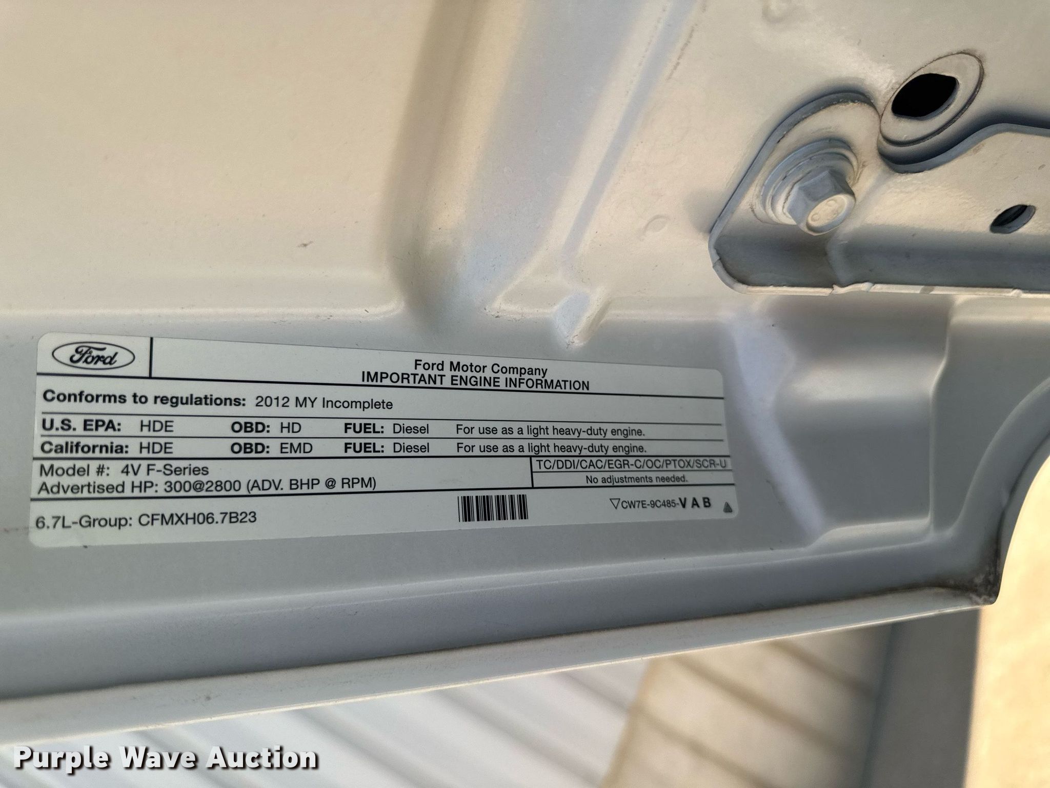 2012 Ford F550 Super Duty XL flatbed truck. Miles: 138,141 on odometer, VIN: 1FDUF5GT7CEC38573. Engine Displacement: 6.7L, Cylinders: 8, Fuel type: Diesel. Transmission Automatic. Chassis Axles: Single, Suspension: Spring, Brakes: Hydraulic, GVWR: 19,500 lbs. Interior AC, Heat, Heated mirrors, Power windows, Power locks, Cruise control, Auxiliary controls, Brake controller. Features Flatbed Paflinger, 17' 5" L x 96" W, End gate lift Thieman, Capacity: 3,000 lbs. Tires Size: 225/70R19.5. Notes Non-operational engine, blown , Non-operational unit Unit must be towed or hauled. Iowa title. Title distribution may be delayed up to 14 days from verification of funds. Baker Group. Cedar Rapids, IA 52404
