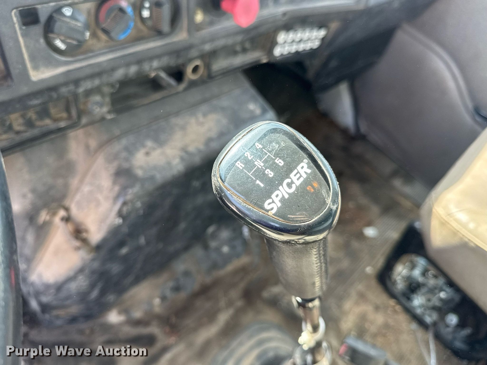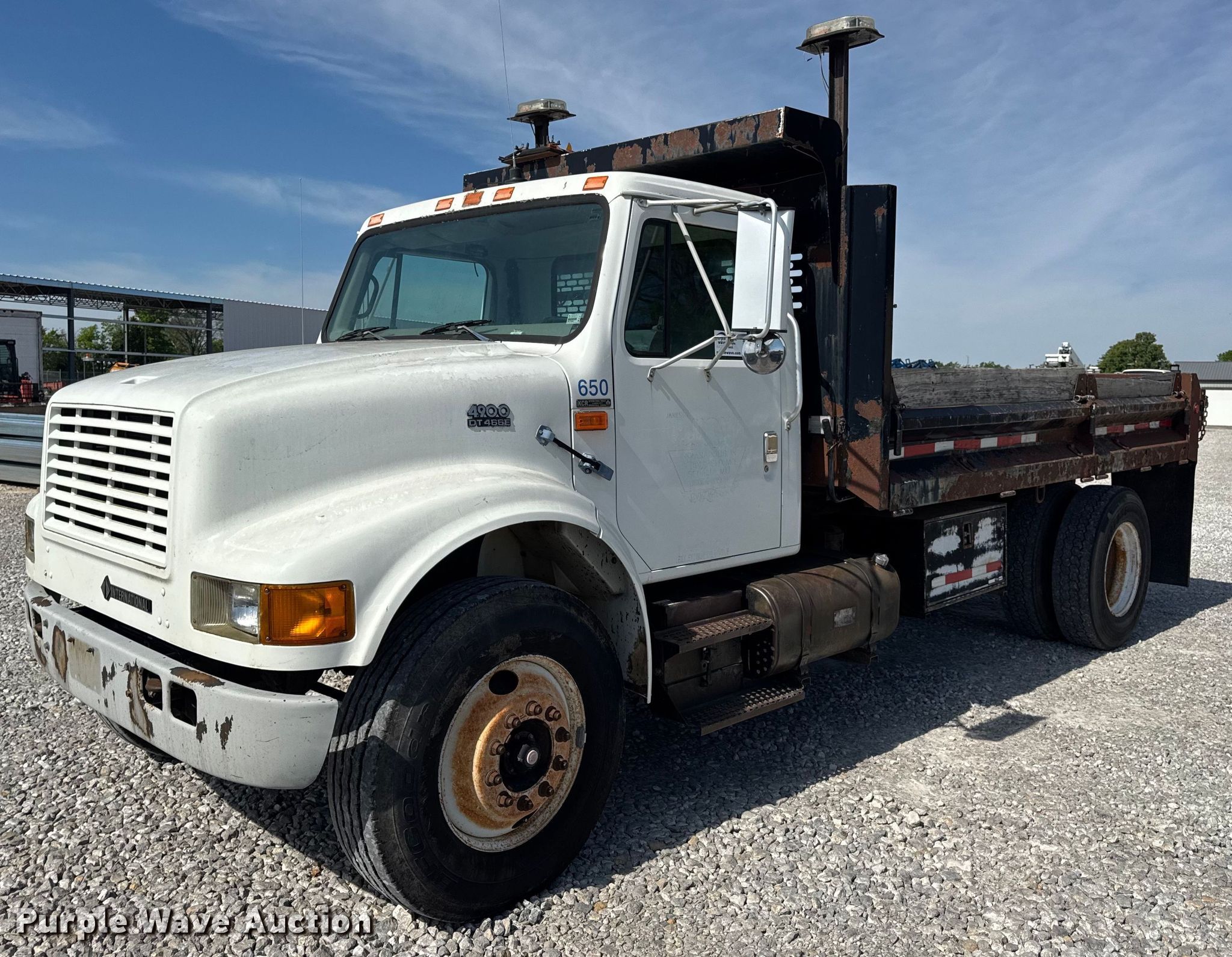 2000 International 4900 dump flatbed truck. Miles: 185,169 on odometer, VIN: 1HTSDAAN4YH276744, Unit #: 650. Engine International DT466E, Displacement: 7.6L, Cylinders: 6, Fuel type: Diesel. Transmission Spicer, Manual, Speed: 10. Chassis Axles: Single, Suspension: Spring, Brakes: Air, PTO. Interior Heat, Cruise control, Brake controller. Features Dump flatbed Henderson Manufacturing 14X13XFDS, Serial: MK4-08798, 14' L x 95" W, Ram: Single. Tires Size: 11R22.5. Notes Oil leak, Rust damage, Tires damaged. Missouri title. Title distribution may be delayed up to 14 days from verification of funds. James H. Drew Corp.. Sedalia, MO 65301