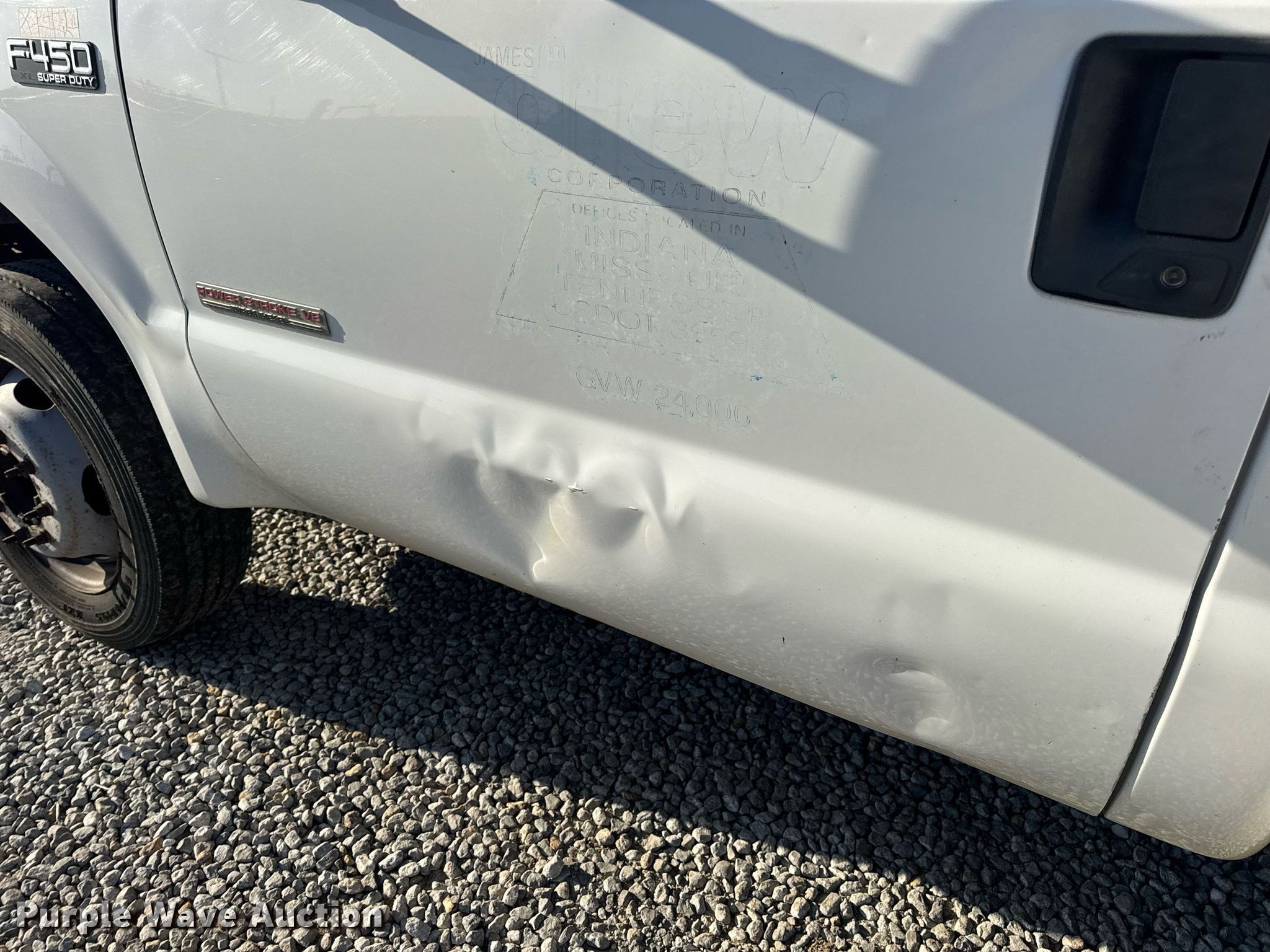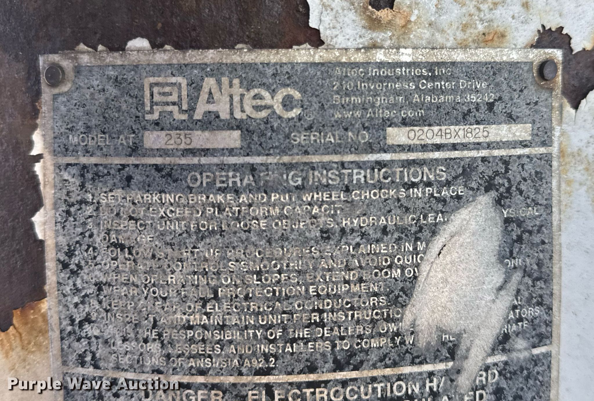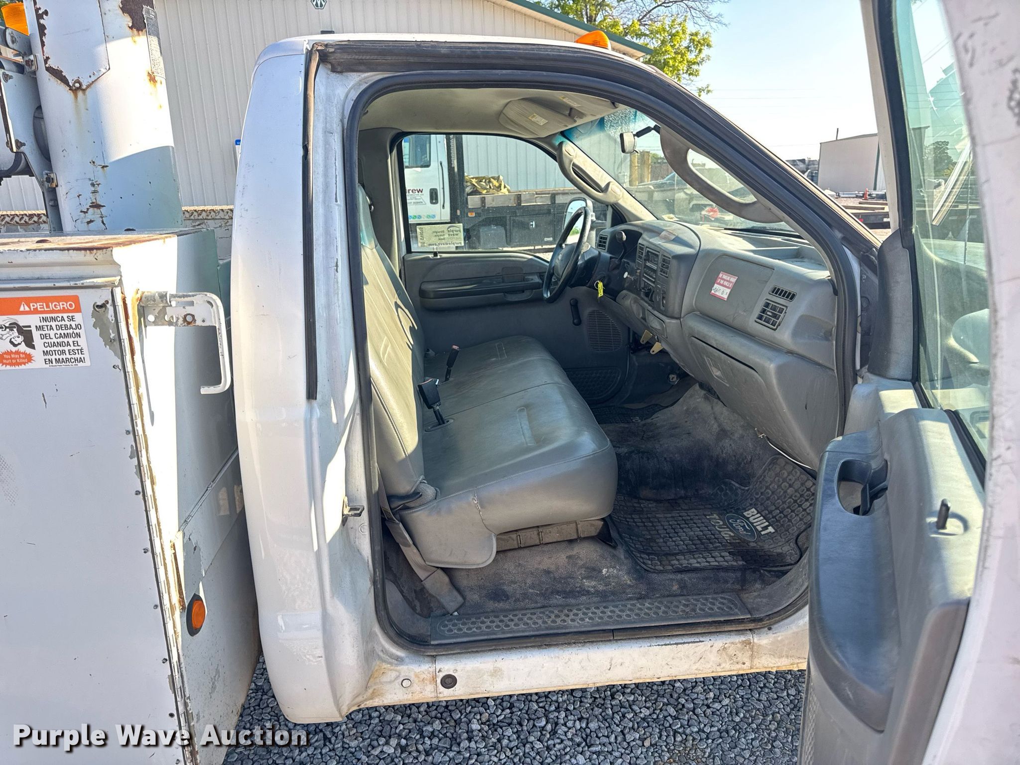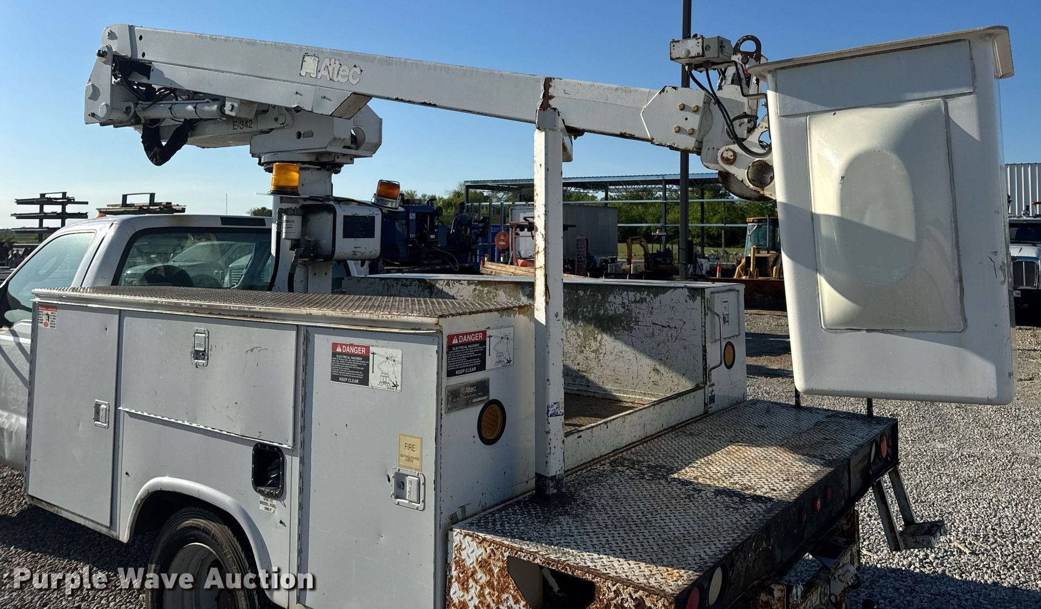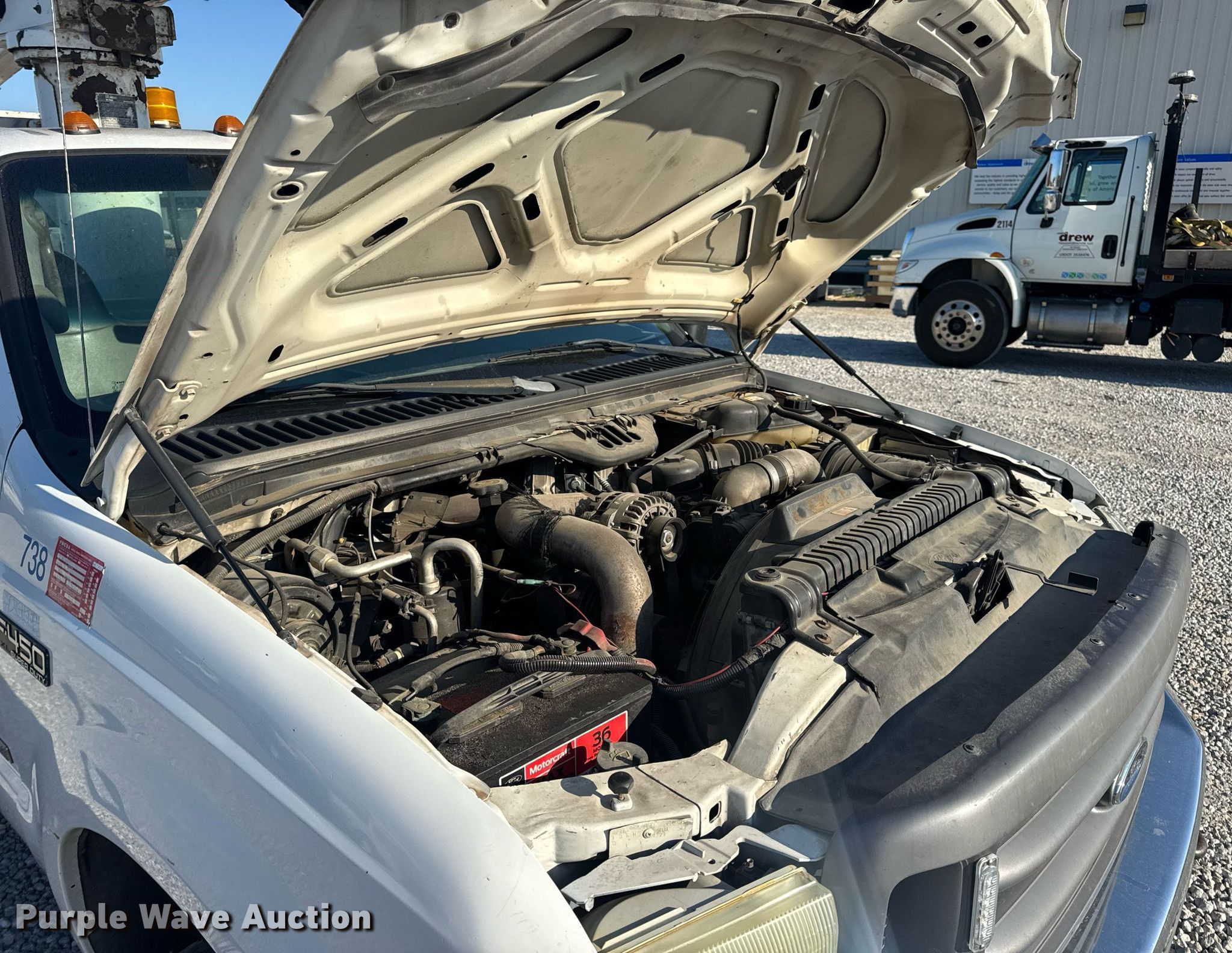 2004 Ford F450 Super Duty XL bucket truck. Miles: 250,584 on odometer, VIN: 1FDXF46P04EC15455, Unit #: 738. Engine Displacement: 6.0L, Cylinders: 8, Fuel type: Diesel. Transmission Automatic. Chassis Axles: Single, Suspension: Spring, Brakes: Hydraulic, PTO, GVWR: 15,000 lbs. Interior AC, Heat, Auxiliary controls. Features Bed Knapheide 6108D54J, Serial: 066074-2004S, 9' x 94" W, Boom Altec 235, Serial: 0204BX1825, Maximum lift capacity: 300 lbs, Maximum lift height: 35', Boom type: Articulating, Telescopic, Man basket, Boom controls Ground, Platform/ basket.. Tires Size: 225/70R19.5. Notes Dead battery, Non-operational engine , Non-operational unit Unit must be towed or hauled. Missouri title. Title distribution may be delayed up to 14 days from verification of funds. James H. Drew Corp.. Sedalia, MO 65301