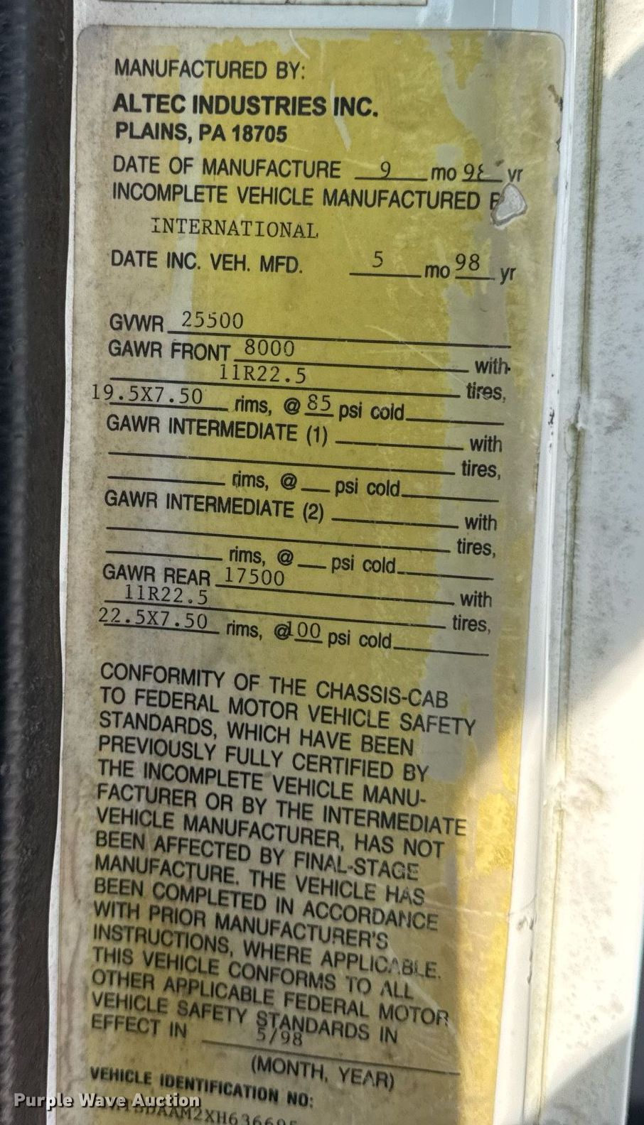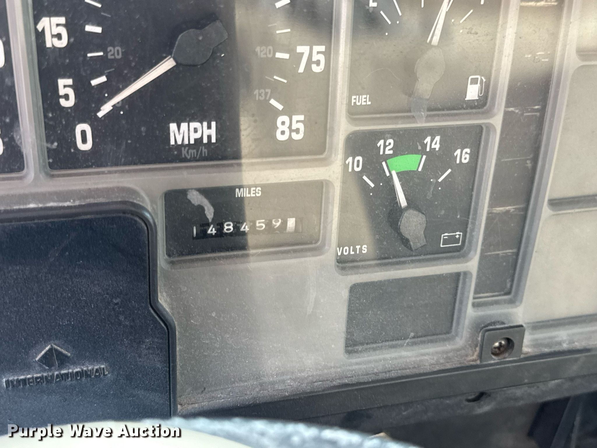 1999 International 4900 flatbed truck. Miles: 148,459 on odometer, Hours: 11,290 on meter, VIN: 1HTSDAAM2XH636695, Unit #: 856. Engine International DT466E, Serial: 469HM2U1106463, Displacement: 7.6L, Cylinders: 6, Fuel type: Diesel. Transmission Allison, Automatic. Chassis Axles: Single, Suspension: Air, Brakes: Air, PTO, GVWR: 25,500 lbs. Interior AC, Heat, Cruise control, Auxiliary controls. Features Flatbed 13' 9" L x 96" W, Side height: 14". Tires Size: 11R22.5. Notes Power steering leak, Non-operational rear end, Unit must be towed or hauled. Missouri title. Title distribution may be delayed up to 14 days from verification of funds. James H. Drew Corp.. Sedalia, MO 65301