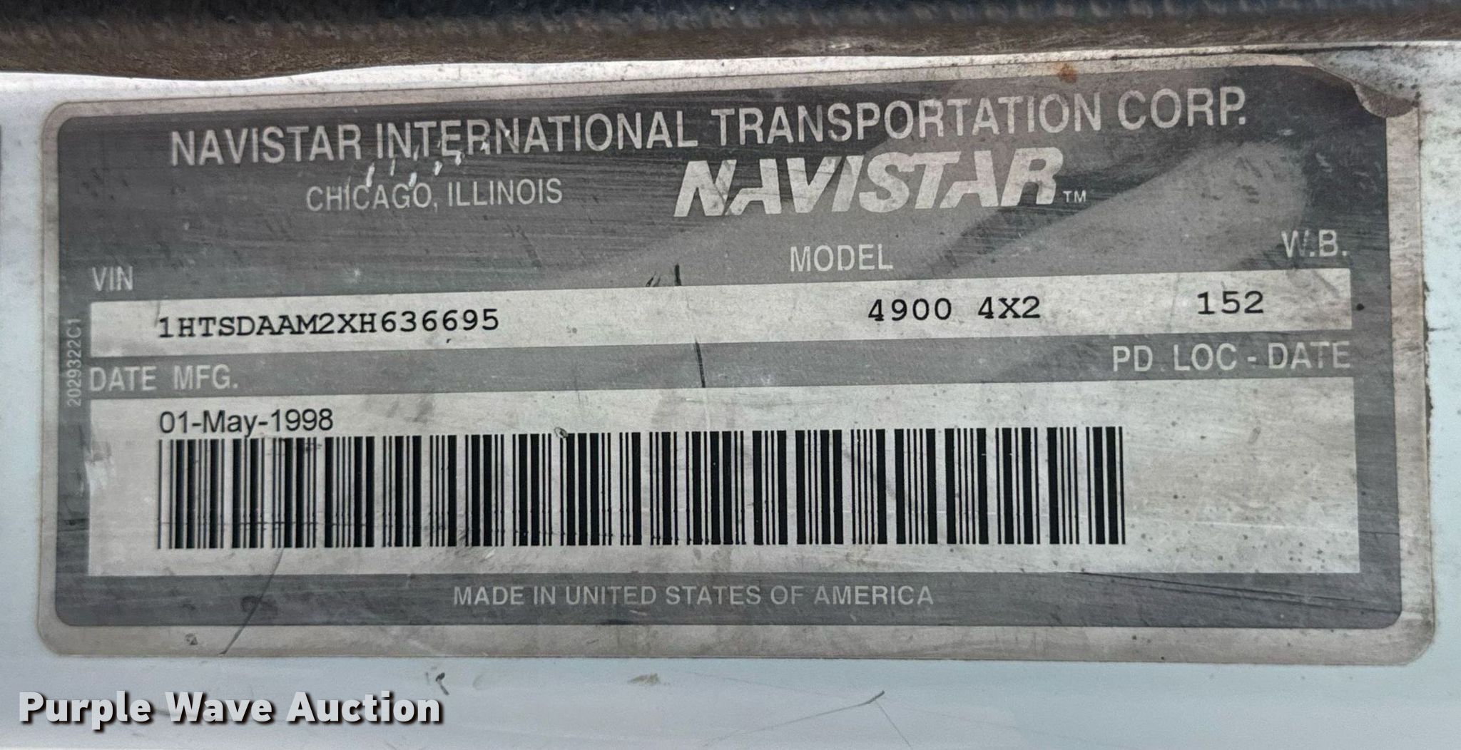 Purple Wave is selling a used Flat Bed Truck in Missouri. This item is a 1999 International 4900 flatbed truck with the following: Miles: 148,459 on odometer, Hours: 11,290 on meter, VIN: 1HTSDAAM2XH636695, Unit #: 856
