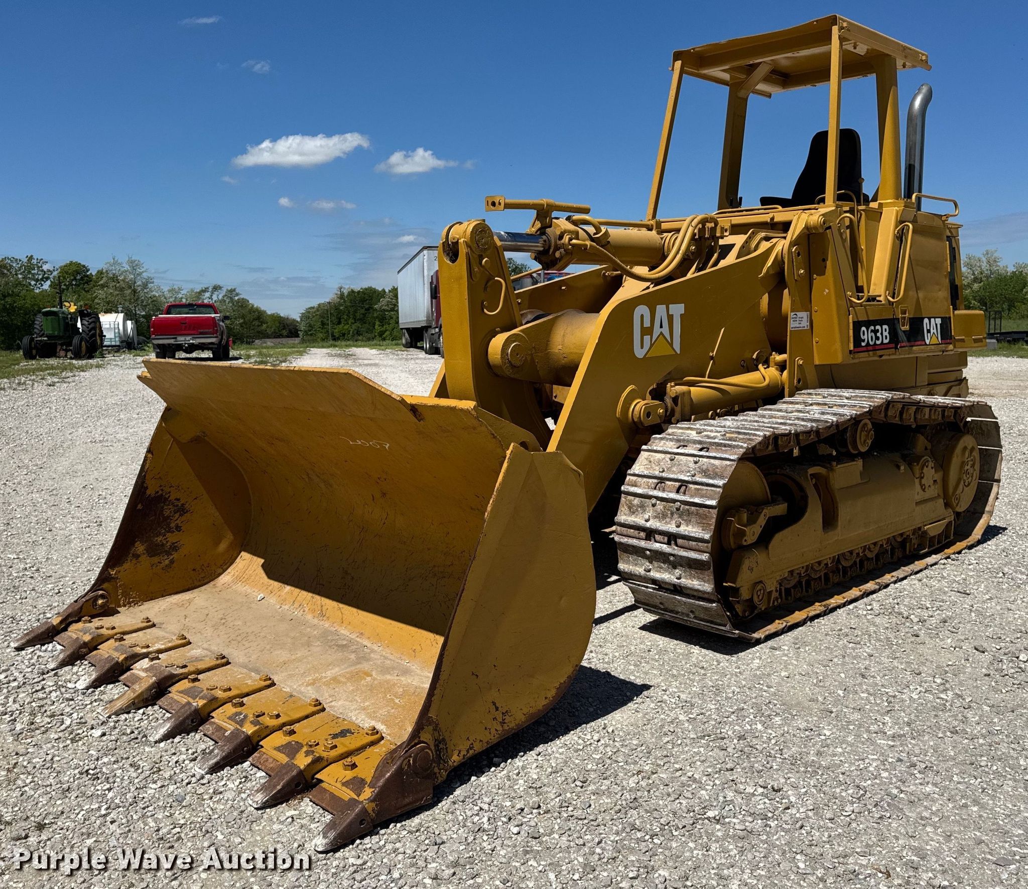 1987 Caterpillar 963B track loader. Serial: 21Z01086. Engine Caterpillar 3304, Fuel type: Diesel. Transmission Hydrostatic. Operators station OROPS, Bucket controls: Two-lever. Features Bucket Caterpillar, Width: 100", Cutting edge: Bolt-on, Teeth: 8. Tracks Width: 21", Grouser pads: Double. Notes Engine overhaul August 2022. View repairs. Vitt Truck and Auto Repair. Paris, MO 65275