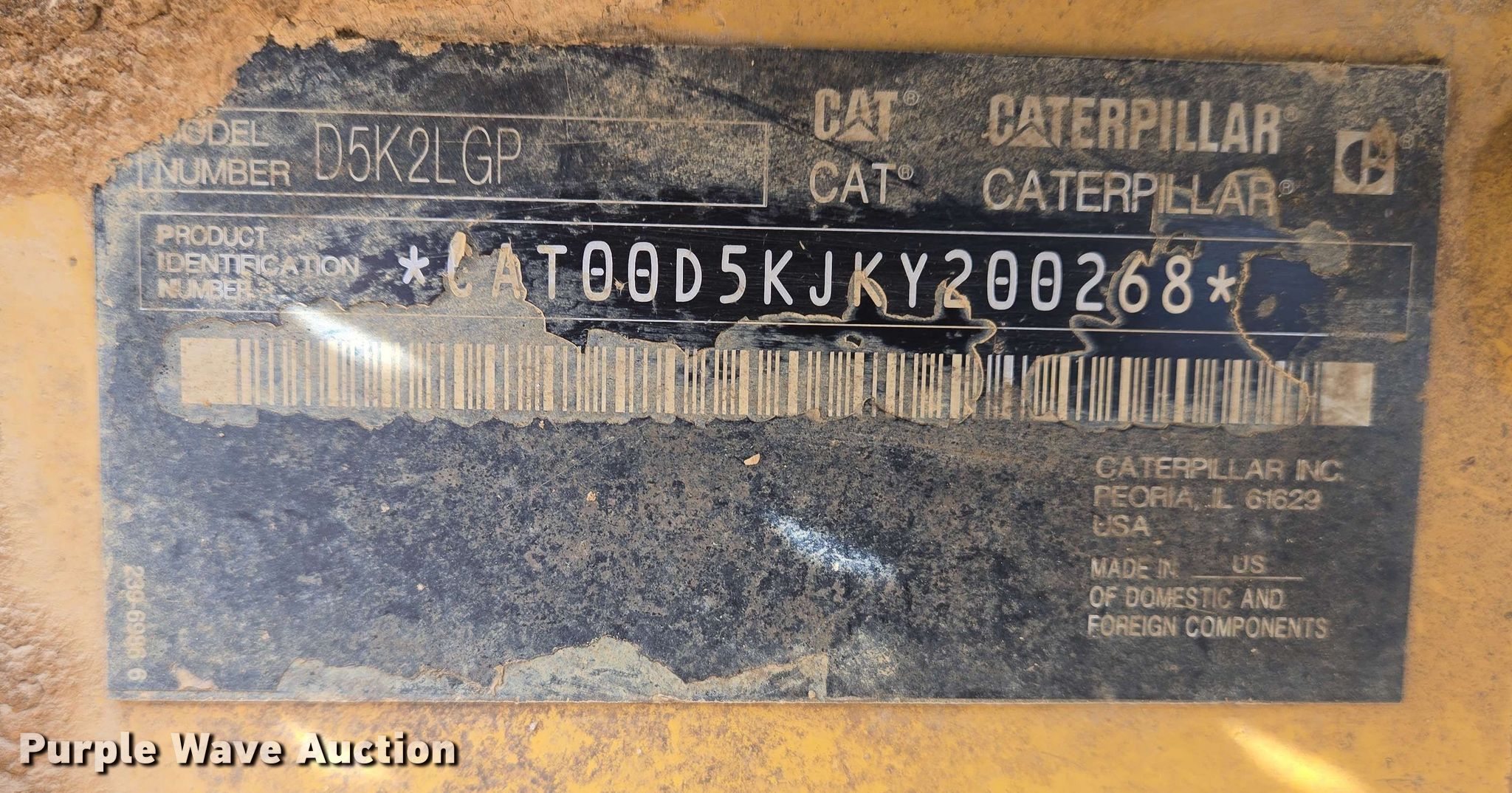 Purple Wave is selling a used Crawler Dozer in Arkansas. This item is a 2015 Caterpillar D5K2 LGP dozer with the following: Hours: 6,111 on meter, Serial: CAT00D5KJKY200268