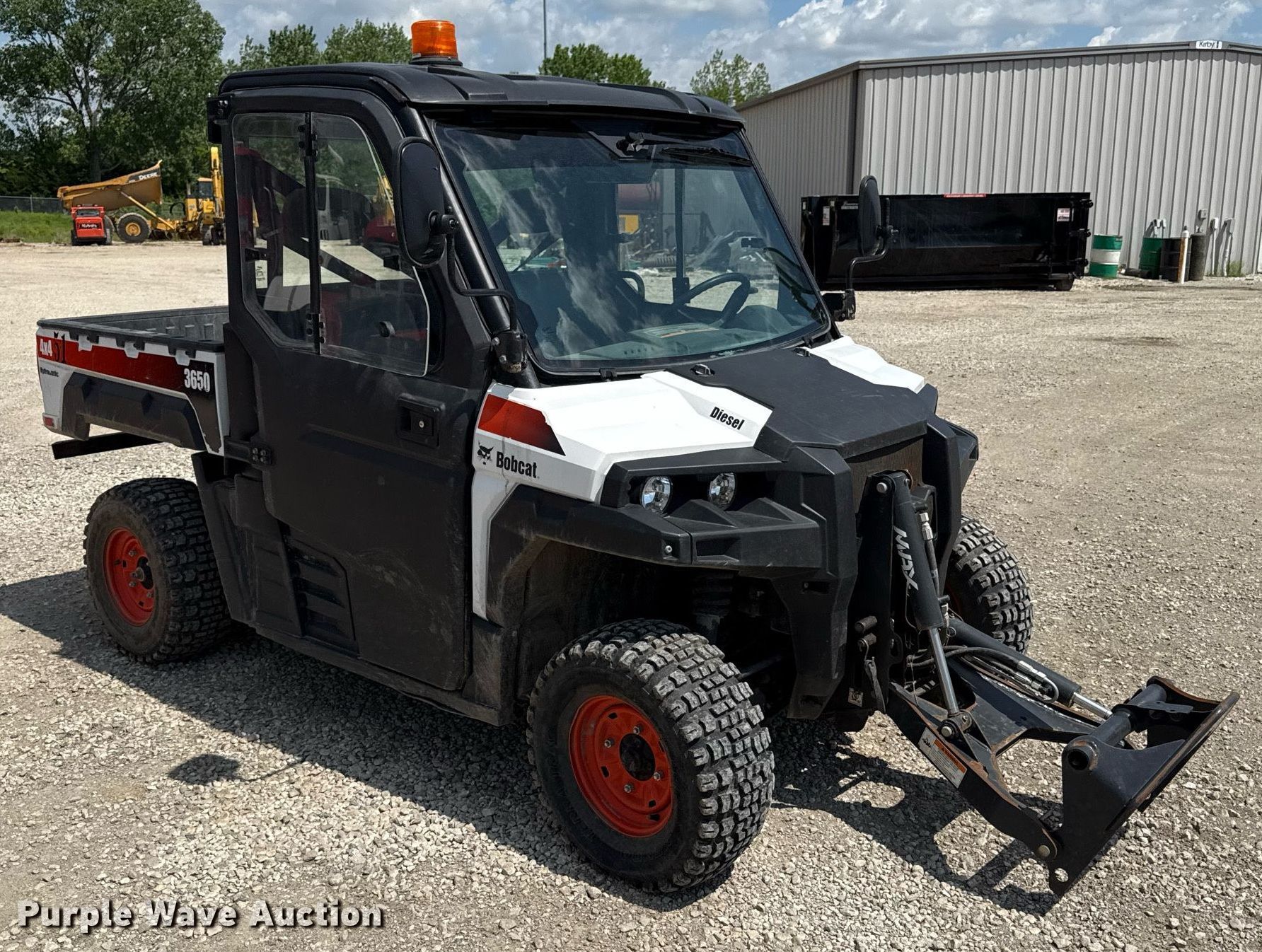 Purple Wave is selling a used Utility Vehicle in Kansas. This item is a 2018 Bobcat 3650 utility vehicle with the following: Miles: 1,899 on odometer, Hours: 438 on meter, VIN: 4XAB3C3A3J8018279