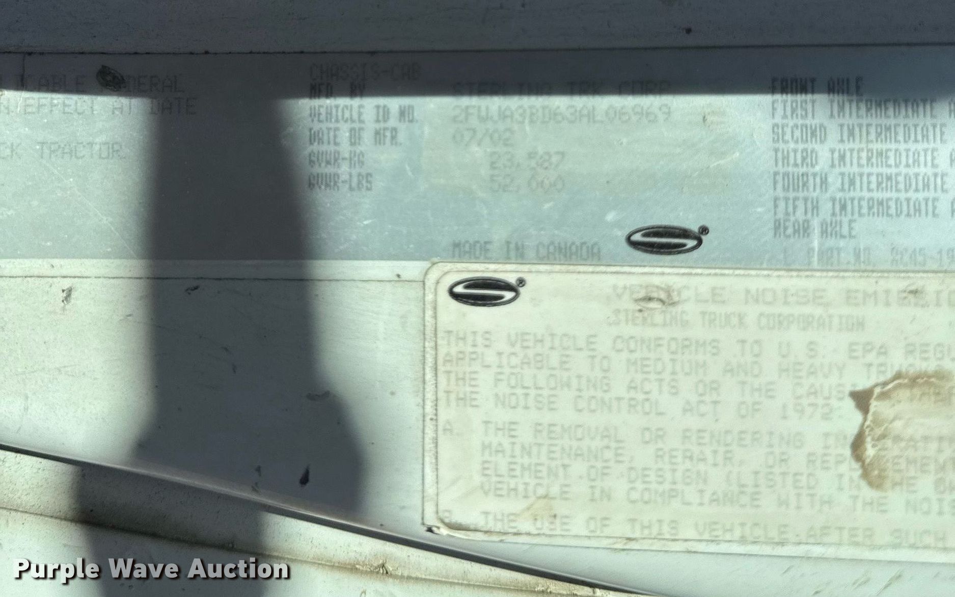 Purple Wave is selling a used Truck Tractor in Kansas. This item is a 2003 Sterling A9500 semi truck with the following: Miles: 489,297 on odometer, VIN: 2FWJA3BD63AL06969