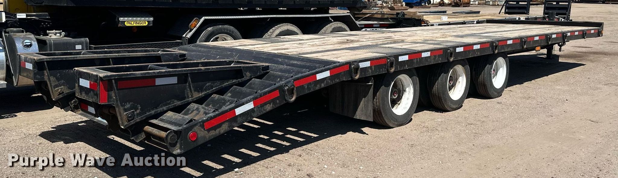 2016 Felling equipment trailer. VIN: 5FTFA4037G1002038. Dimensions Overall: 39' 6" L x 102" W, Deck: 28' L x 102" W, Deck height: 2' 10", Tail length: 6', Ramps: Manual Length: 4' 8". Features Deck type: Wood. Chassis Hitch: Pintle, Landing gear: Single, Suspension: Air, Brakes: Air, Axles: Triple. Tires Steel wheels, Size: 215/75R17.5. Minnesota title. Title distribution may be delayed up to 14 days from verification of funds. Minger Construction Co. Inc.. Jordan, MN 55352