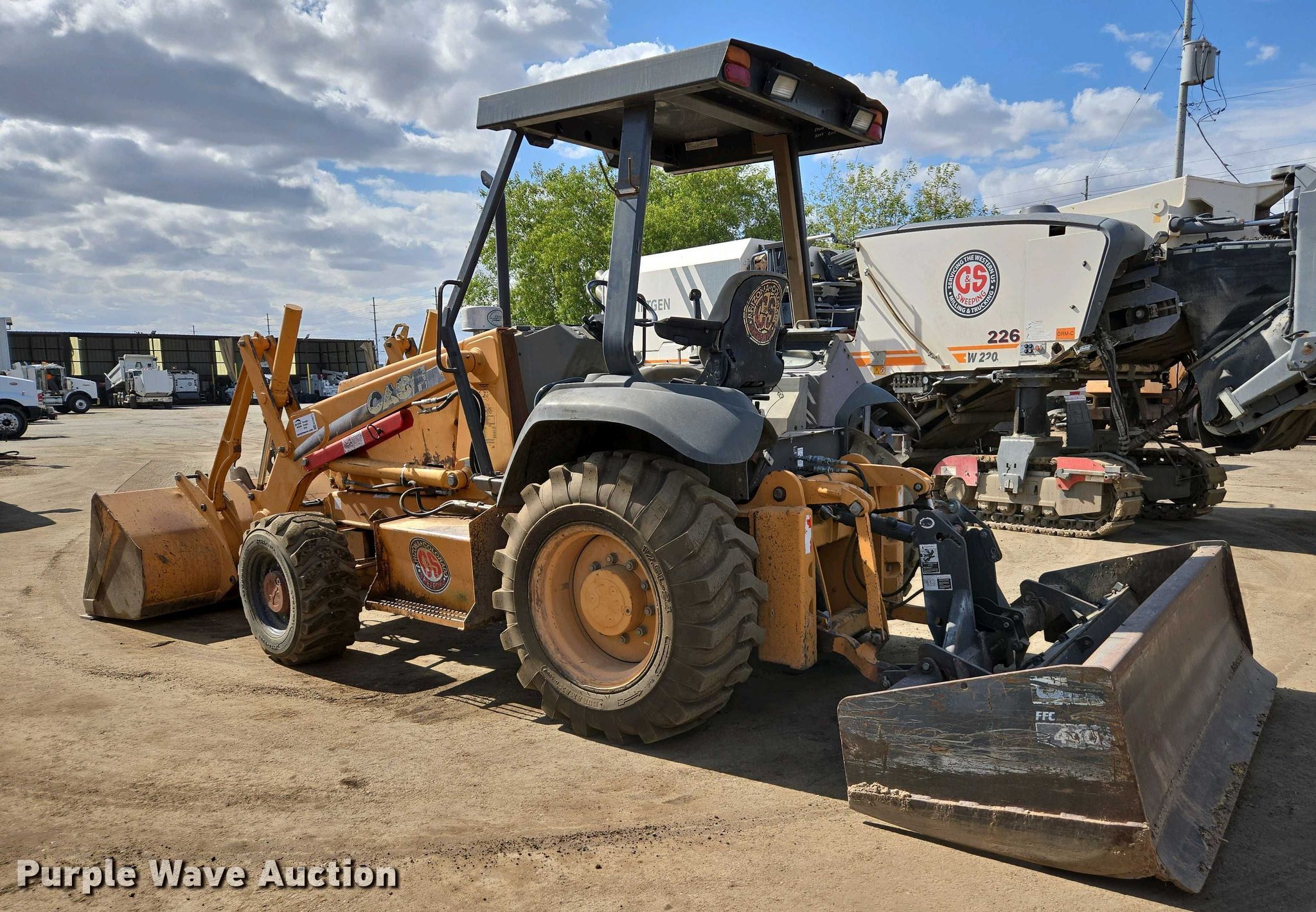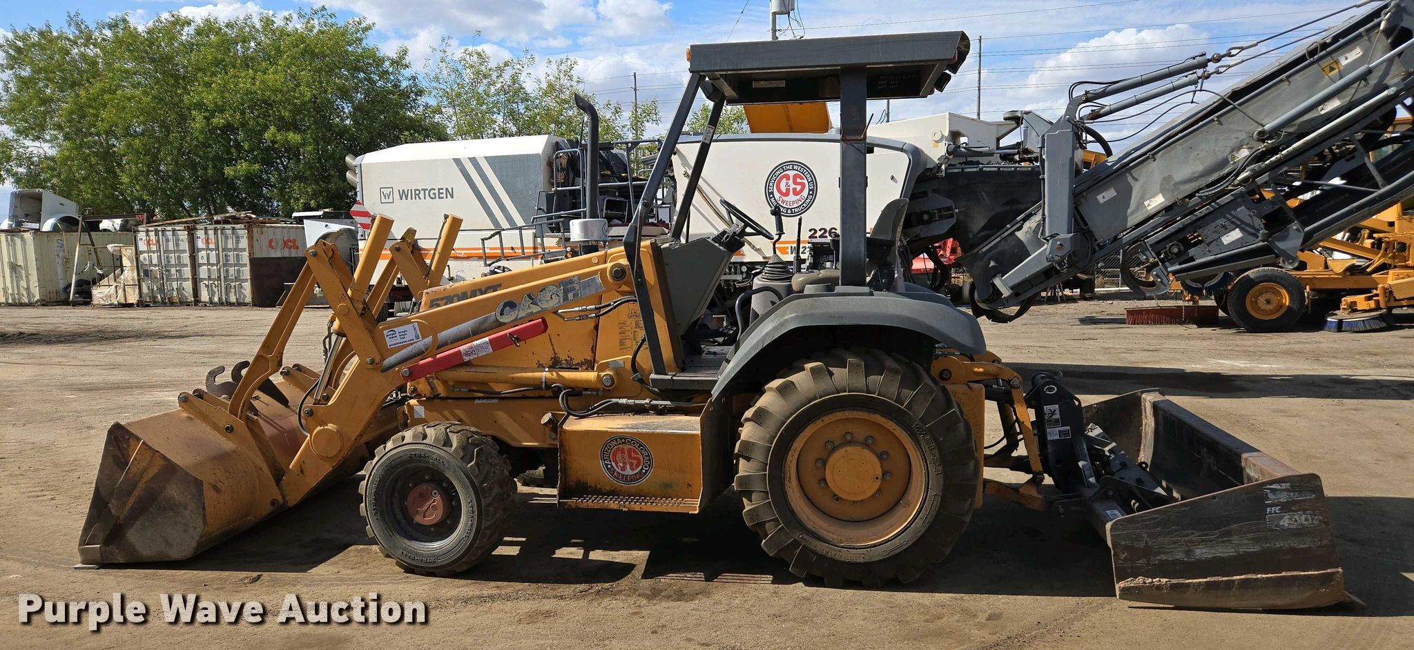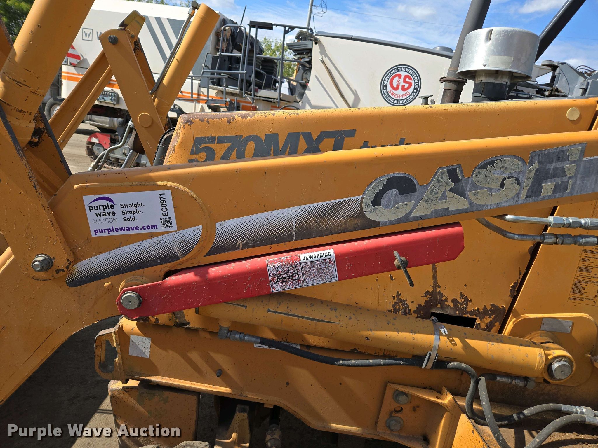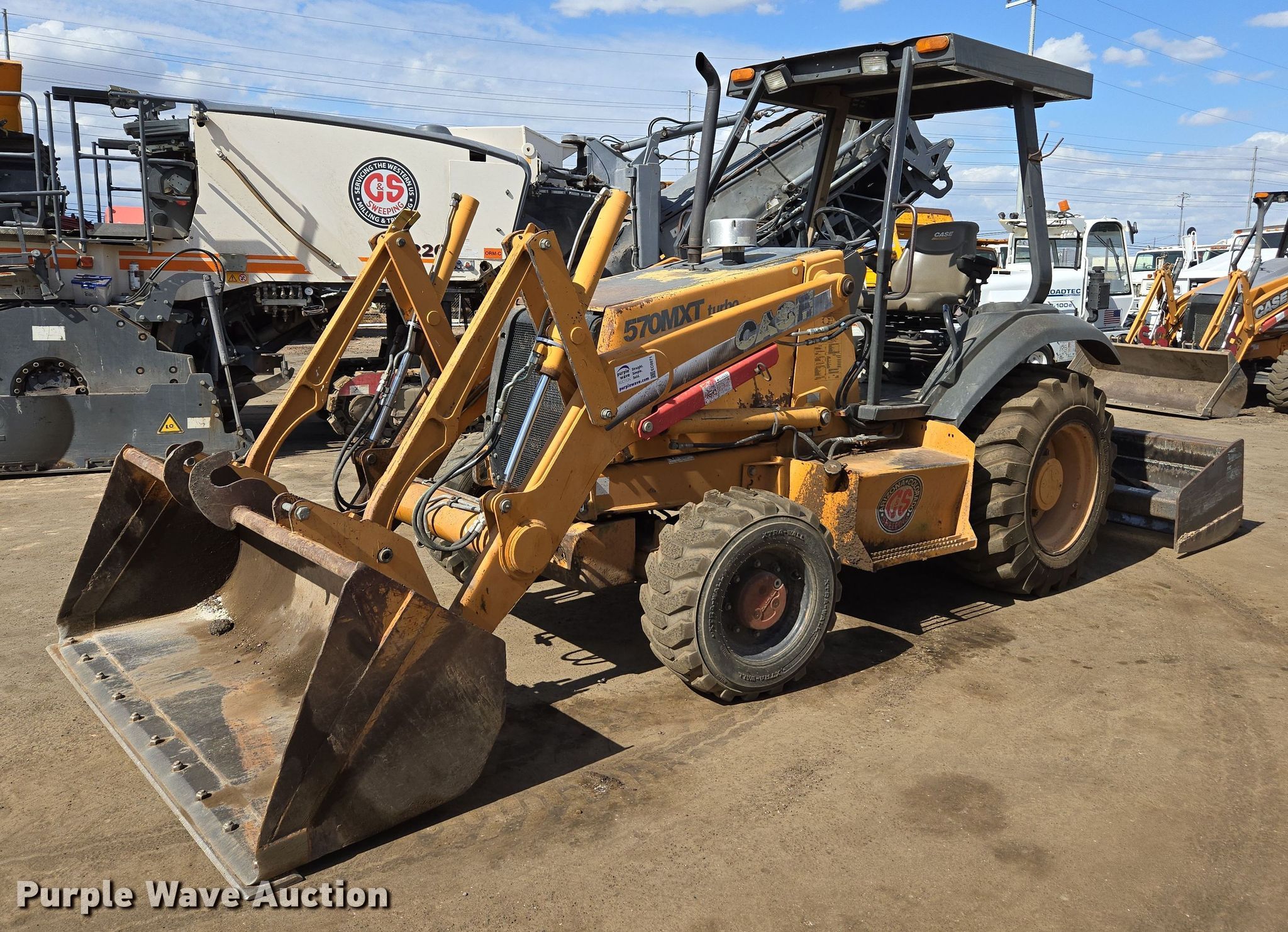 2005 Case 570 MXT industrial tractor. Hours: 5,252 on meter, Serial: JJG0302085. Engine Cylinders: 4, Fuel type: Diesel. Transmission Shuttle shift, 4F - 4R. Operators station Canopy. Features Auxiliary hydraulics: Front, Rear, Quick coupler: Manual, Bucket Case, Width: 82", Cutting edge: Bolt-on, Box blade Width: 84". Tires Front: 12-16.5, Rear: 17.5L-24. C & S Sweeping. Phoenix, AZ 85034