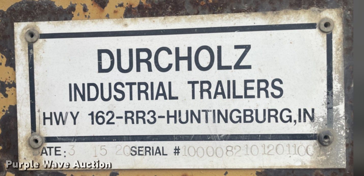 Purple Wave is selling a used Flat or Drop Deck Trailer in Indiana. This item is a 2011 Durcholz flatbed trailer with the following: Overall: 30' 6" L x 8' 6" W, VIN: 10000821012011001, Deck: 25' L x 8' 6" W, Deck height: 3'
