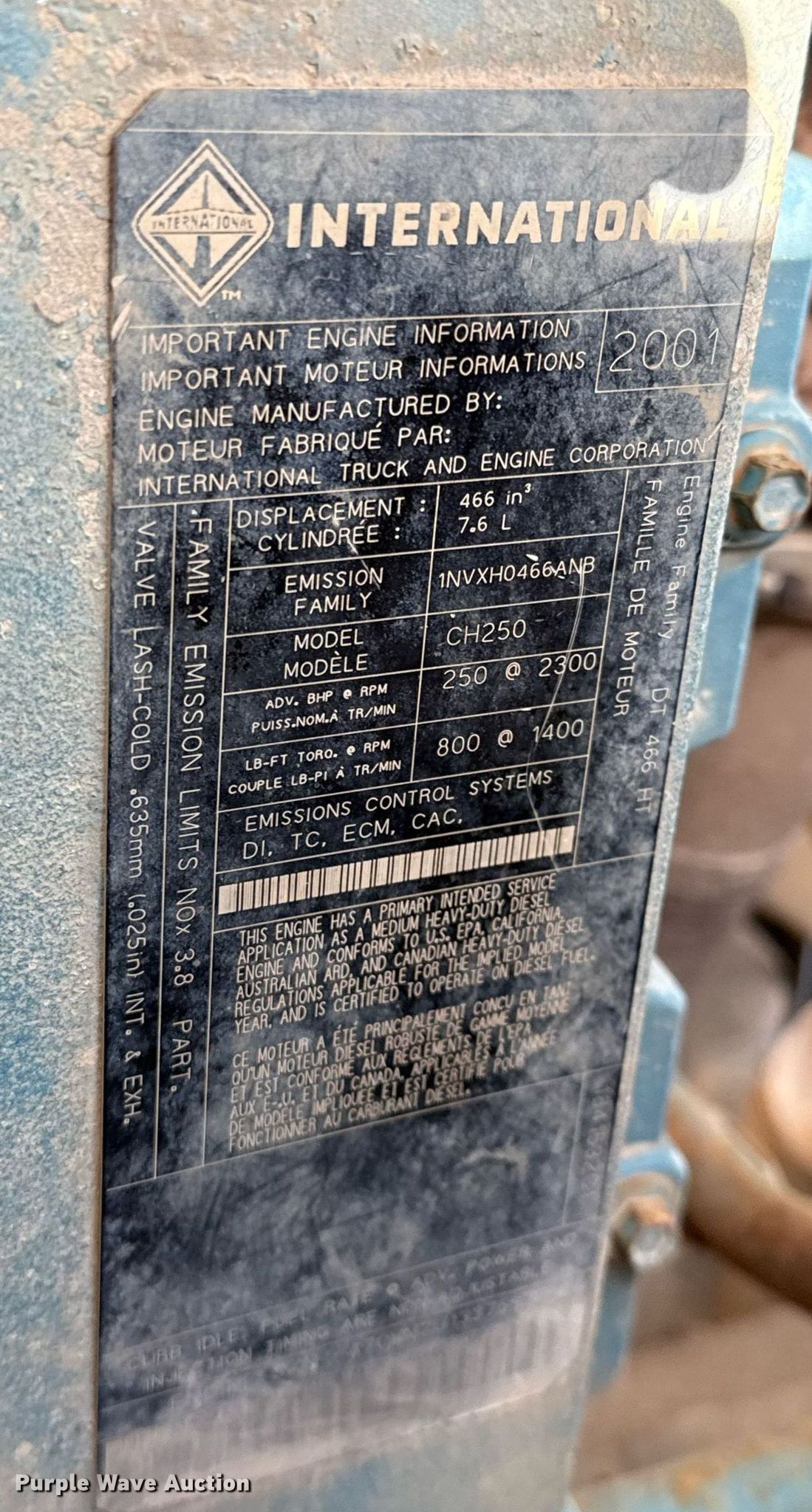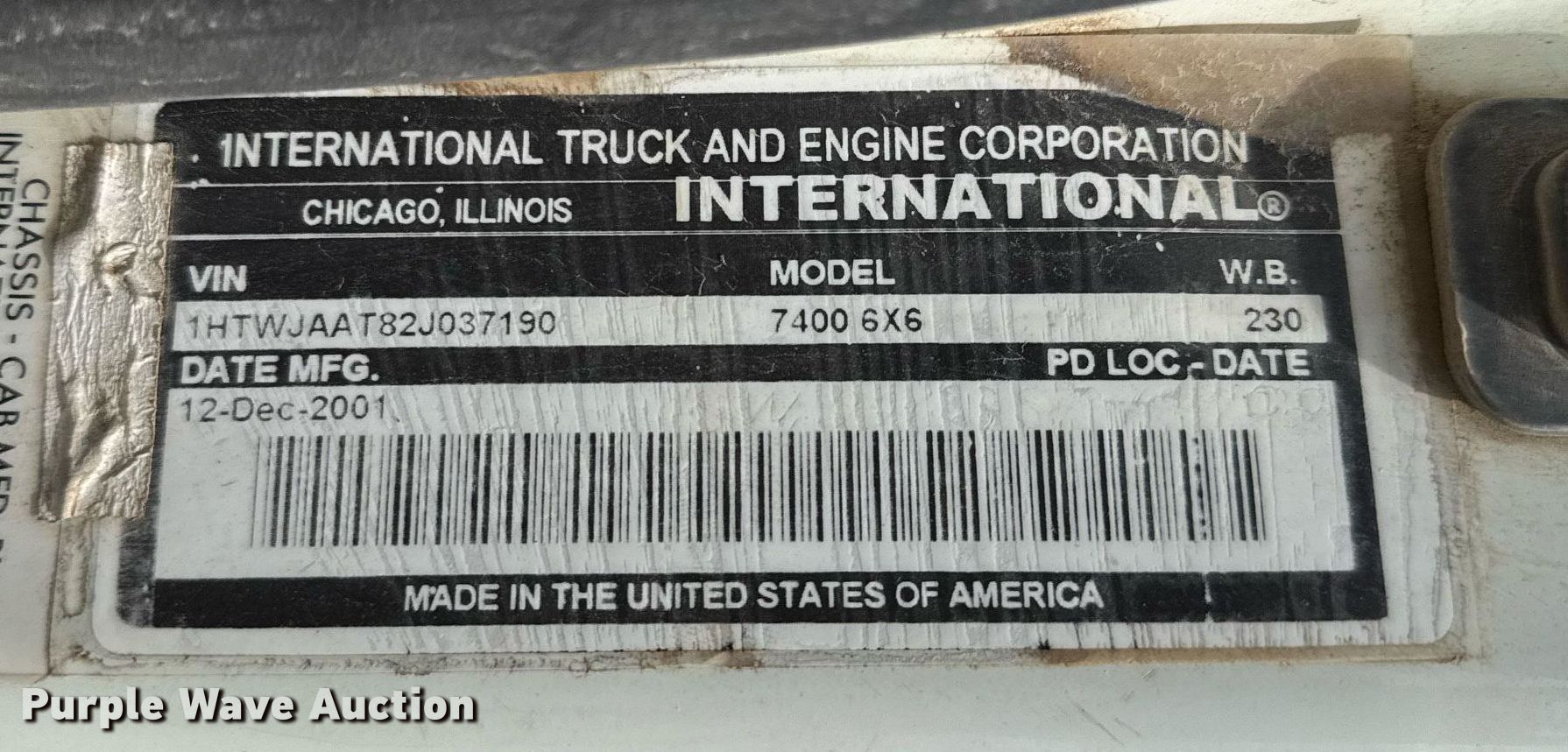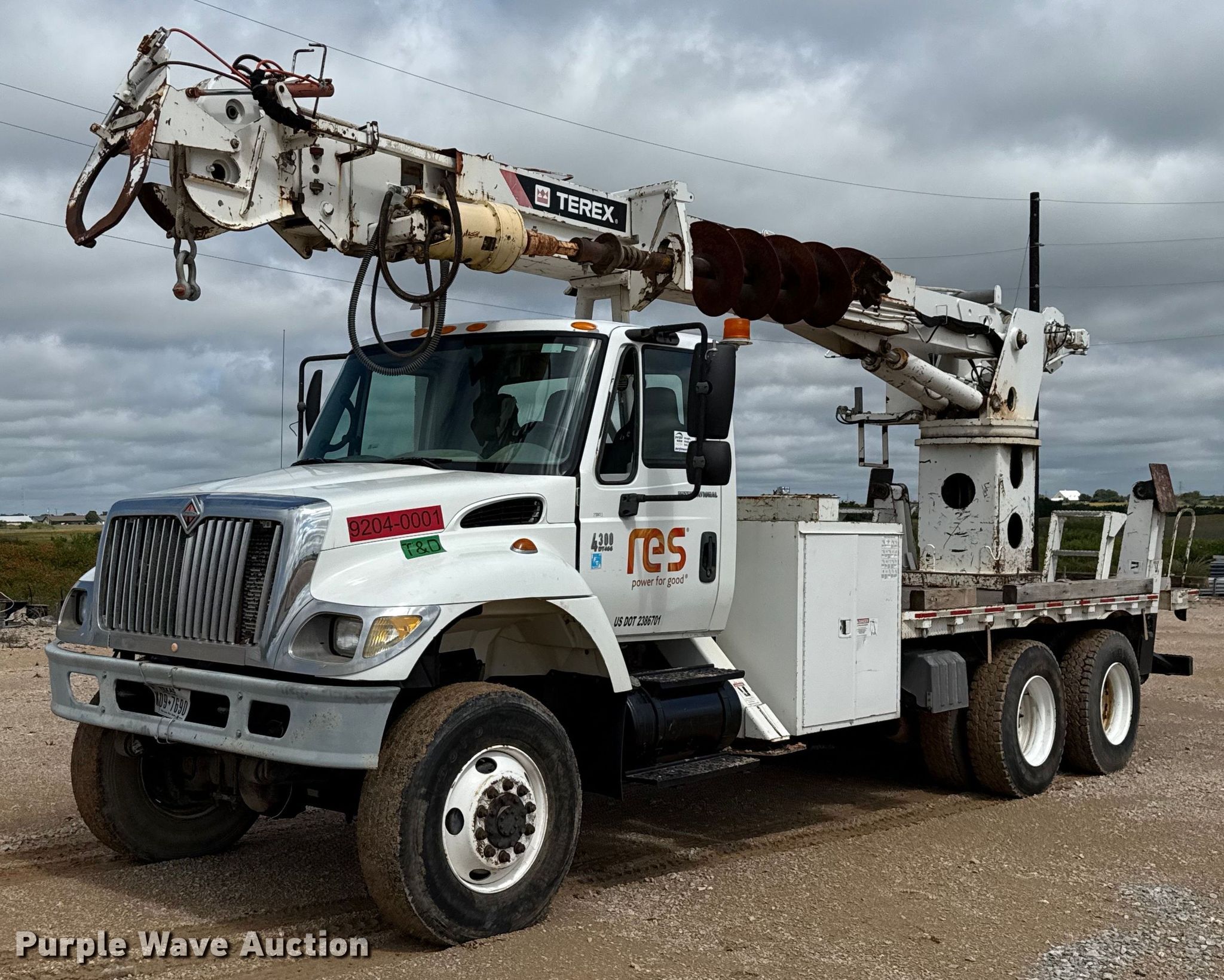 2002 International 7400 digger derrick truck. Miles: 70,653 on odometer, Hours: 8,169 on meter, VIN: 1HTWJAAT82J037190. Engine International CH250, Displacement: 7.6L, Cylinders: 6, Fuel type: Diesel, HP: 250. Transmission Eaton Fuller, Manual, Speed: 9. Chassis Six wheel drive, Axles: Tandem, Suspension: Spring over walking beam, Brakes: Air, PTO. Interior AC, Heat, Cruise control, Auxiliary controls, Brake controller. Features Bed 19' 8" L x 98" W, Boom 2001 Terex Commander 6000, Serial: 2011113139, Boom type: Telescopic, Boom controls Ground, Material handler, Pole guide, Auger Diameter: 20".. Tires Front: 315/80R22.5, Rear: 11R22.5. Notes Contents included, AC compressor issues, disconnected, Driver window vent glass not attached, but included. Texas title. Title distribution may be delayed up to 14 days from verification of funds. weatherford , TX 76088