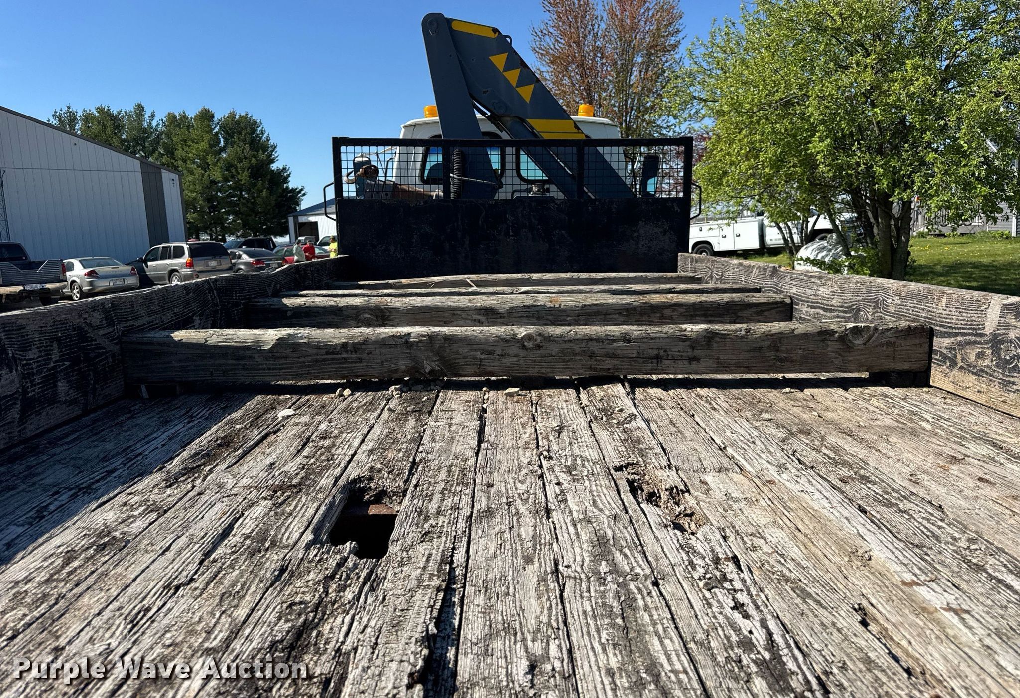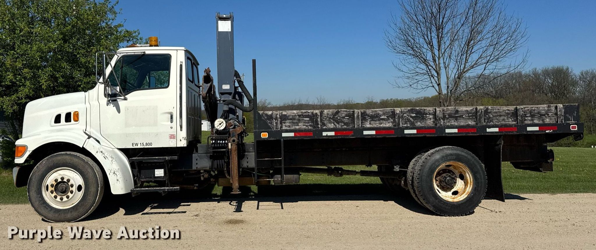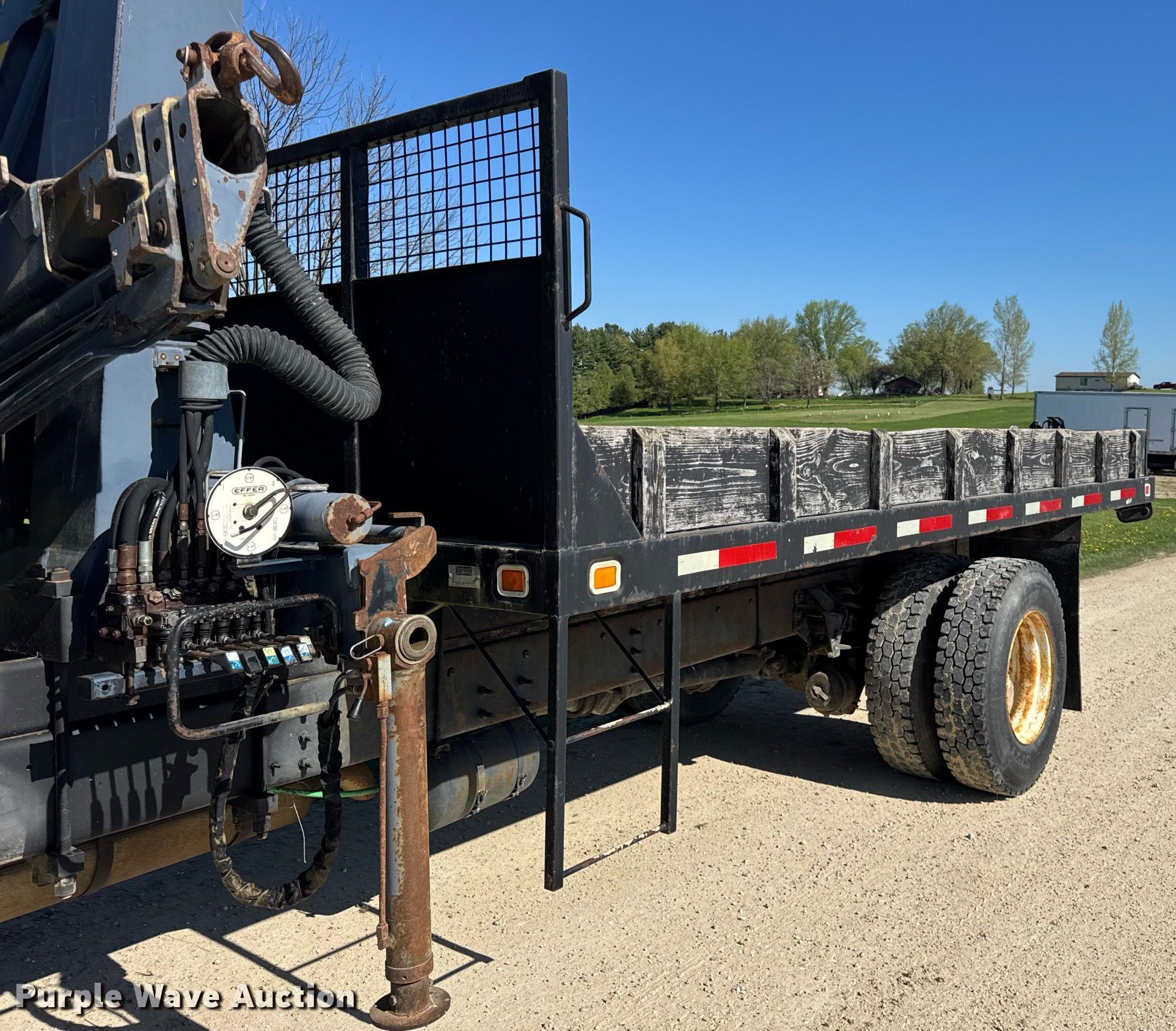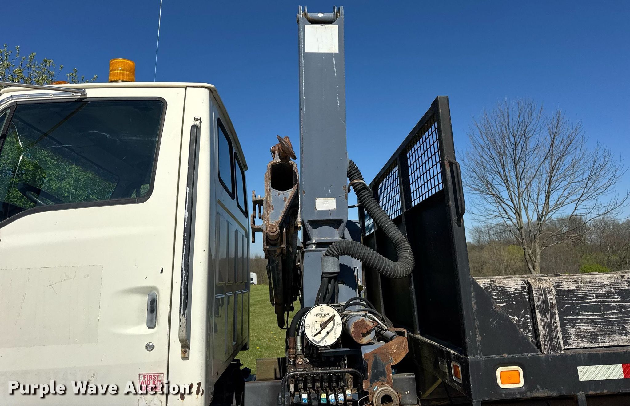 1998 Ford L8501 flatbed truck. Miles: 183,330 on odometer, VIN: 1FDWN80F1WVA41324. Engine Caterpillar 3126, Displacement: 7.2L, Cylinders: 6, Fuel type: Diesel, HP: 175. Transmission Manual, Speed: 7. Chassis Axles: Single, Suspension: Spring, Brakes: Air, PTO, GVWR: 26,000 lbs, Wheelbase: 225". Interior Heat, Cruise control, Brake controller. Features Flatbed Knapheide, 16' 3" L x 96" W, Effener 95 3S knuckle boom crane Serial: 5H26215. Tires Size: 11R22.5. Notes Dash warning indicator: Engine warning. Wisconsin title. Title distribution may be delayed up to 14 days from verification of funds. JJ Vondrum & Sons LLC.. Lancaster, WI 53813