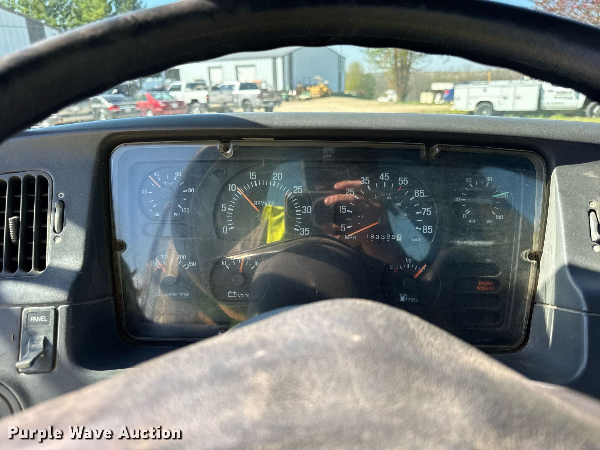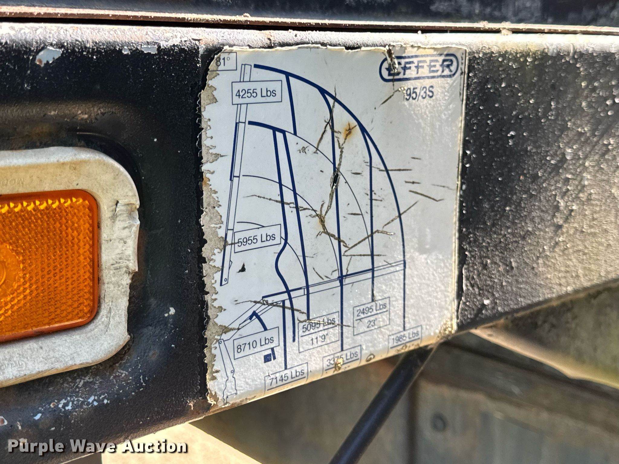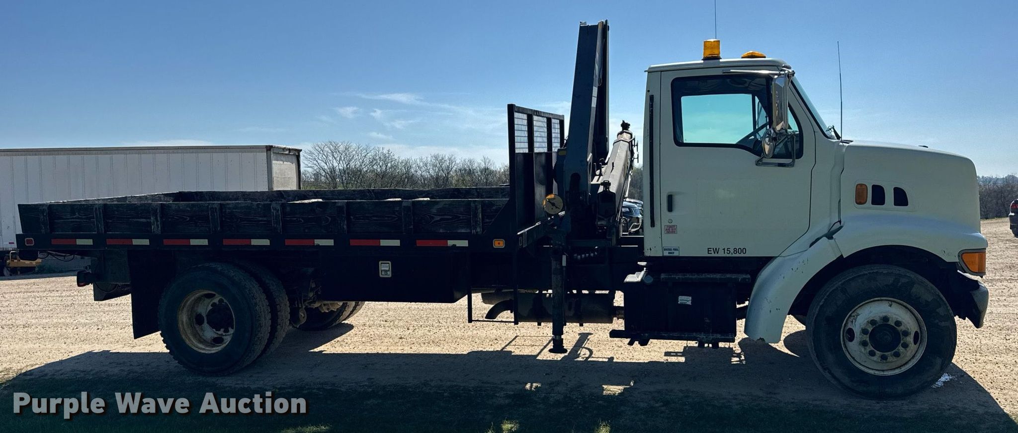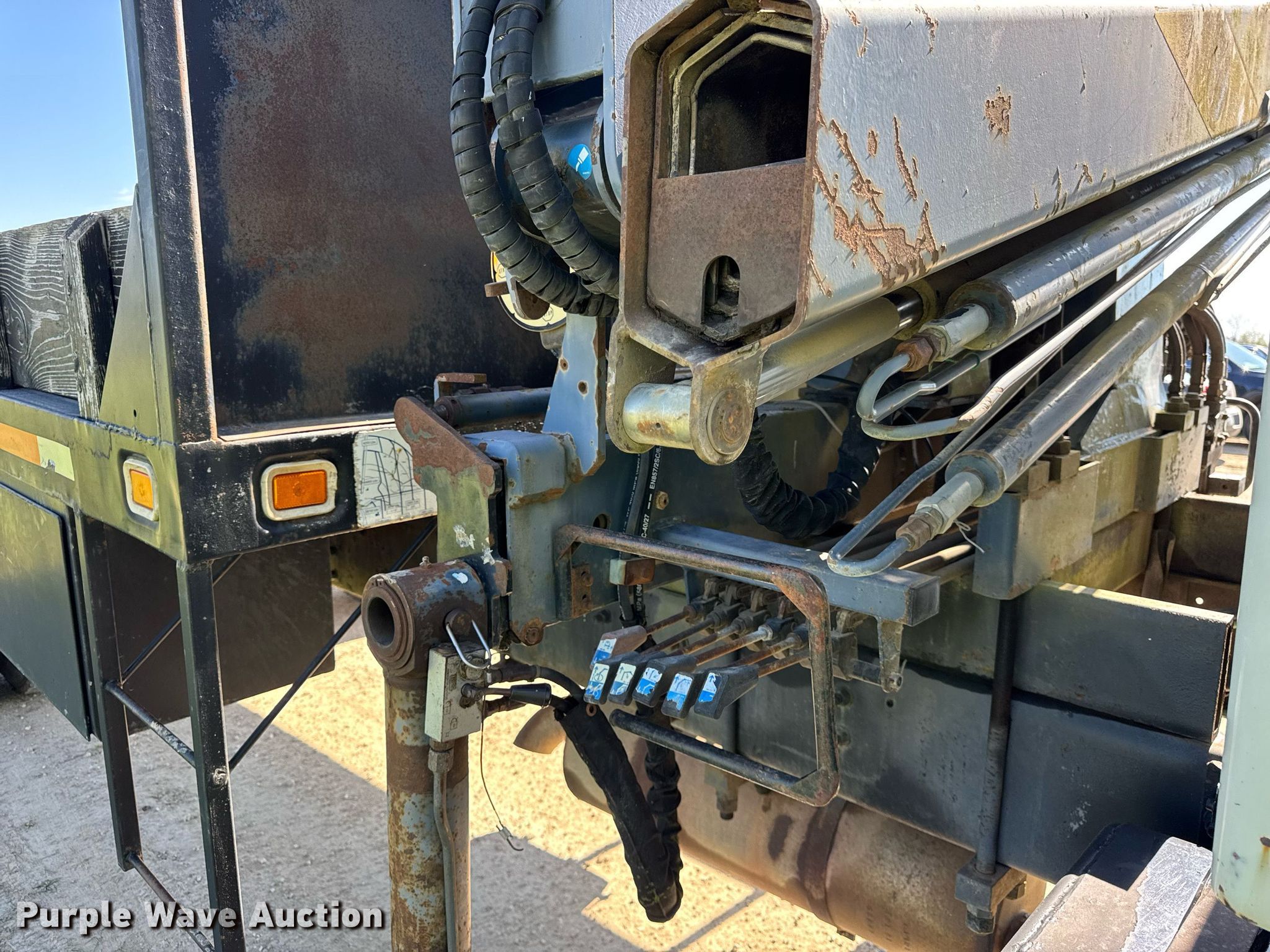 1998 Ford L8501 flatbed truck. Miles: 183,330 on odometer, VIN: 1FDWN80F1WVA41324. Engine Caterpillar 3126, Displacement: 7.2L, Cylinders: 6, Fuel type: Diesel, HP: 175. Transmission Manual, Speed: 7. Chassis Axles: Single, Suspension: Spring, Brakes: Air, PTO, GVWR: 26,000 lbs, Wheelbase: 225". Interior Heat, Cruise control, Brake controller. Features Flatbed Knapheide, 16' 3" L x 96" W, Effener 95 3S knuckle boom crane Serial: 5H26215. Tires Size: 11R22.5. Notes Dash warning indicator: Engine warning. Wisconsin title. Title distribution may be delayed up to 14 days from verification of funds. JJ Vondrum & Sons LLC.. Lancaster, WI 53813