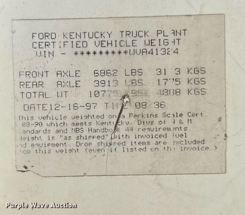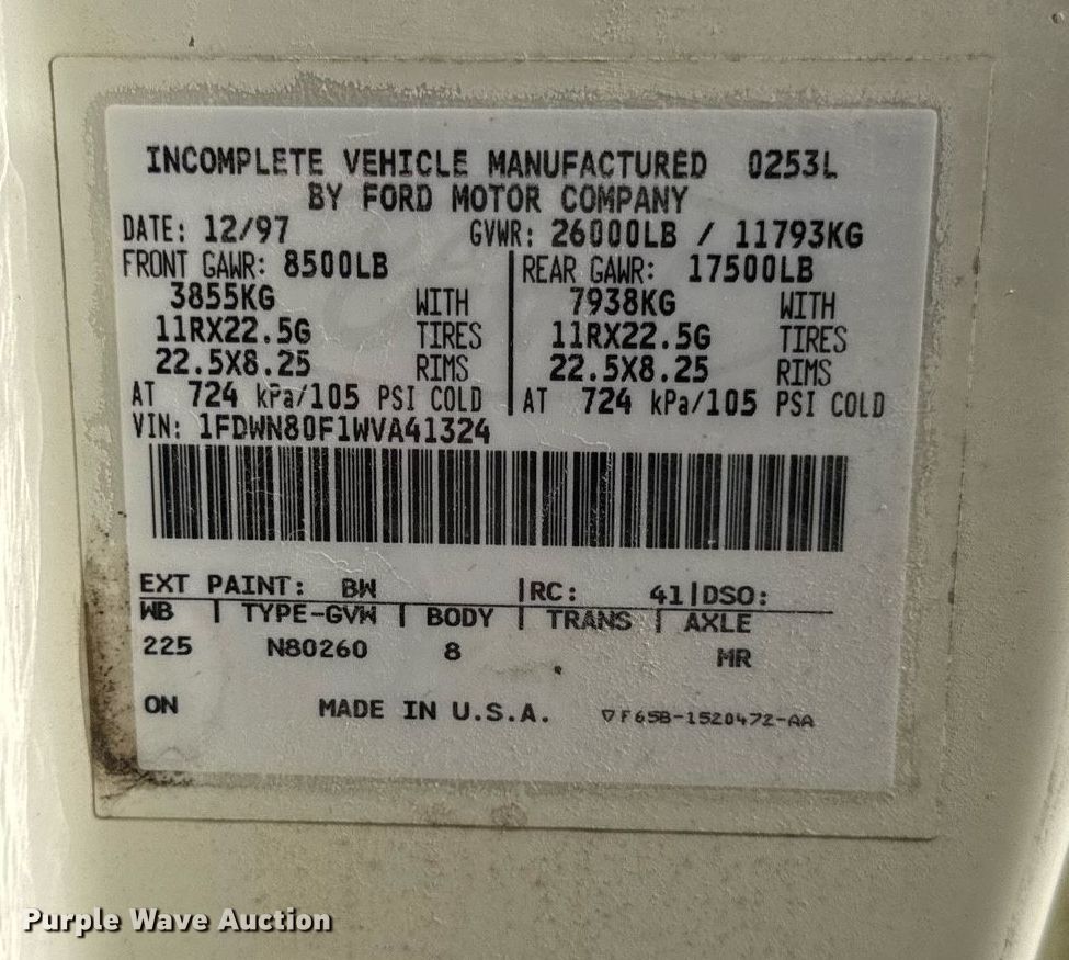 Purple Wave is selling a used Flat Bed Truck in Wisconsin. This item is a 1998 Ford L8501 flatbed truck with the following: Miles: 183,330 on odometer, VIN: 1FDWN80F1WVA41324