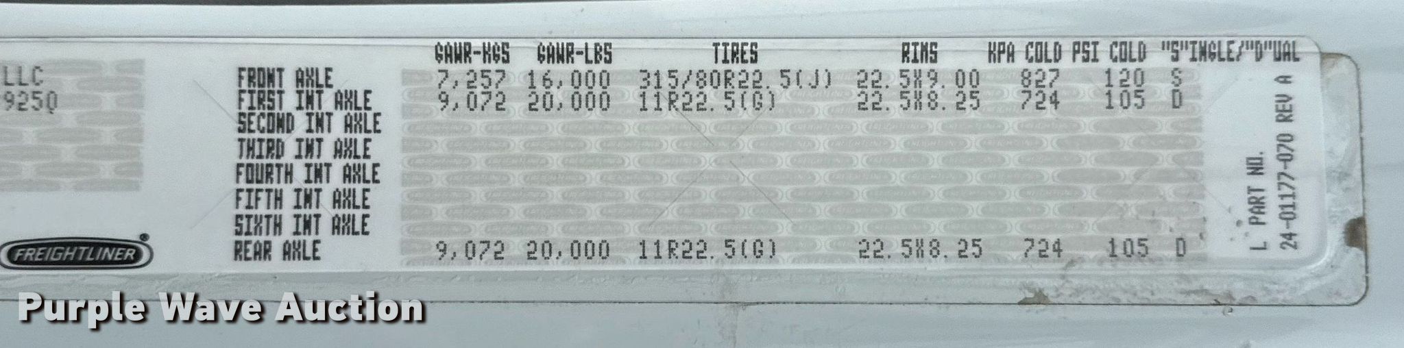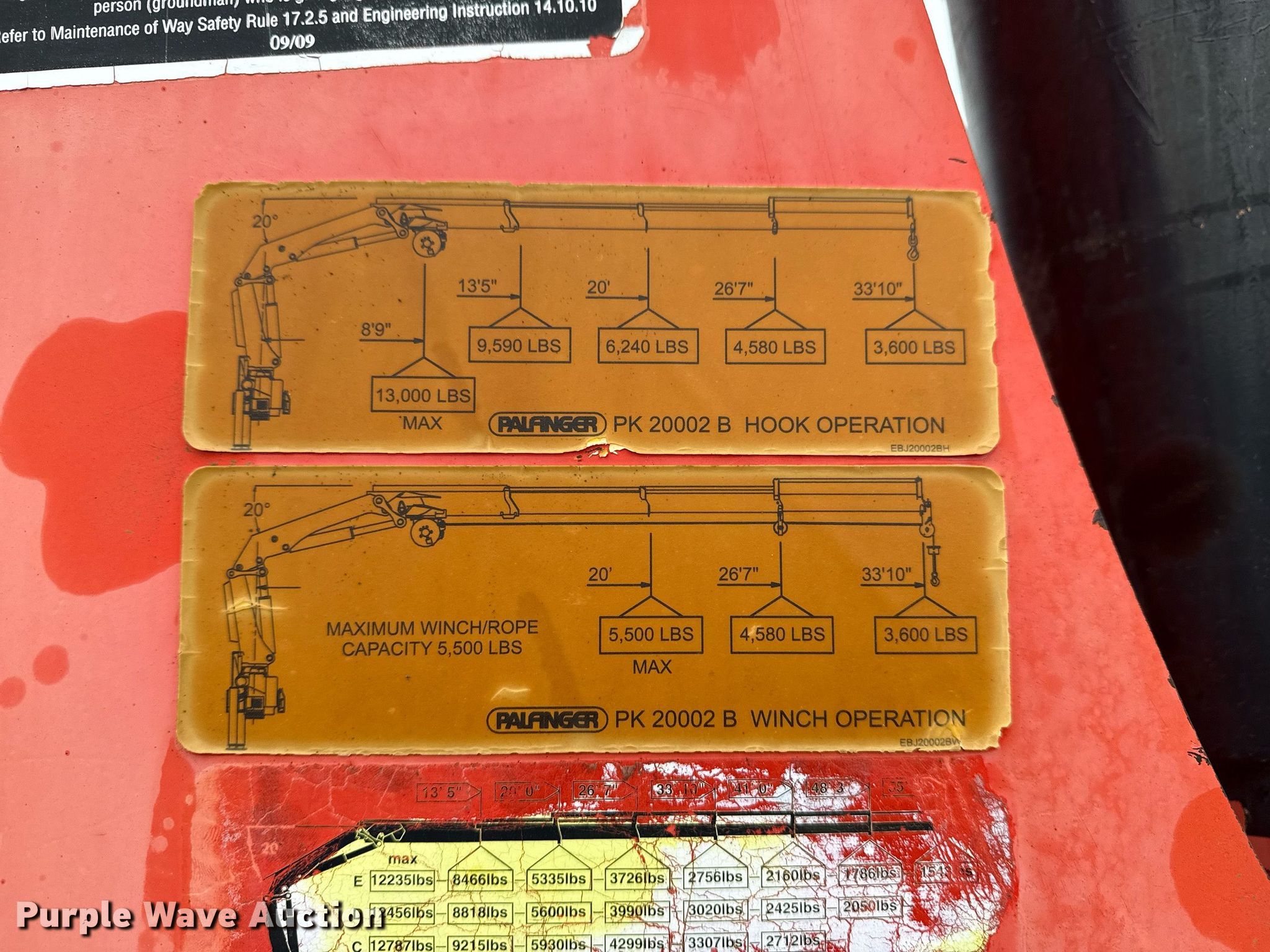 2007 Freightliner Business Class M2 Crew Cab crane truck. Engine miles: 195,880 on odometer, Engine hours: 16,982 on meter, VIN: 1FVHC3DJX7HY39250. Engine Mercedes Benz, Displacement: 7.2L, Cylinders: 6, Fuel type: Diesel, Engine brake. Transmission Eaton Fuller 8LL, Manual, Speed: 10. Chassis Hi-rail system, Axles: Tandem, Suspension: Air, Brakes: Air, PTO, GVWR: 56,000 lbs FAWR: 16,000 lbs, IAWR: 20,000 lbs, RAWR: 20,000 lbs. Interior AC, Heat, Heated mirrors, Cruise control. Features Flatbed 21' 9" L x 96" W, Crane 2005 Palfinger PK20002 Serial: 100032173, Telescopic, Knuckle, Maximum boom length: 33' Sections: 3, Maximum lift capacity: 13,000 lbs, Boom controls Ground, Sheaves: 2, Lift chart. Tires Front: 315/80R22.5, Rear: 11R22.5. Notes Windshield chipped or cracked. Oklahoma title. Seller is an Oklahoma licensed motor vehicle dealer. Title will be assigned and distributed by the dealer. Please contact the seller for distribution questions. Title distribution may be delayed up to 30 days from verification of funds. 15107 North 137th East Avenue. Collinsville, OK 74021