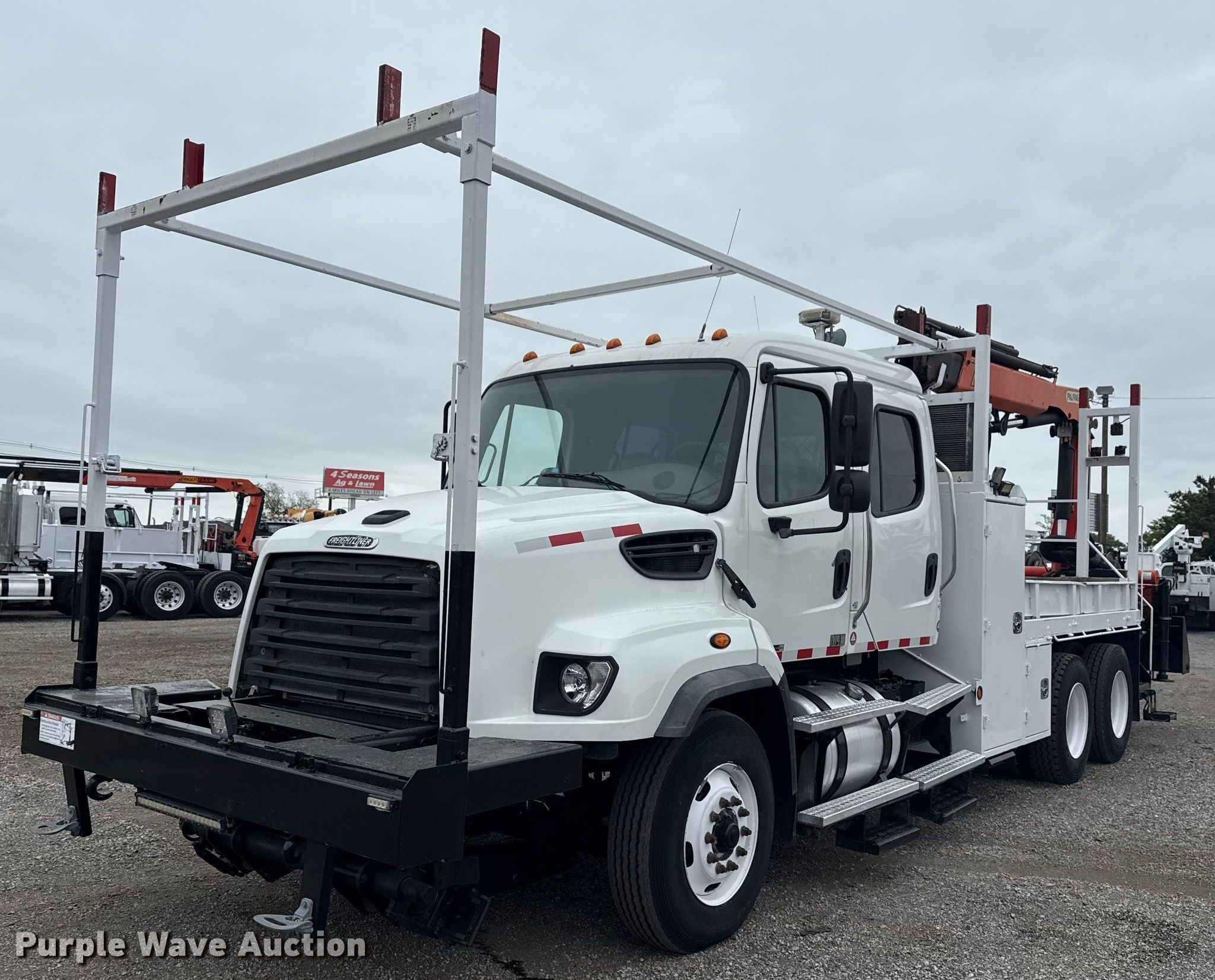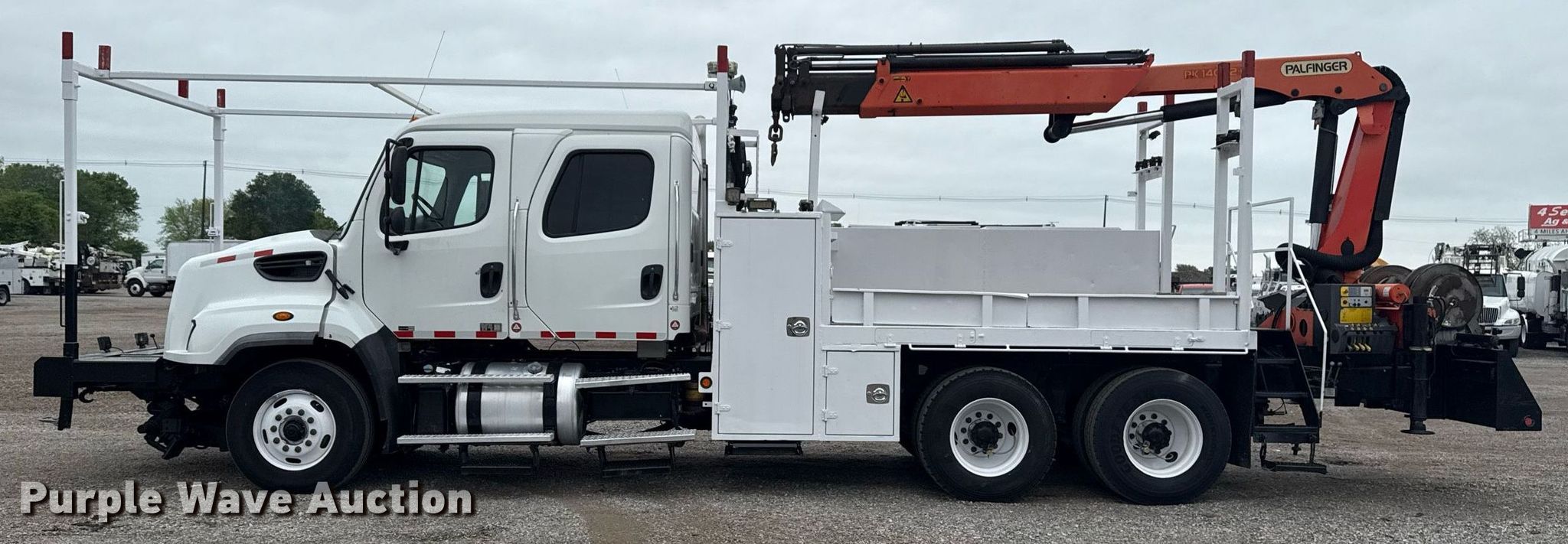 Purple Wave is selling a used Crane Truck in Oklahoma. This item is a 2013 Freightliner 114SD Crew Cab crane truck with the following: Miles: 317,526 on odometer, Engine hours: 14,136 on meter, VIN: 1FVHG3DV2DHFG6435
