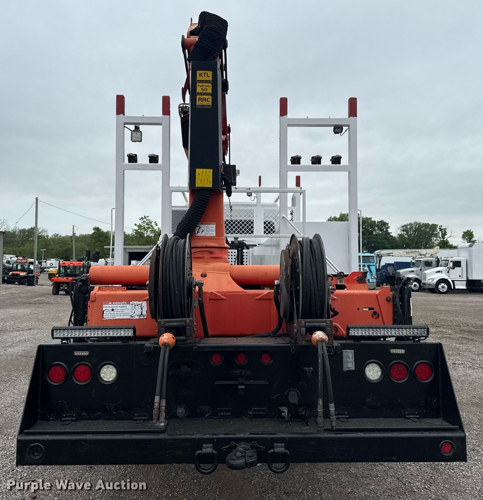 2013 Freightliner 114SD Crew Cab crane truck. Miles: 317,526 on odometer, Engine hours: 14,136 on meter, VIN: 1FVHG3DV2DHFG6435. Engine Detroit Diesel DD13, Displacement: 12.8L, Cylinders: 6, Fuel type: Diesel, Engine brake. Transmission Eaton Fuller, Manual, Speed: 10. Chassis Hi-rail system, Differential lock: Full, Axles: Tandem, Brakes: Hydraulic, PTO, GVWR: 56,000 lbs FAWR: 16,000 lbs, IAWR: 20,000 lbs, RAWR: 20,000 lbs. Interior AC, Heat, Cruise control, Brake controller. Features Utility bed 13' 5" L x 96" W, Crane 2012 Palfinger PK14002-EH Serial: 100154470, Boom Telescopic, Knuckle, Maximum boom length: 56', Sections: 3, Maximum lift capacity: 13,670 lbs, Boom controls Ground, Remote control.. Tires Size: 11R22.5. Notes Hi-rail system wheels missing. Oklahoma title. Seller is an Oklahoma licensed motor vehicle dealer. Title will be assigned and distributed by the dealer. Please contact the seller for distribution questions. Title distribution may be delayed up to 30 days from verification of funds. 15107 North 137th East Avenue. Collinsville, OK 74021