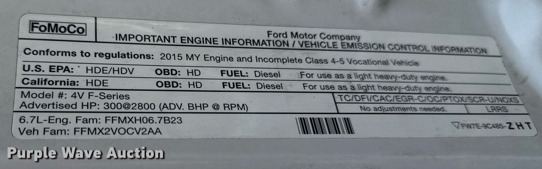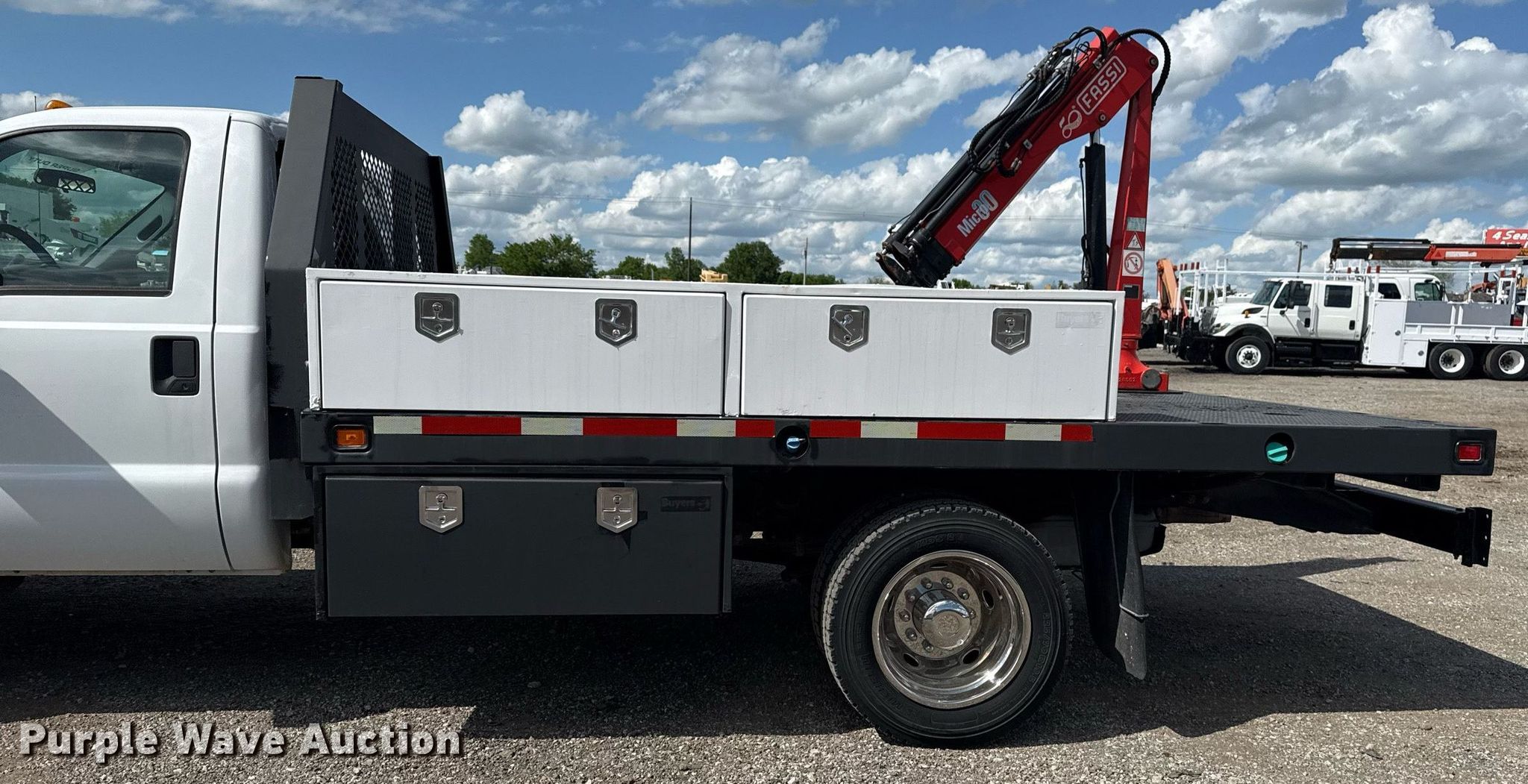 2015 Ford F550 Super Duty flatbed truck. Miles: 184,570 on odometer, VIN: 1FDUF5GT7FED46051. Engine Ford, Displacement: 6.7L, Cylinders: 8, Fuel type: Diesel. Transmission Automatic. Chassis Axles: Single, Suspension: Spring, Brakes: Hydraulic, GVWR: 19,500 lbs, Wheelbase: 165". Interior AC, Heat, Cruise control, Auxiliary controls, Brake controller. Features Flatbed Knapheide PCHT-123B, 12' 8" L x 96" W, Crane Fassi Micro30 boom, Maximum lift height: 15' 5", Maximum lift capacity: 6,746 lbs, Sections: 3. Tires Size: 225/70R19.5. Notes Windshield chipped or cracked. Oklahoma title. Seller is an Oklahoma licensed motor vehicle dealer. Title will be assigned and distributed by the dealer. Please contact the seller for distribution questions. Title distribution may be delayed up to 30 days from verification of funds. 15107 North 137th East Avenue. Collinsville, OK 74021