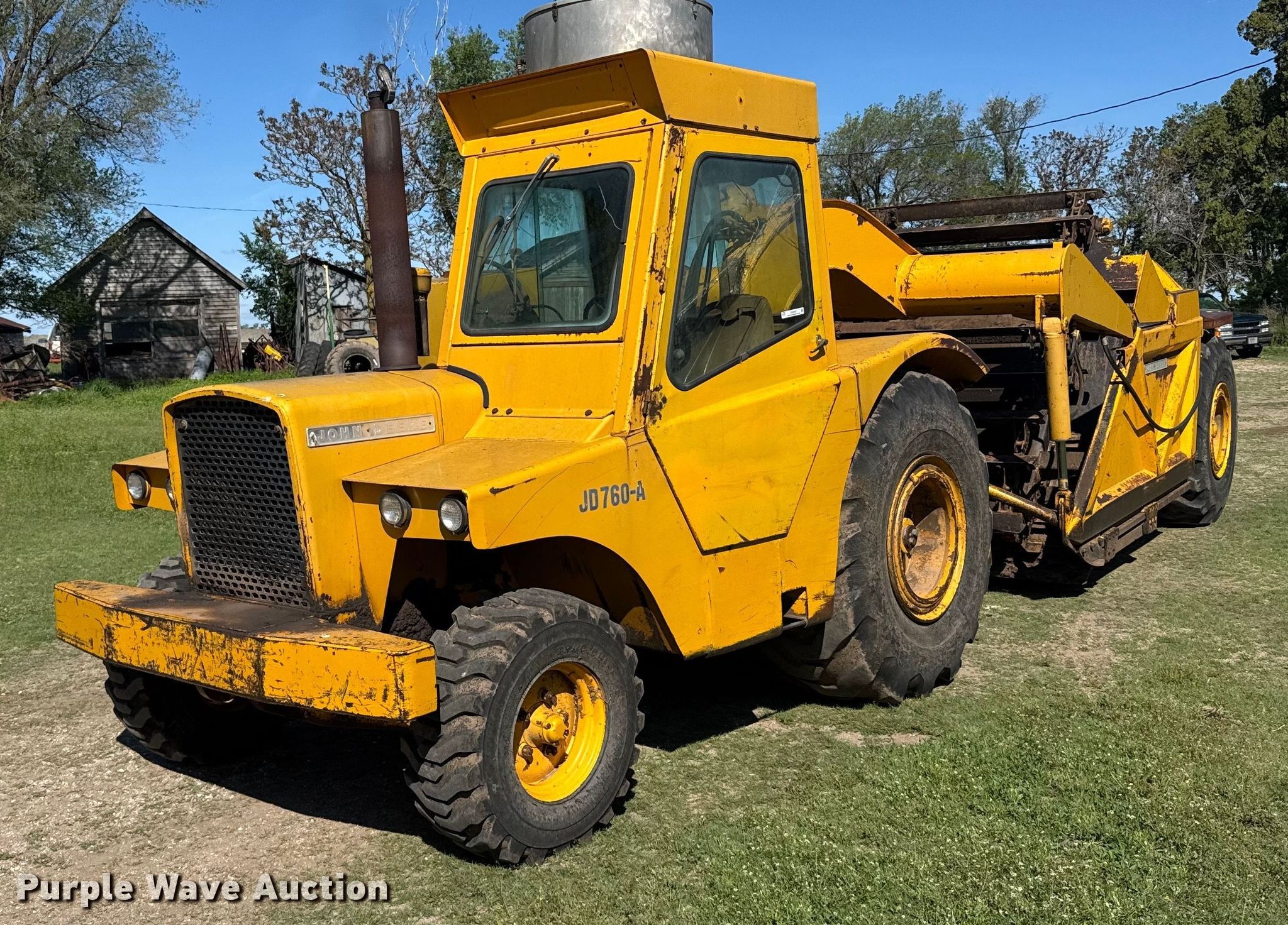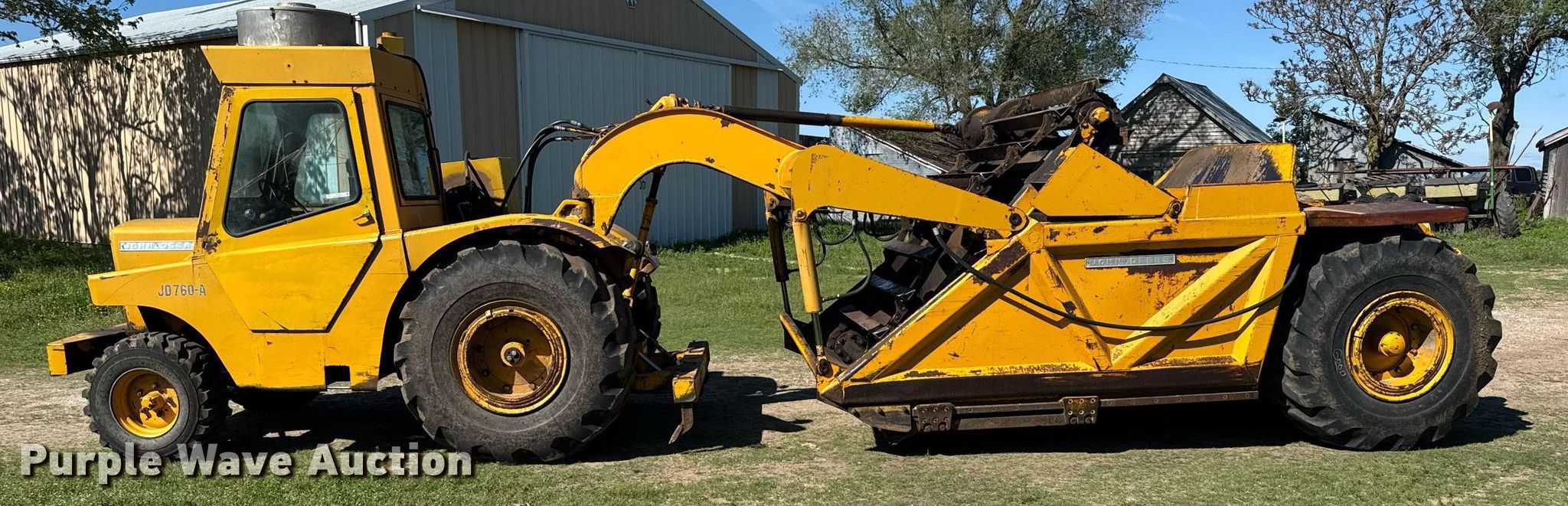 Purple Wave is selling a used Elevating Scraper in Kansas. This item is a 1974 John Deere 760A elevating scraper with the following: Hours: 8,461 on meter, Serial: 003529