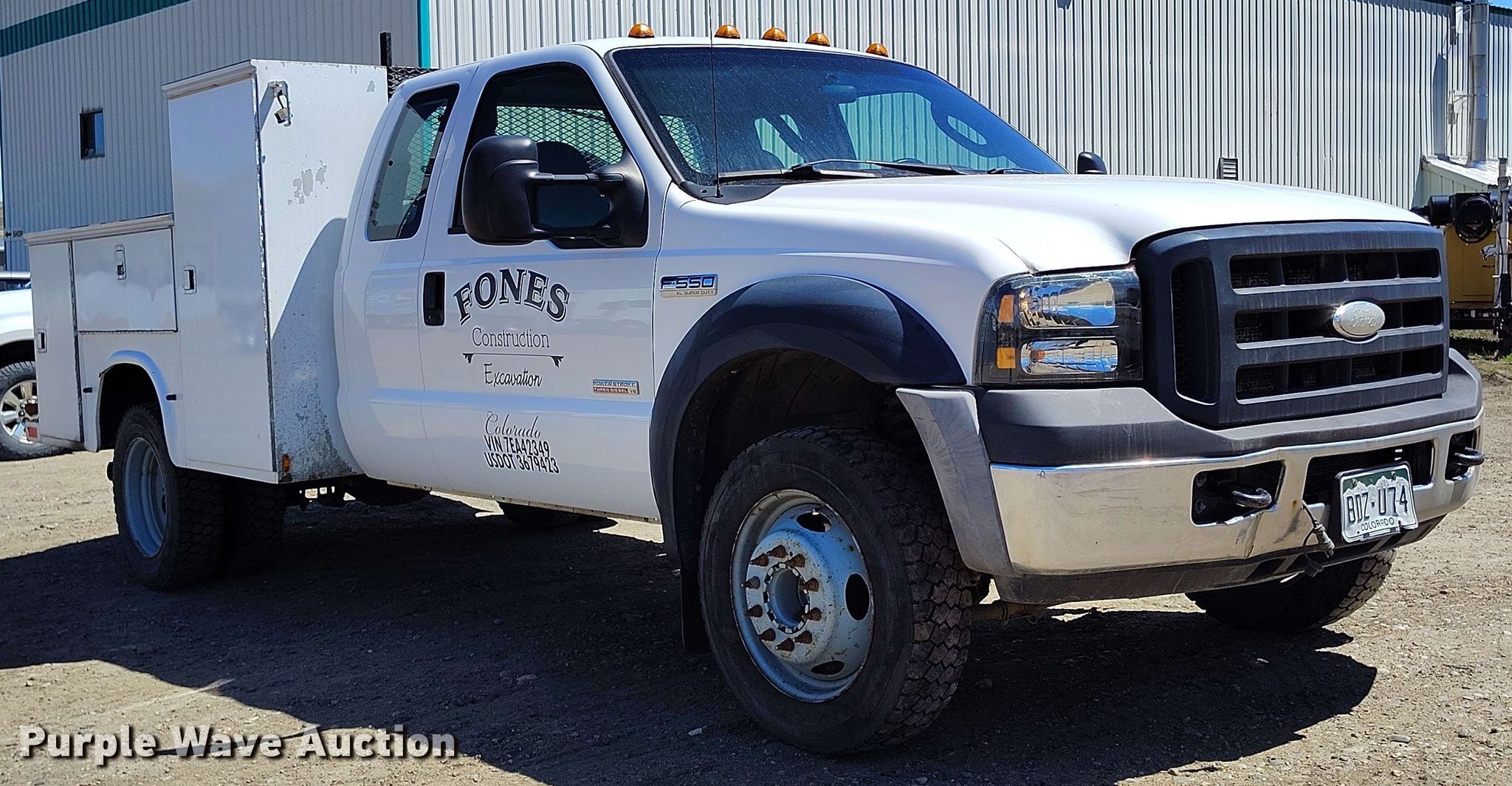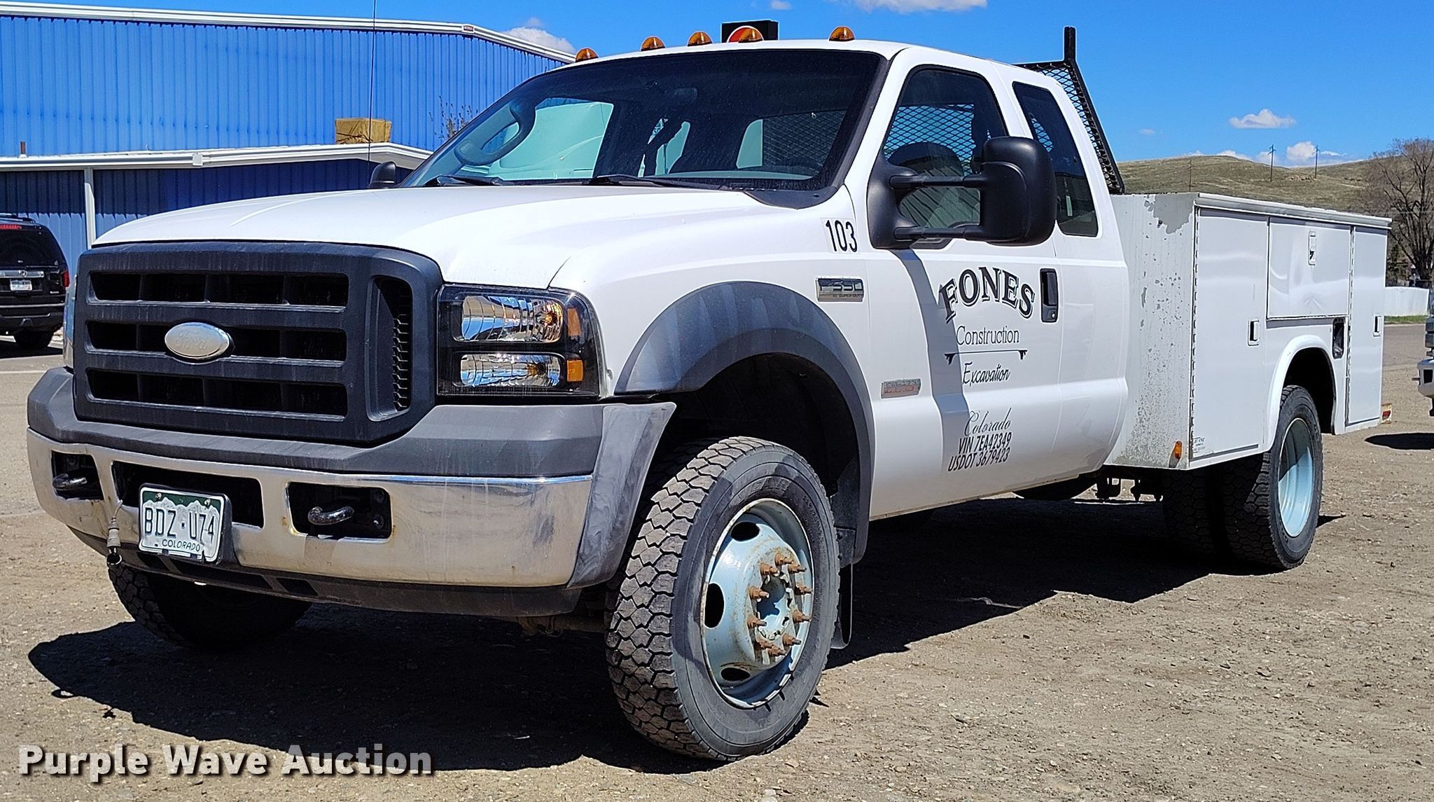 Purple Wave is selling a used Service Truck in Colorado. This item is a 2007 Ford F550 utility / service truck with the following: Miles: 186,630 on odometer, Hours: 5,972 on meter, VIN: 1FDAX56P57EA42349, Unit #: 103