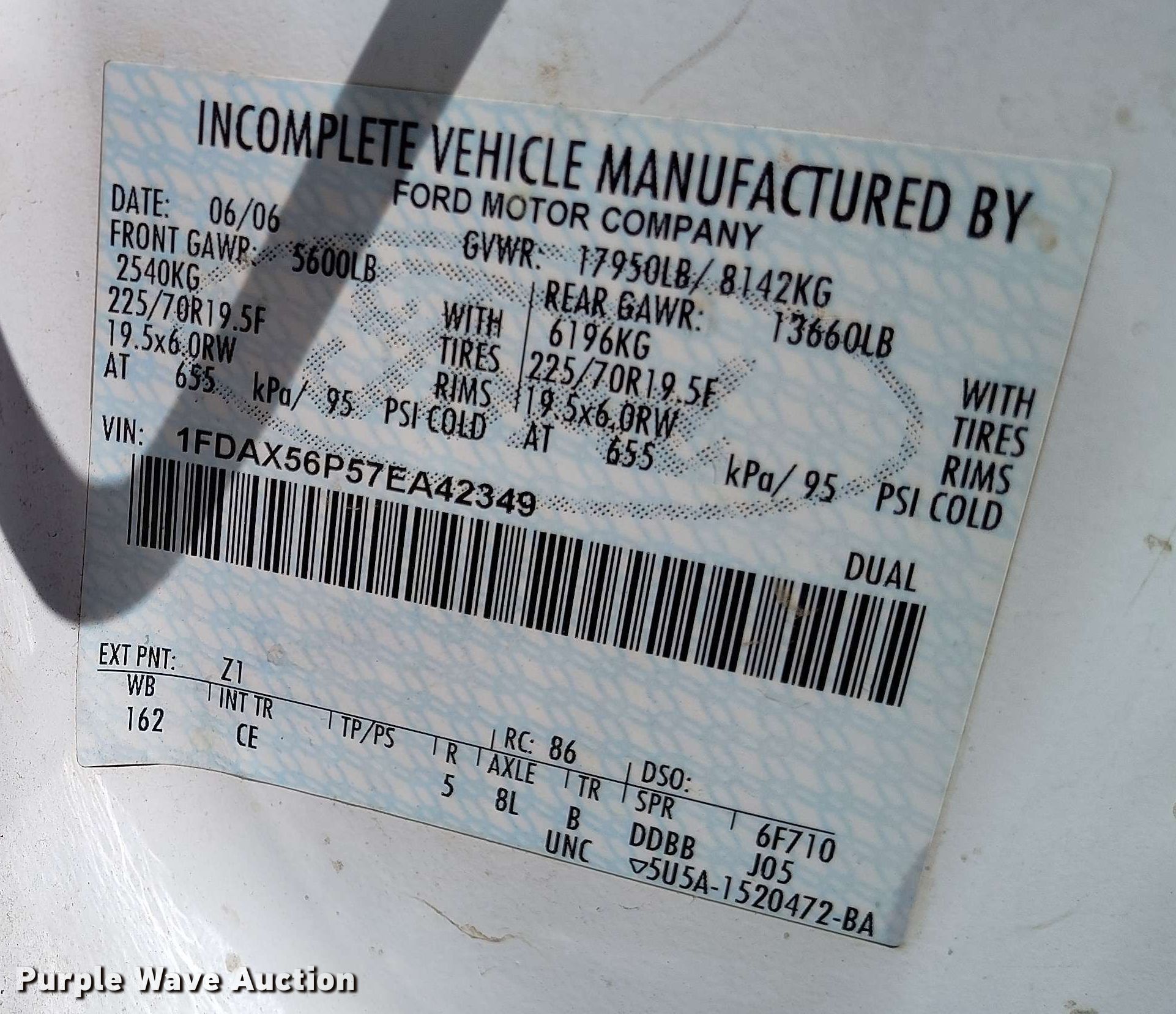 - VIN: 1FDAX56P57EA42349
