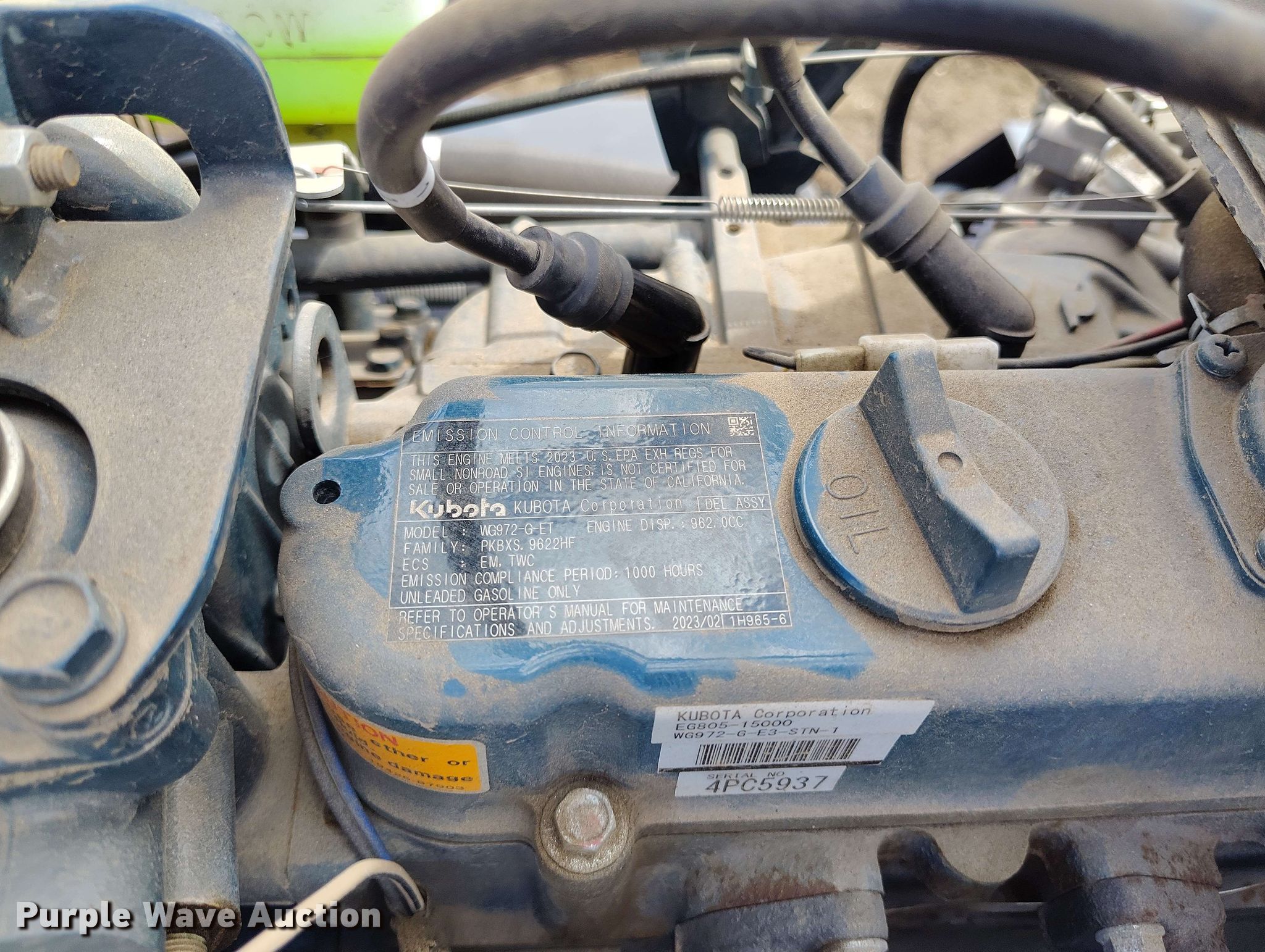 2023 Bobcat AT450 lawn tractor. Hours: 3 on meter. Engine Kubota WG972-G-ET, Displacement: 962 cc, Cylinders: 3, Fuel type: Gas, HP: 32. Transmission Hydrostatic. Chassis Four wheel drive. Features Auxiliary hydraulics, Front mounted PTO, Mower deck Bobcat 7527214, Width: 72", Suitcase weights: 4. Tires Size: 22x12.00-10. Ready Dig. Hudson, CO 80642