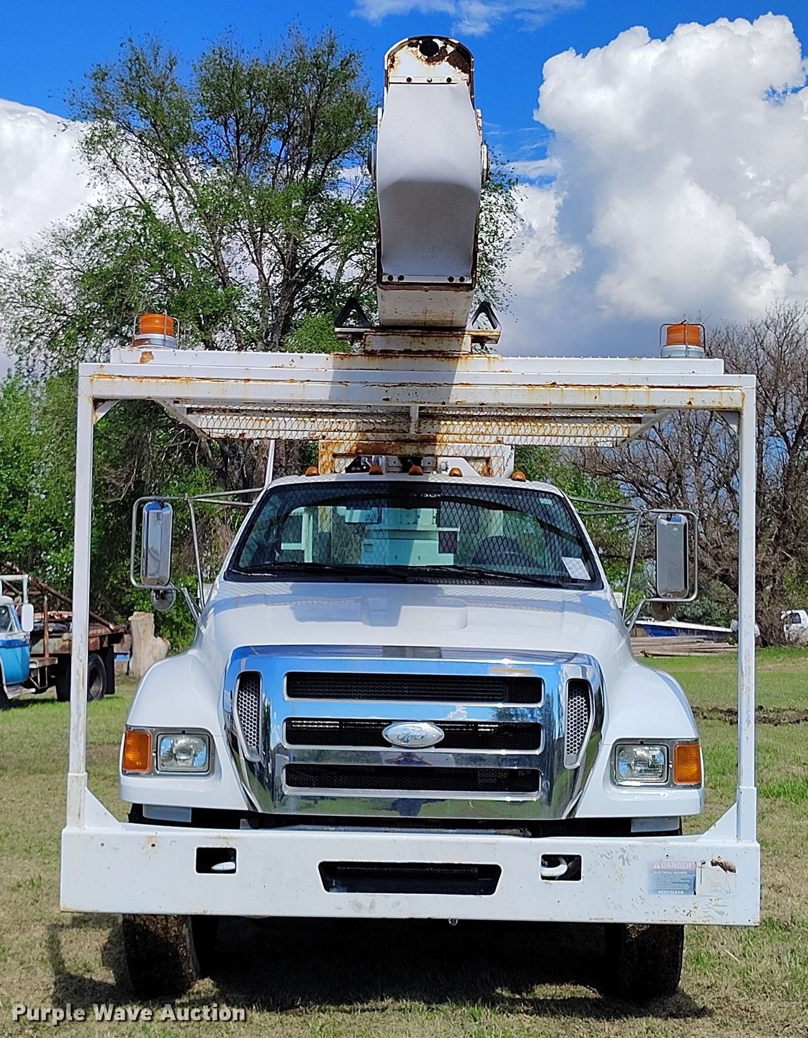 This 2008 Ford F750 Super Duty bucket truck will sell to the highest bidder regardless of price.