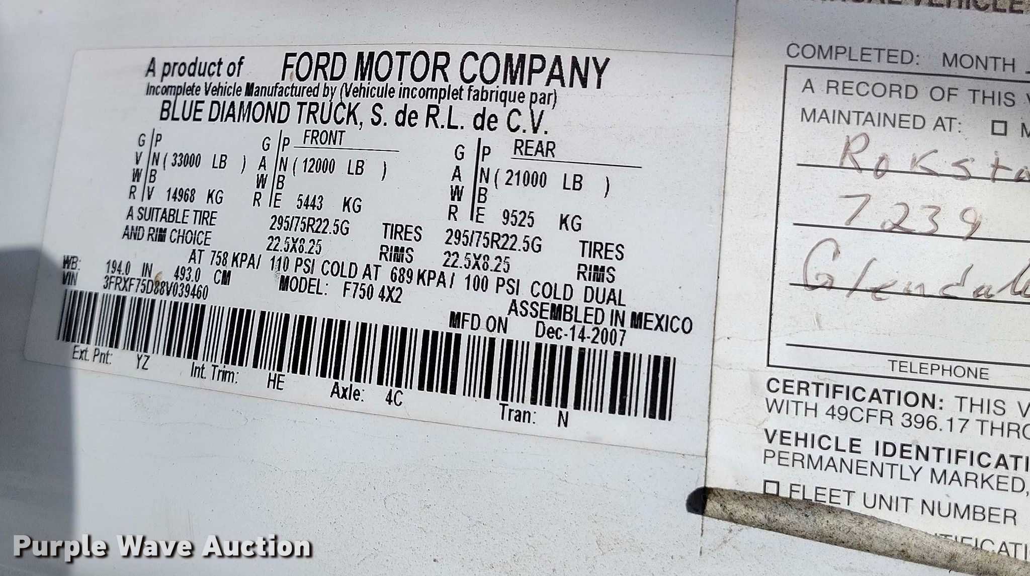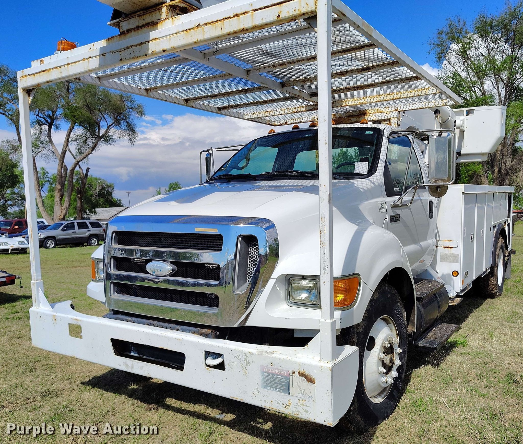 Purple Wave is selling a used Bucket Truck in Colorado. This item is a 2008 Ford F750 Super Duty bucket truck with the following: Miles: 76,008 on odometer, Hours: 2,246 on meter, VIN: 3FRXF75D88V039460