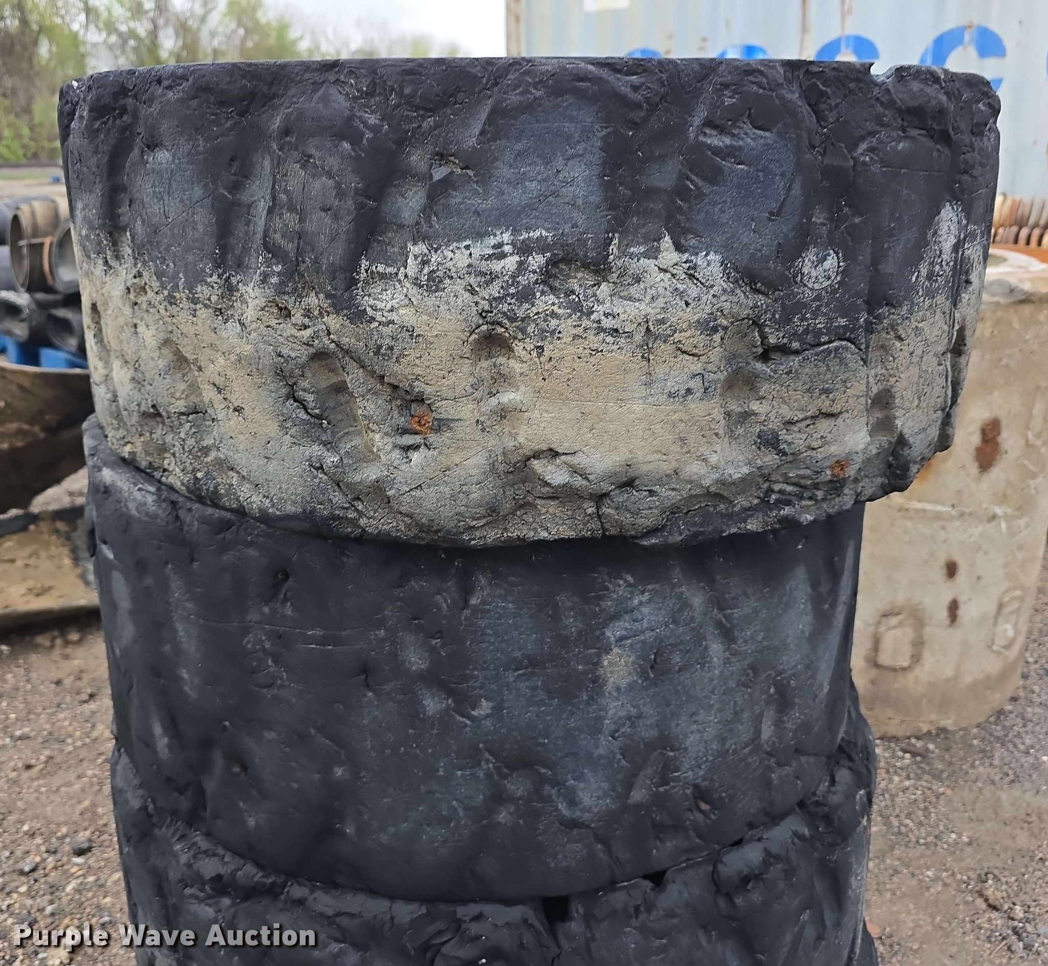 Purple Wave is selling a used Industrial Tires or Tracks in Nebraska. This item is a Skid steer tires and wheels with the following: (4) 33x6x11, (4) 33x12-20