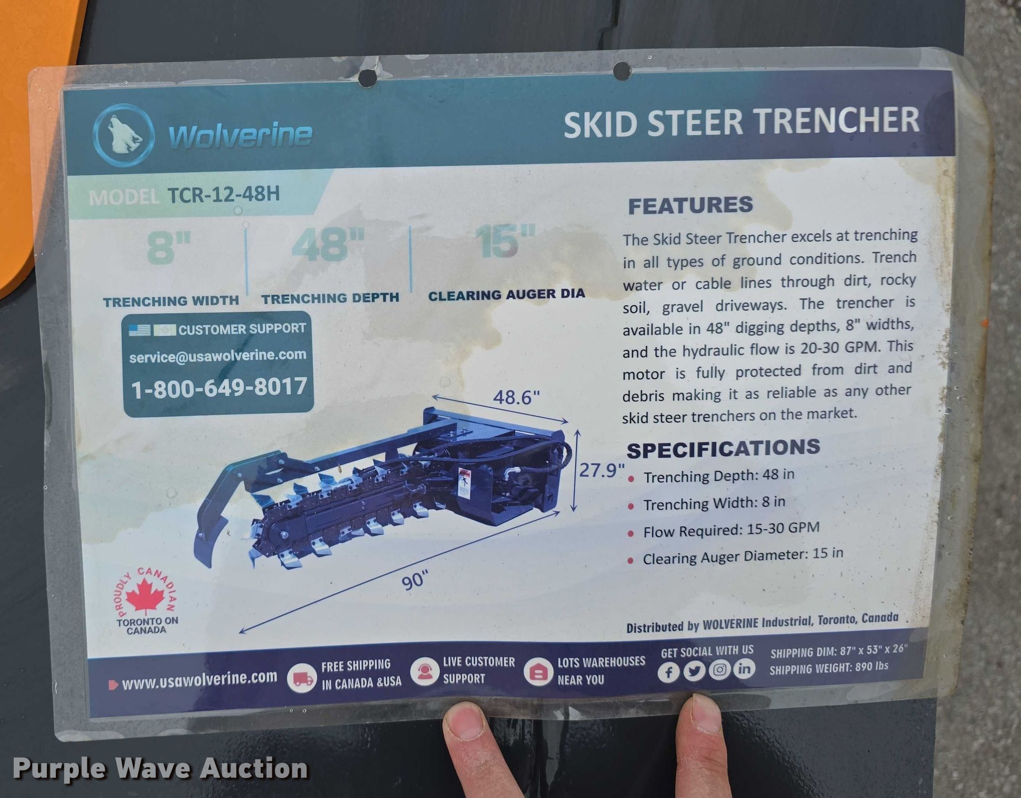 This 2025 Wolverine TCR-12-48H skid steer trencher will sell to the highest bidder regardless of price.