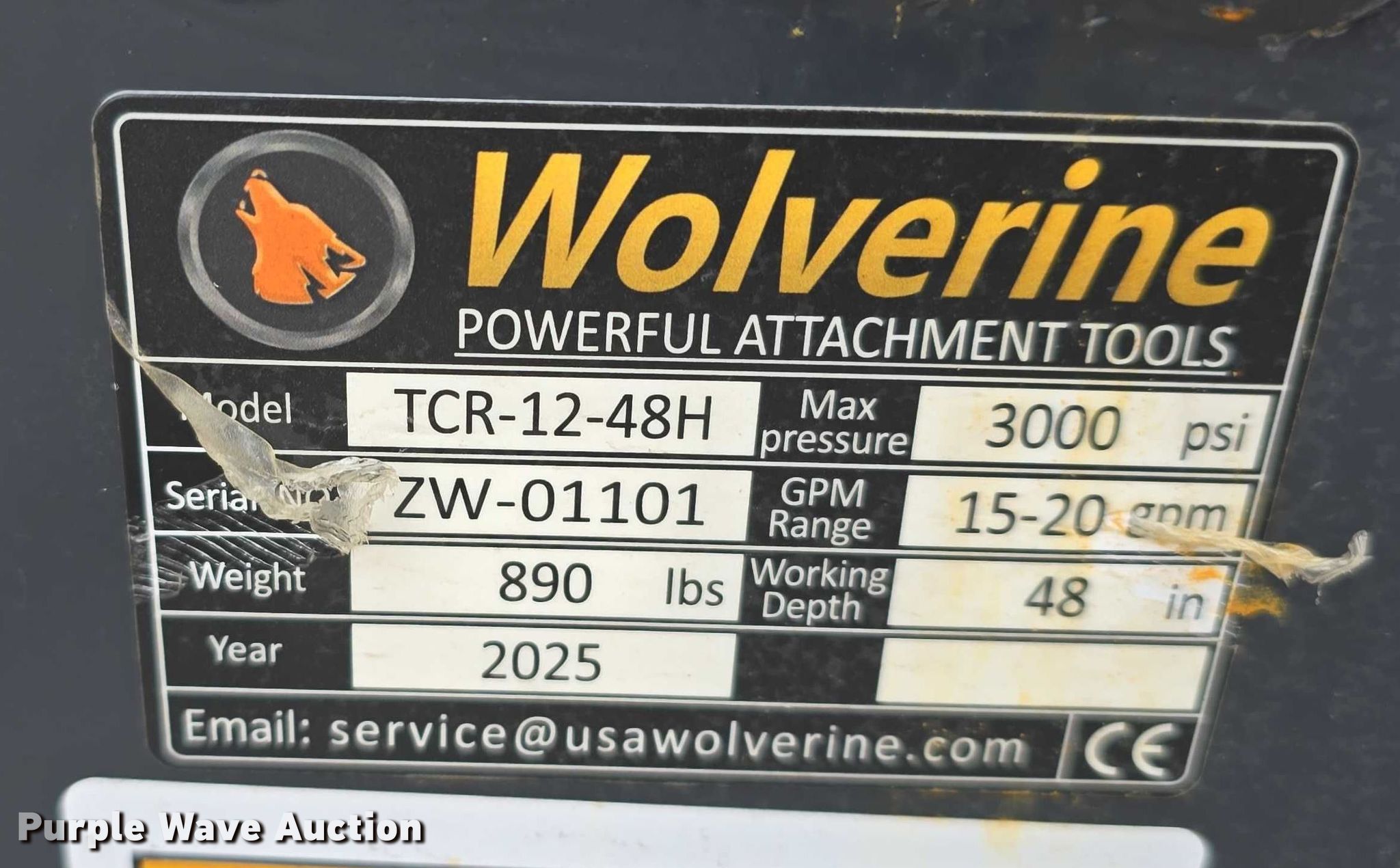 Purple Wave is selling a used Skid Steer Attach. in Nebraska. This item is a 2025 Wolverine TCR-12-48H skid steer trencher with the following: Serial: ZW-01101