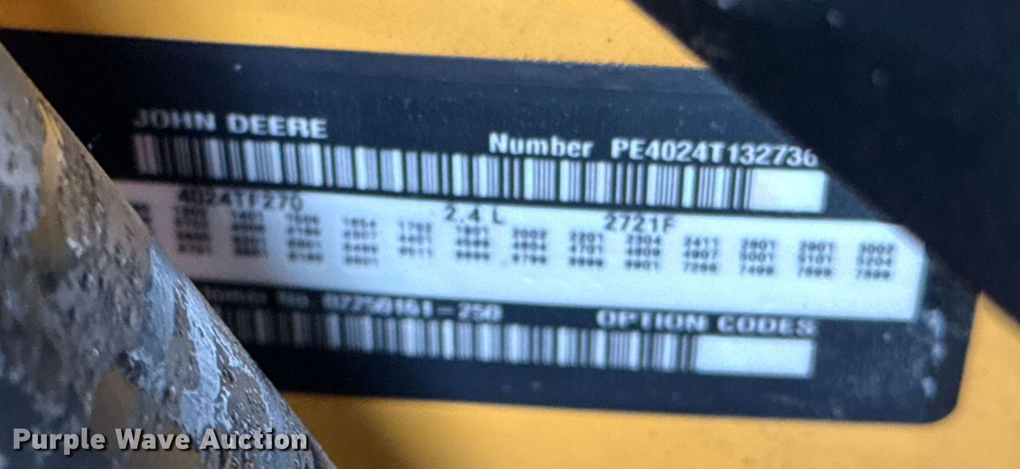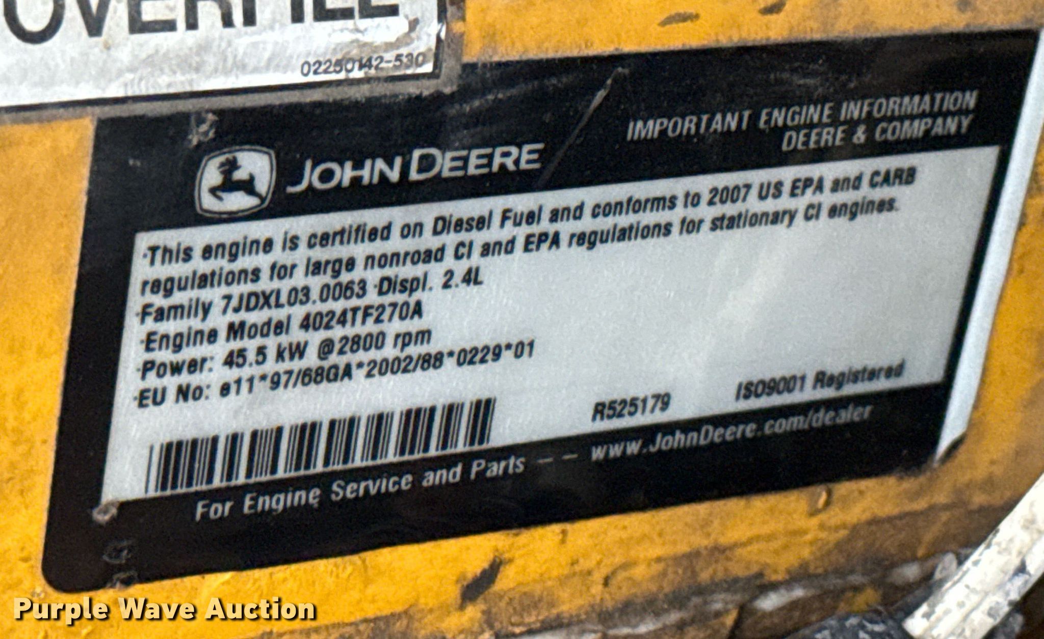 Sullair 185 air compressor. Hours: 45 on meter Actual hours unknown. Engine John Deere 4024TF270A, Serial: PPEA4024T132736, Displacement: 2.4L, Cylinders: 4, Fuel type: Diesel, kW: 45. Features Air compressor Skid mounted. Notes Non-operational unit. Grand Prairie, TX 75050