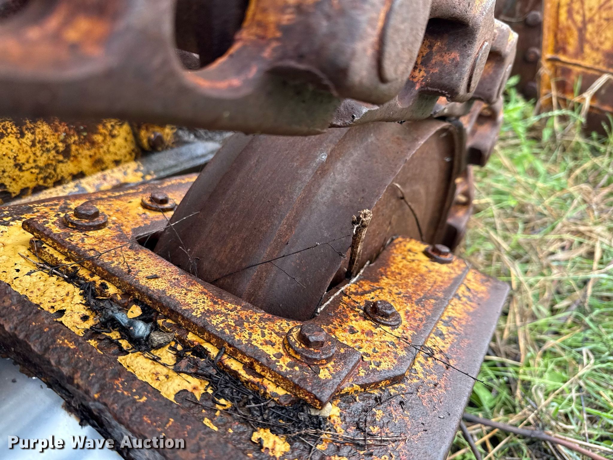 1987 Caterpillar D4H dozer. Hours: 877 on meter, Serial: 8PB01834. Engine Caterpillar 3204DI, Serial: 45V65753, Cylinders: 4, Fuel type: Diesel. Transmission Powershift, 3F - 3R. Operators station Canopy, Steering: Differential. Features Sweeps, Rear drawbar, Dozer blade Blade type: 6-way, Blade shape: Straight, Width: 101". Notes (5) pallets Engine covers, Belly pans, Approx. 62 grouser pads, Unit disassembled, parts may be missing, Non-operational unit. Lee County Crawlers, LLC. Giddings, TX 78942