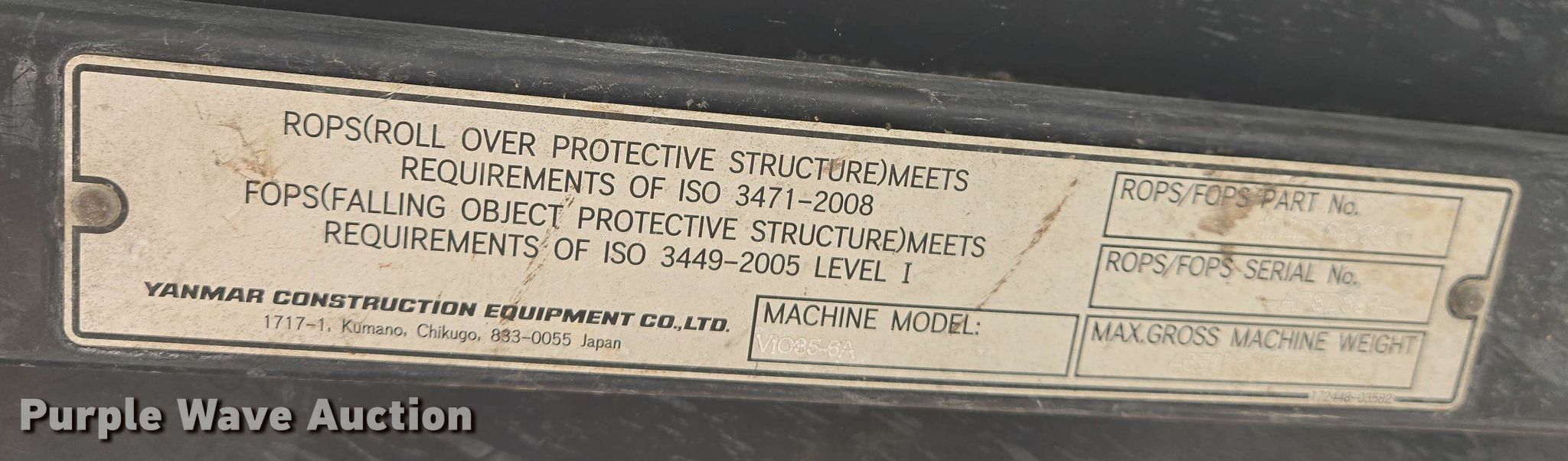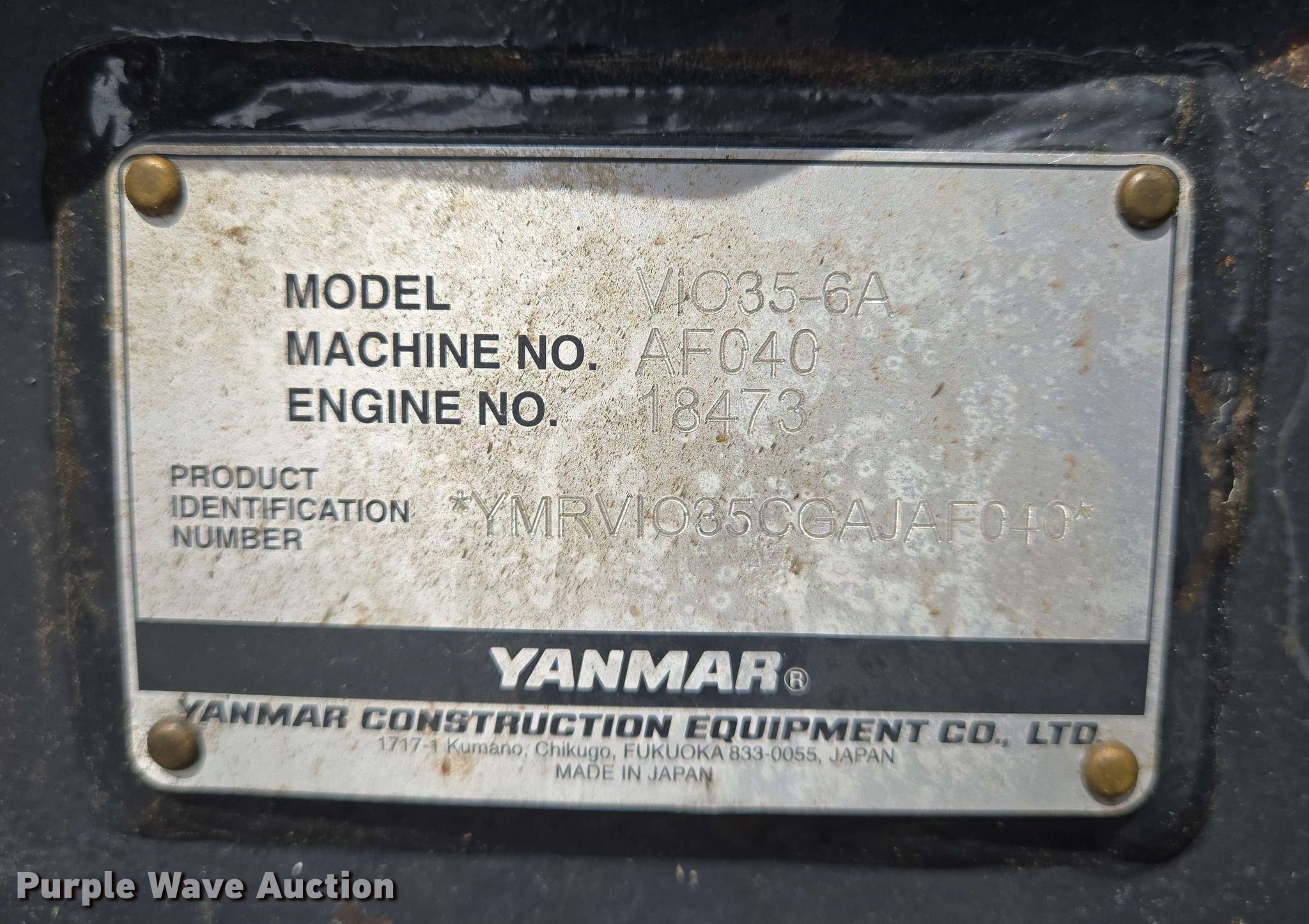 Purple Wave is selling a used Mini Excavator in Missouri. This item is a Yanmar VIO35-6A mini excavator with the following: Hours: 5,996 on meter, Miles or hours may vary, unit still in use, Serial: YMRVIO35CGAJAF040, Unit #: 818