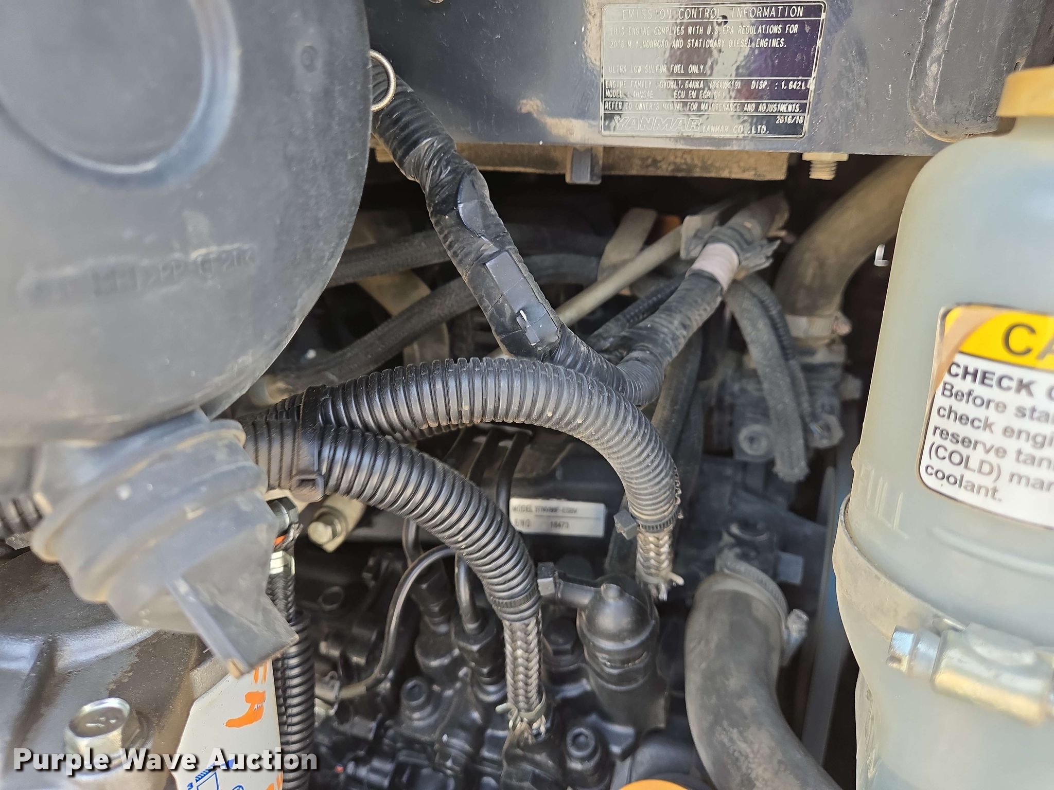 Yanmar VIO35-6A mini excavator. Hours: 5,996 on meter, Miles or hours may vary, unit still in use, Serial: YMRVIO35CGAJAF040, Unit #: 818. Engine Yanmar 4H SAE, Displacement: 1.642L, Cylinders: 3, Fuel type: Diesel. Transmission Hydrostatic, Two speed travel. Operators station OROPS. Features Auxiliary hydraulics, Counter weights, Backfill blade Width: 68", Boom Swing, Stick Stick length: 5' 1", Quick coupler: Hydraulic, Bucket TAG, Width: 19", Cutting edge: Weld-on, Teeth: 4. Tracks Width: 12", Rubber. Geringer Construction LLC. Perryville, MO 63775
