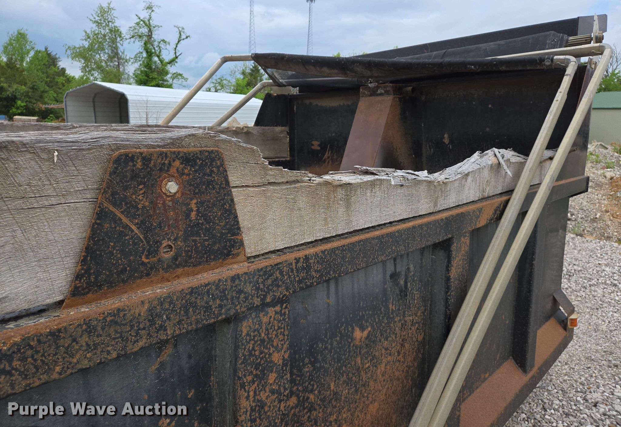 Purple Wave is selling a used Truck Part and Attach. in Missouri. This item is a Dump truck bed with the following: 16' L x 8' W, Side height: 37", Side board height: 11", Bed type: Steel, Roll tarp, Ram: Single, End gate: Air operated