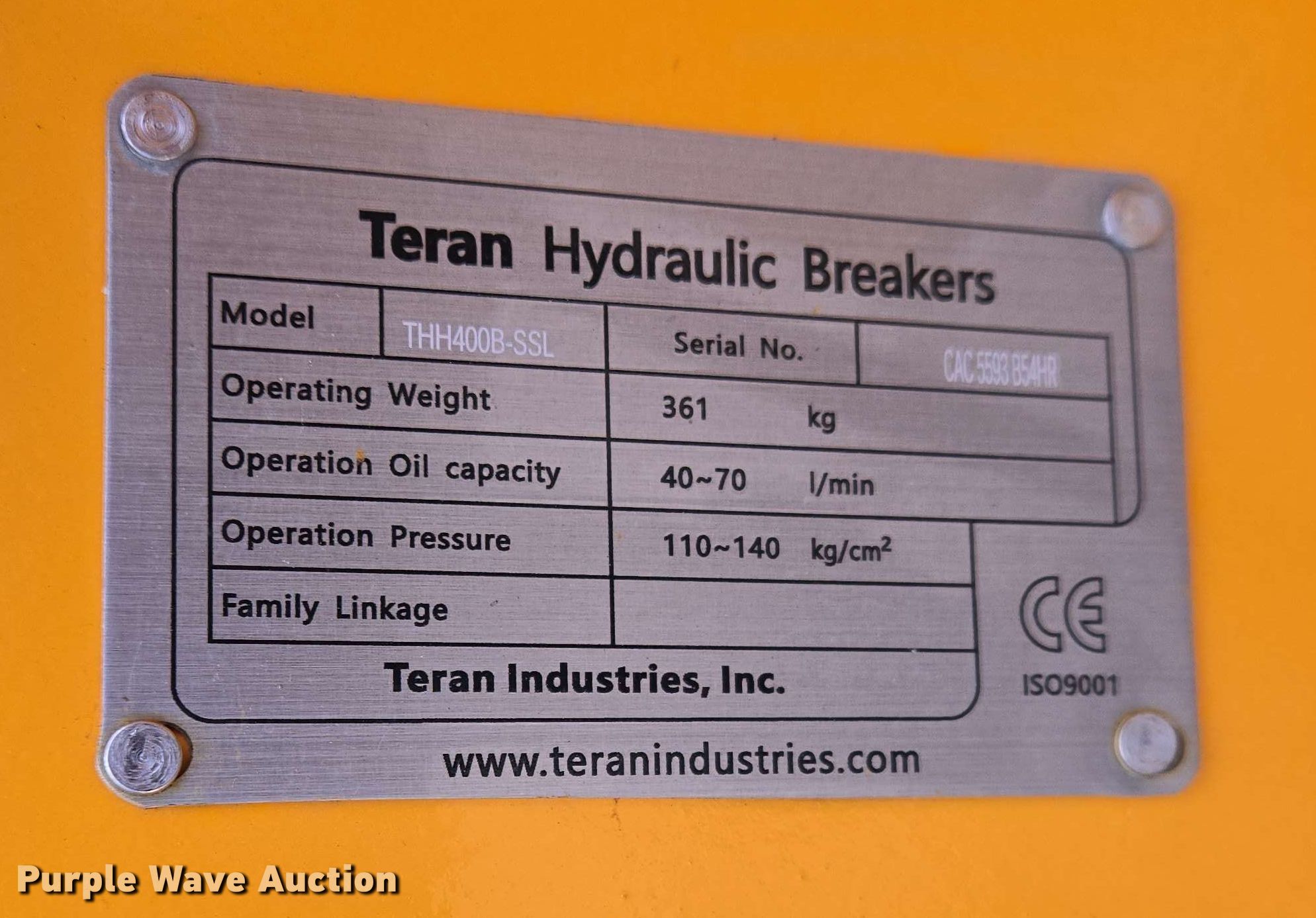 This Teran THH400B-SSL skid steer breaker will sell to the highest bidder regardless of price.