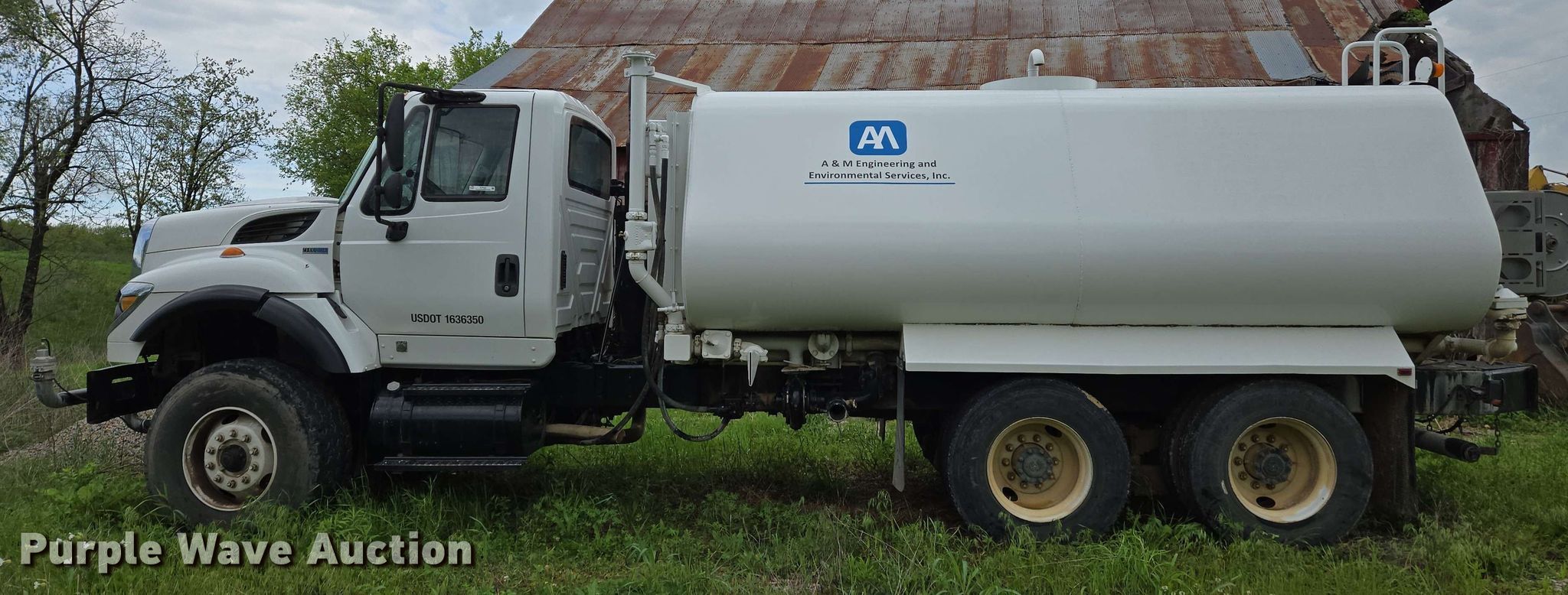Purple Wave is selling a used Tank Truck or Water Truck in Missouri. This item is a 2011 International 7500 water truck with the following: Miles: 110,626 on odometer, Hours: 10,453 on meter, VIN: 1HTWNAZTXBJ394203
