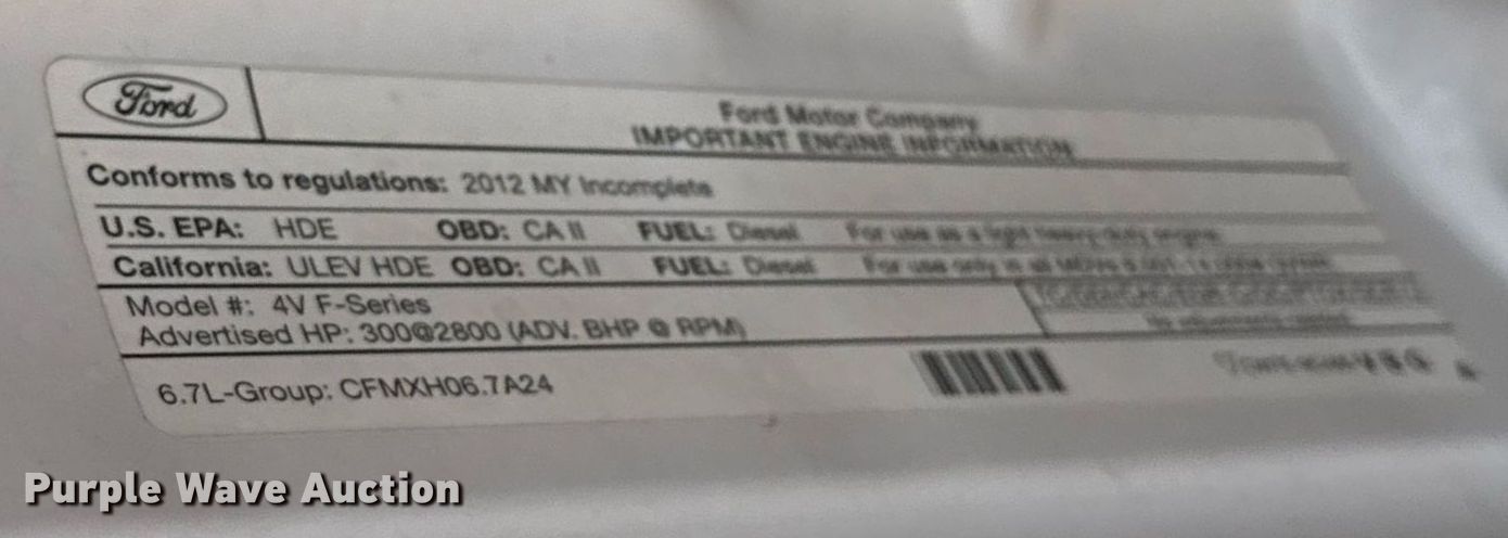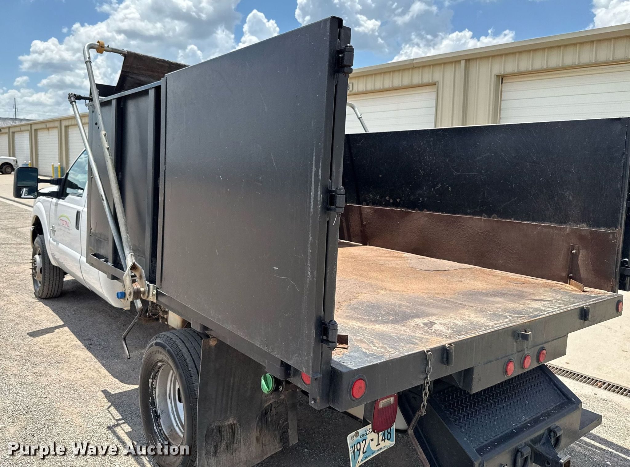 2012 Ford F350 Super Duty XL SuperCab dump bed pickup truck. Miles: 76,229 on odometer, VIN: 1FD8X3HT3CEB95738. Engine Displacement: 6.7L, Cylinders: 8, Fuel type: Diesel. Transmission Automatic, Four wheel drive. Interior AC, Heat, Cruise control. Features Ram: Single, Dump bed 9' L x 96" W, Side height: 42", Roll tarp, End gate: Manual. Tires Size: LT245/75R17. Notes Decals to be removed prior to auction, Dash warning indicator: Check engine. Oklahoma title. Title distribution may be delayed up to 14 days from verification of funds. Total Environment. Edmond, OK 73013
