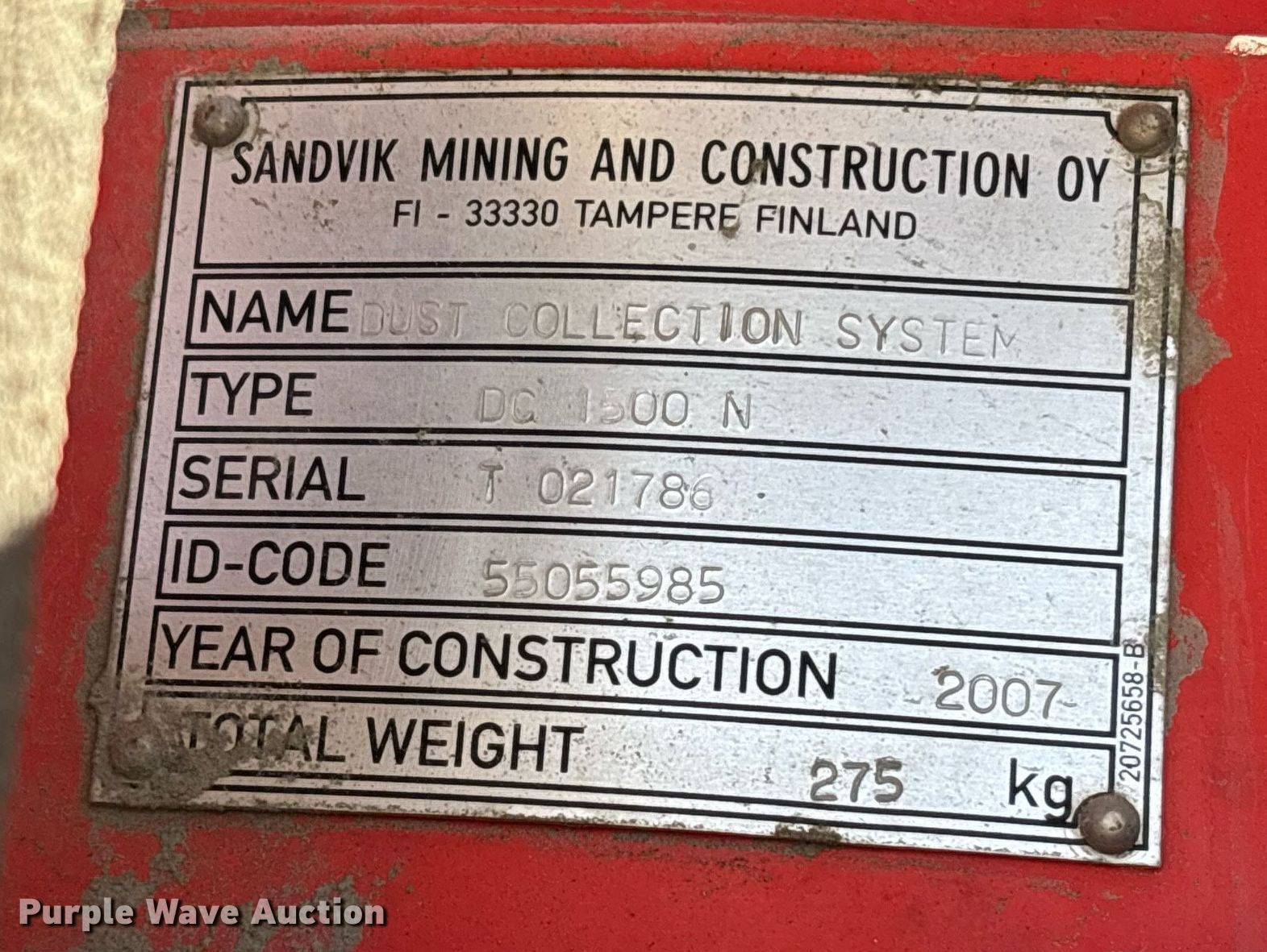 • 2007 Sandvik Dust Collection System DC 1500 N