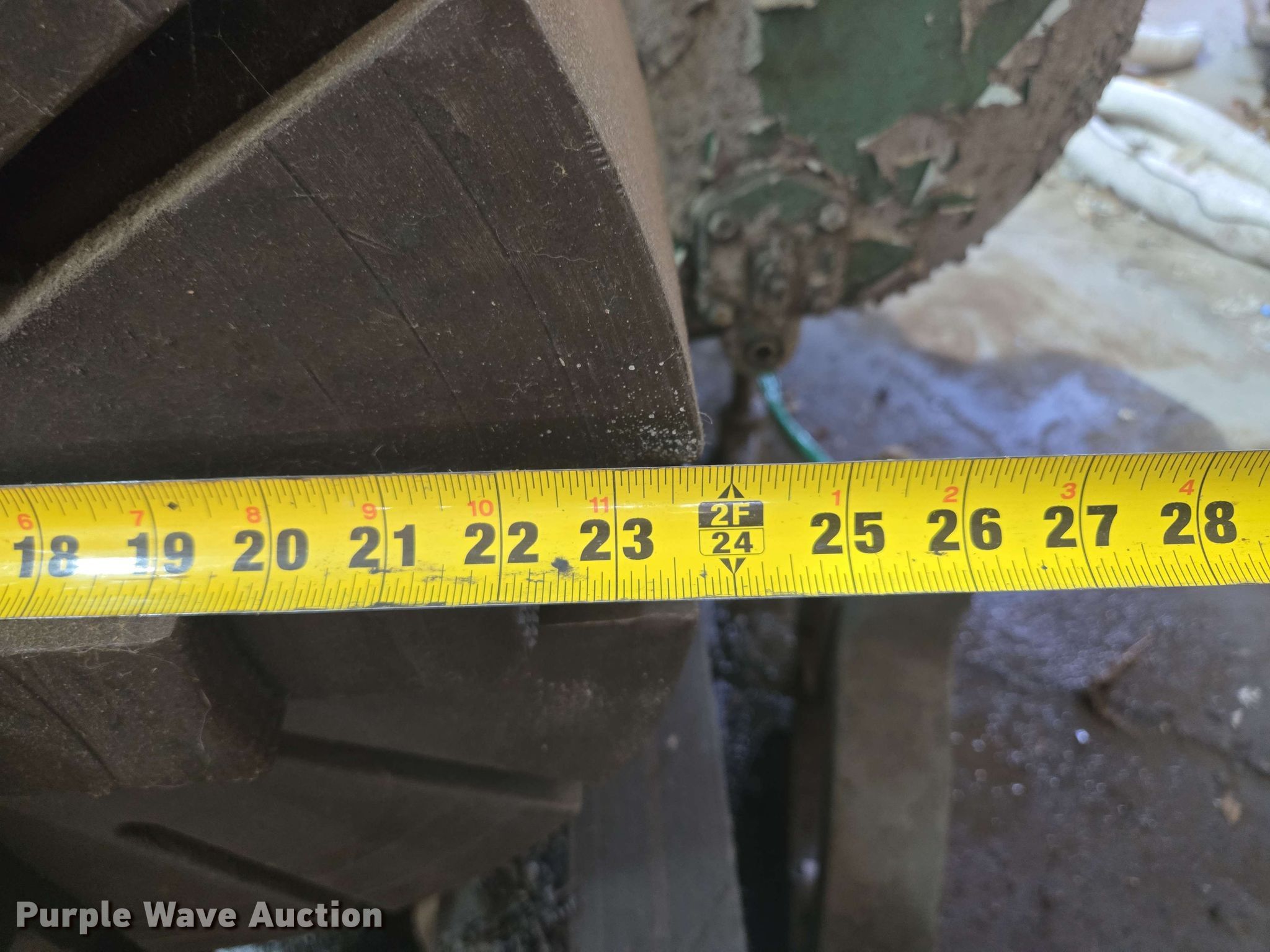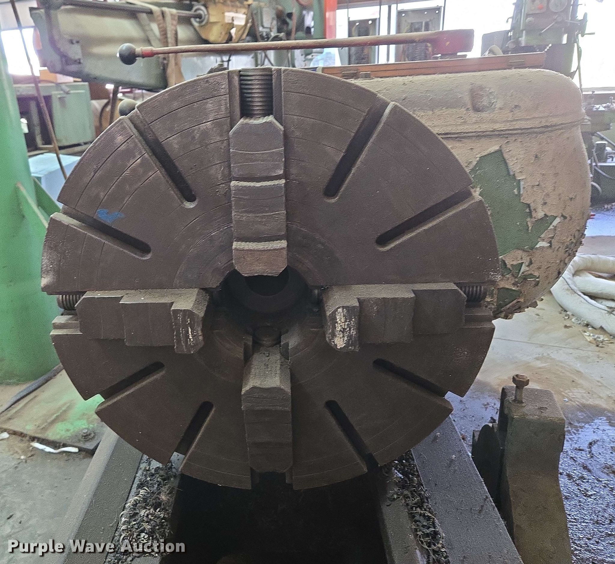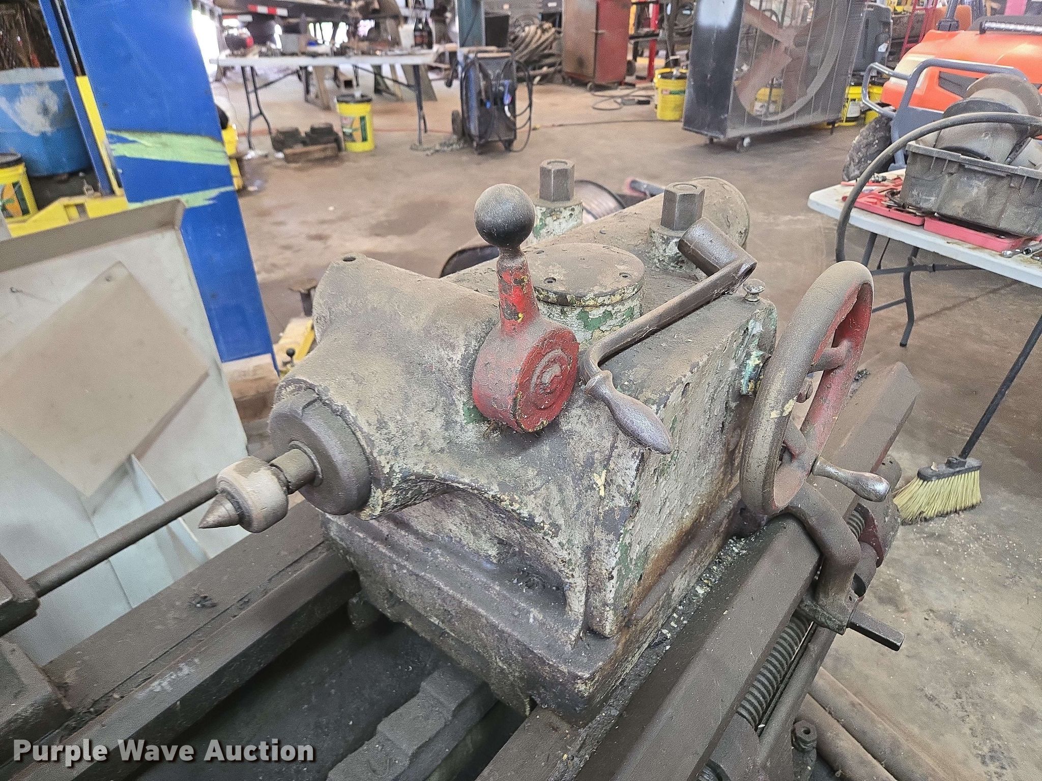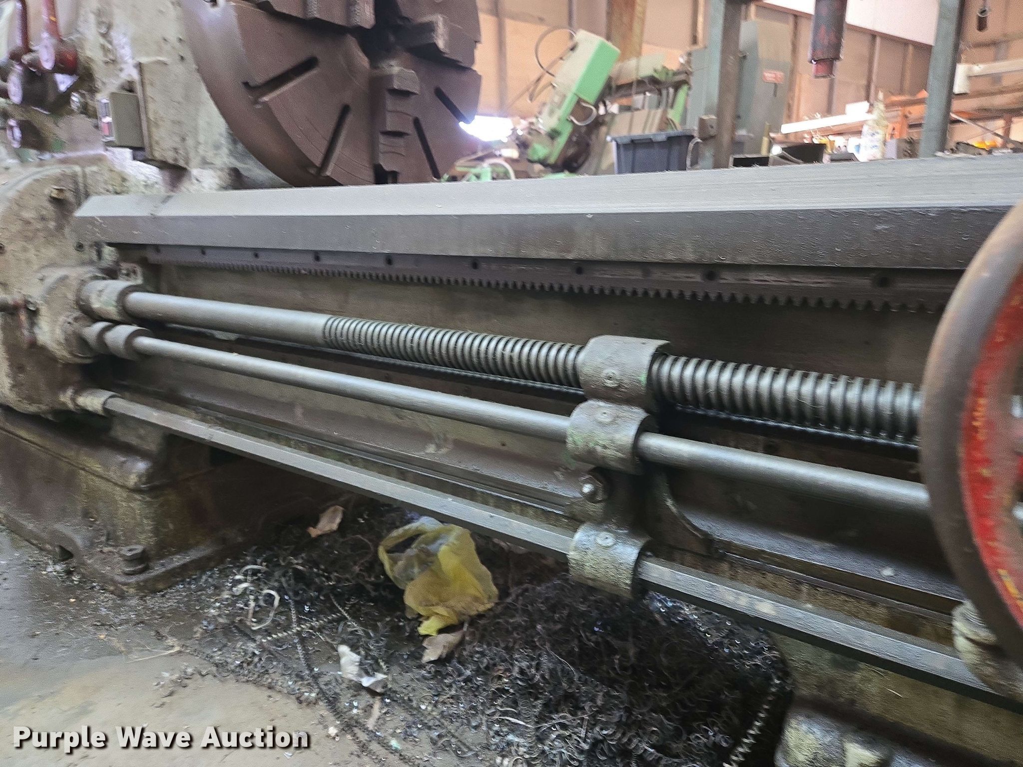 Axelson lathe. Serial: 1609. Electric Motor Westinghouse Electric, Volts: 220/440, Phase: Three. Features Size: 25", Maximum swing: 28 1/2", Bed: 14', Centers: 96", Clamp head Diameter: 24", Adjustable, Length adjustment: Manual. Notes (2) additional pipe clamps, Self-standing light fixture. Gary Sisk Drilling. Odessa, MO 64076