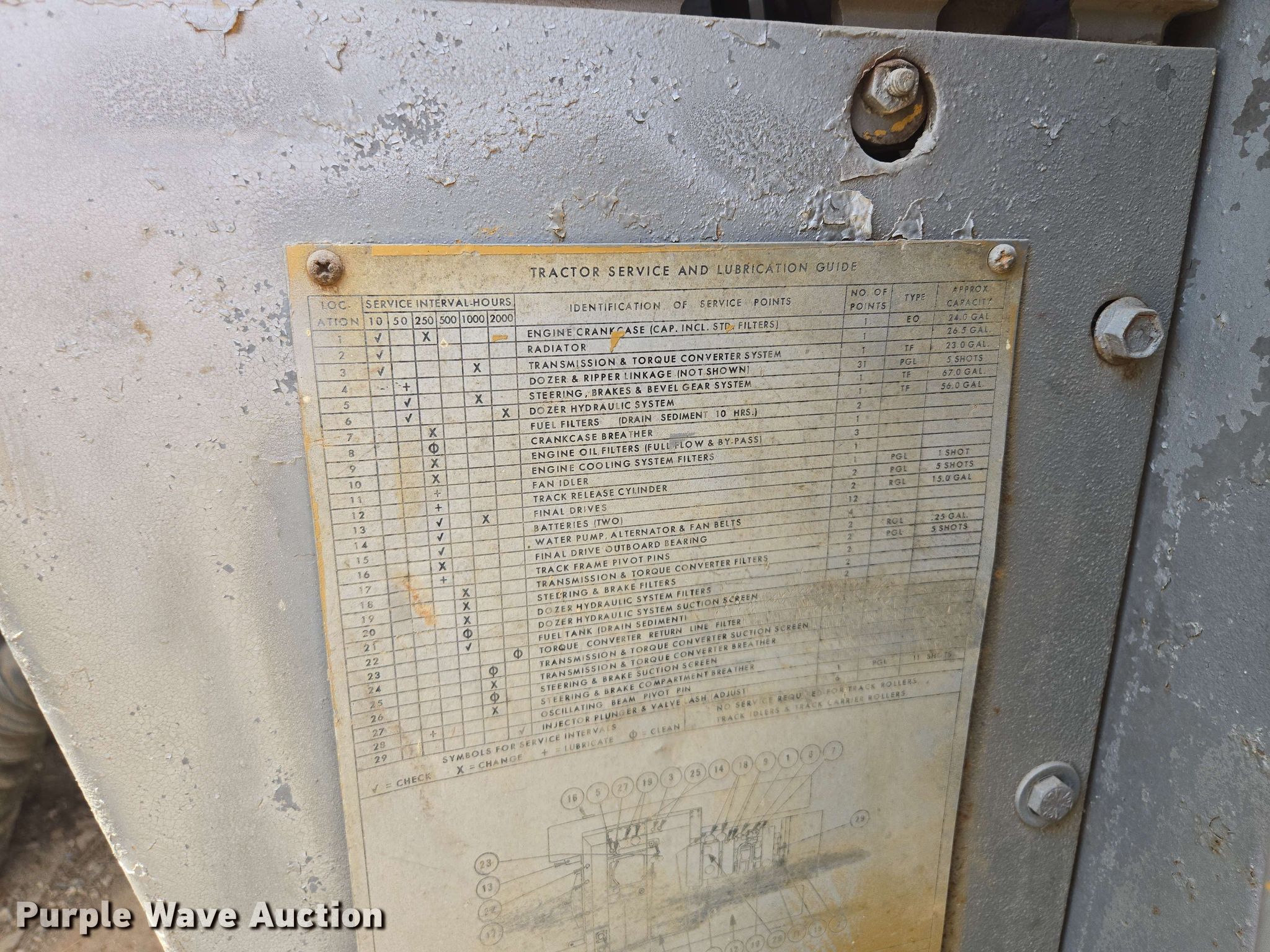 1977 Fiat-Allis 31 dozer. Hours: 4,364 on meter, Serial: 8 4M01135. Engine Cummins, Cylinders: 6, Fuel type: Diesel. Transmission Powershift, 3F - 3R. Operators station Enclosed cab, Steering: Clutch brake. Features Dozer blade Blade type: Single-tilt, Blade shape: U, Width: 17', Attachments Ripper Fiat-Allis, Shanks: 1.. Tracks Width: 28", Grouser pads: Single, Bottom rollers: 6, Track guards. Notes Glass cracked, Tilt hydraulic cylinder leak. Gary Sisk Drilling. Odessa, MO 64076