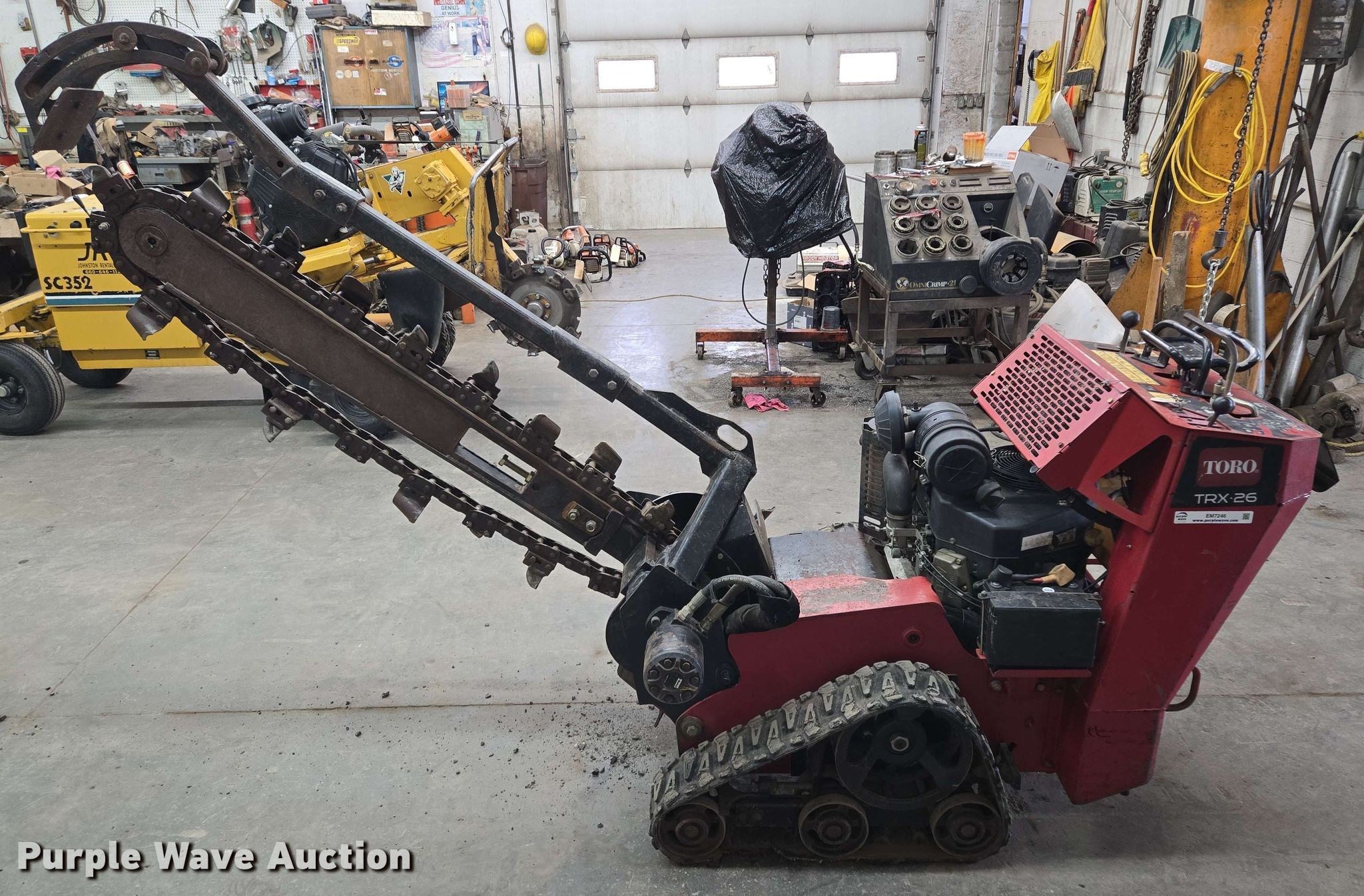 Purple Wave is selling a used Trencher or Rock Saw in Missouri. This item is a Toro TRX-26 trencher with the following: Hours: 641 on meter, Serial: 311000116