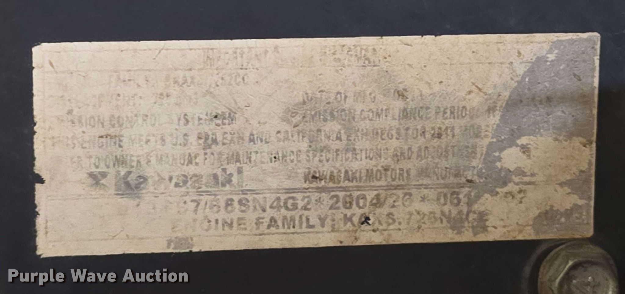 Toro TRX-26 trencher. Hours: 641 on meter, Serial: 311000116. Engine Kawasaki FX730V, Displacement: 726 cc, Cylinders: 2, Fuel type: Gas. Transmission Hydrostatic. Features Trencher Estimated dig depth: 48", Cutting width: 6", Teeth: Dirt, Crumber. Tracks Width: 6", Rubber. Chillicothe, MO 64601