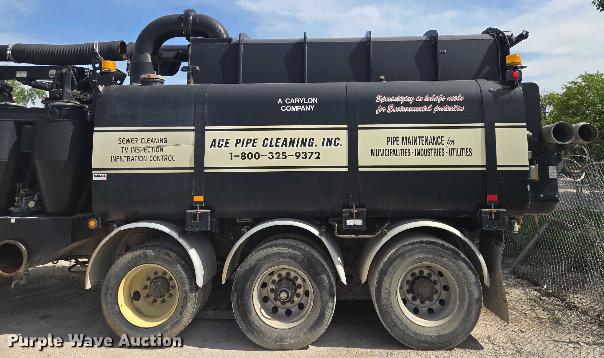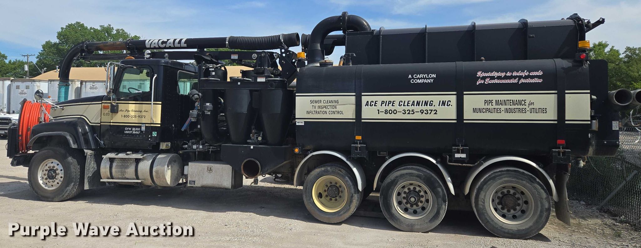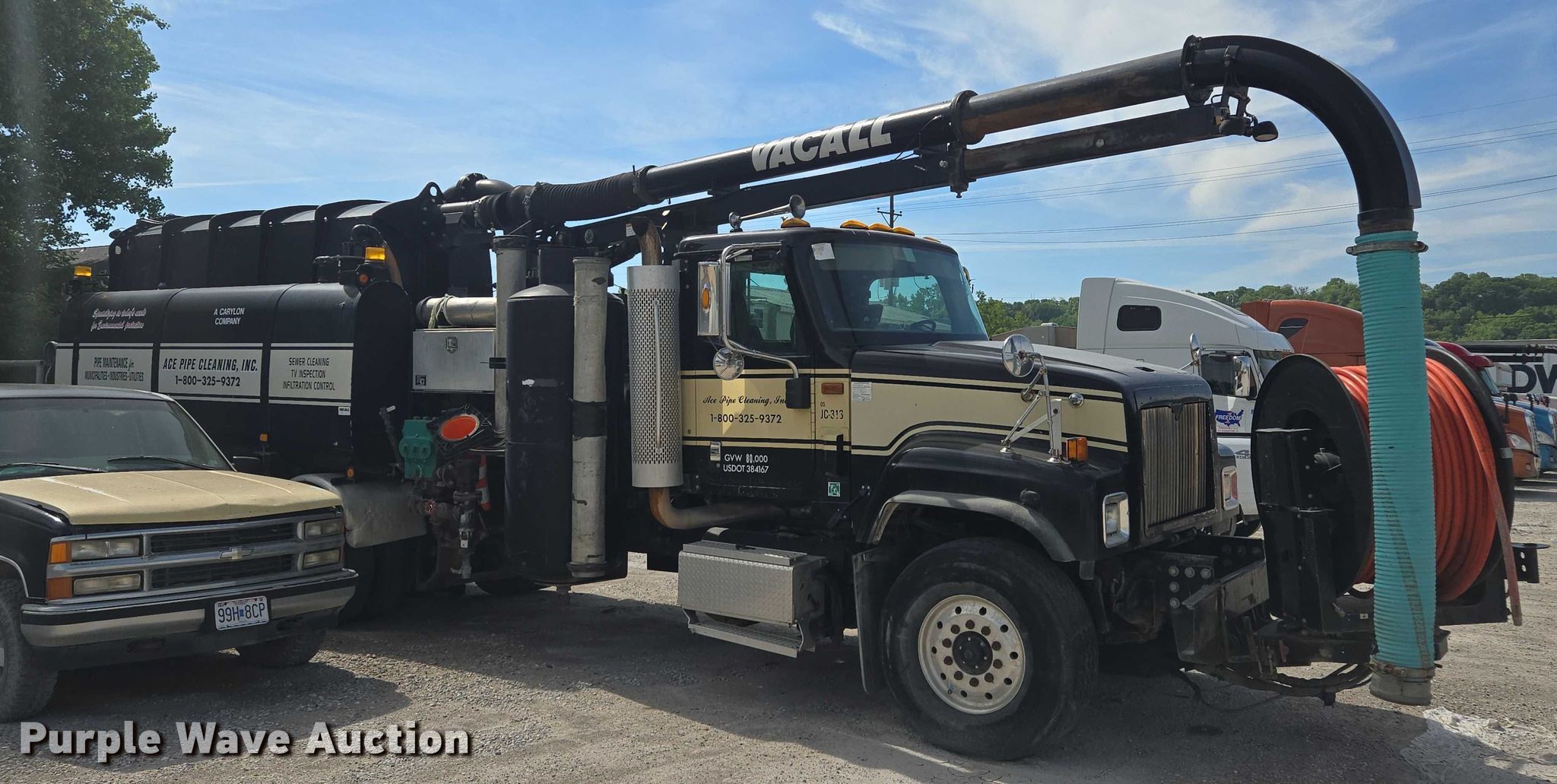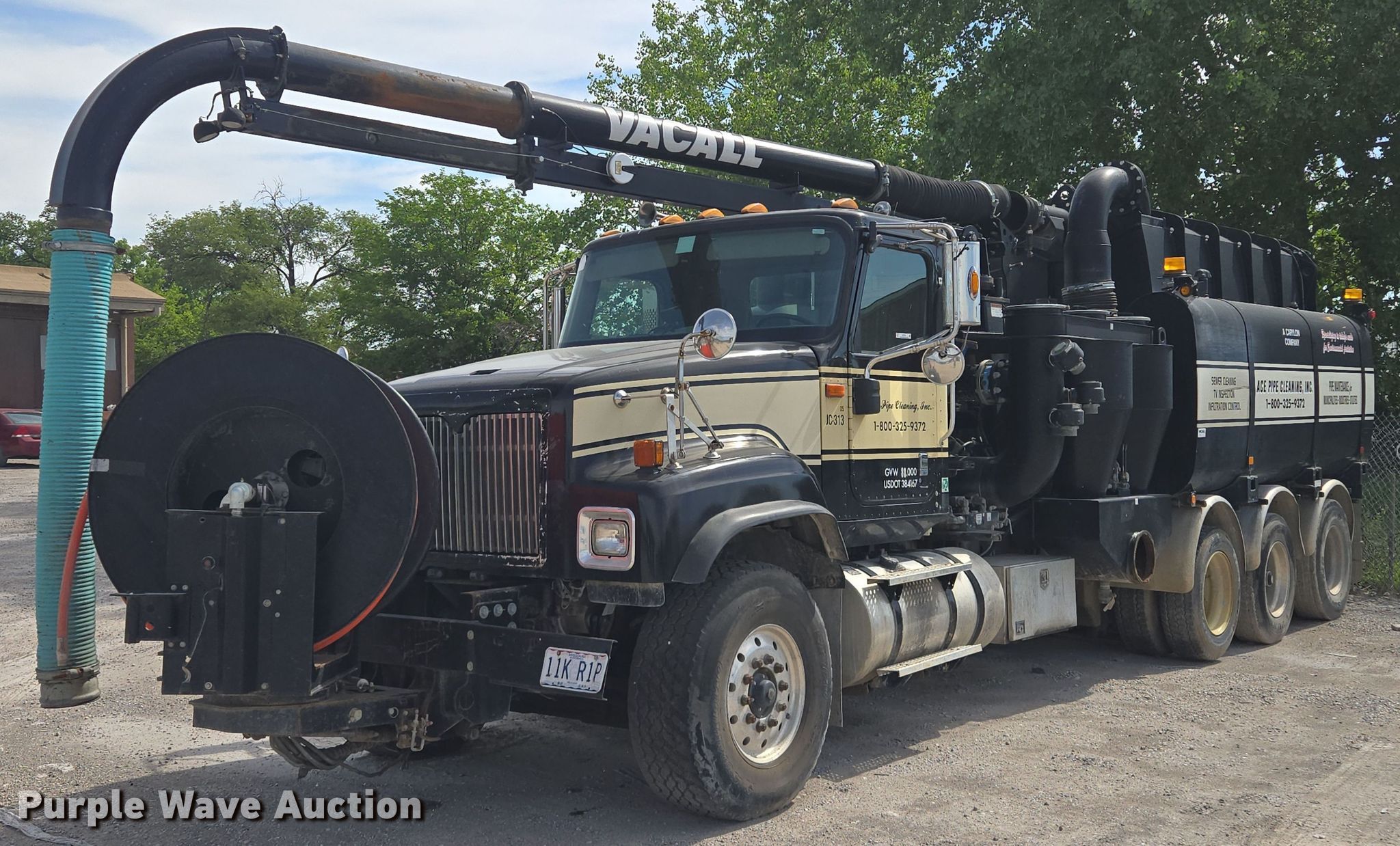 2006 International 5500i sewer jetter truck. Miles: Unknown, VIN: 1HTXLAPT96J200196. Engine Cummins, Displacement: 14.9L, Cylinders: 6, Fuel type: Diesel. Transmission Allison, Automatic. Chassis Axles: Triple, Pusher axle, Suspension: Spring over walking beam, Brakes: Air, PTO, GVWR: 80,000 lbs. Interior AC, Heat, Cruise control, Auxiliary controls. Features Tank bed Vacall AJV1215, Serial: AJV0004268, Capacity: 1,500 gallons, Rear outlet: 6", Hose reel Front, Hydraulic, Diameter: 48", Telescopic boom Diameter: 8".. Tires Front: 425/65R22.5, Rear: 11R22.5, Lift axle: 275/70R22.5. Notes Dead battery, Non-operational engine, blown , Non-operational unit Unit must be towed or hauled. Missouri title. Mileage has not been verified. Odometer discrepancy will be marked on the title. Title distribution may be delayed up to 14 days from verification of funds. Ace Pipe Cleaning, Inc.. Kansas City, MO 64120