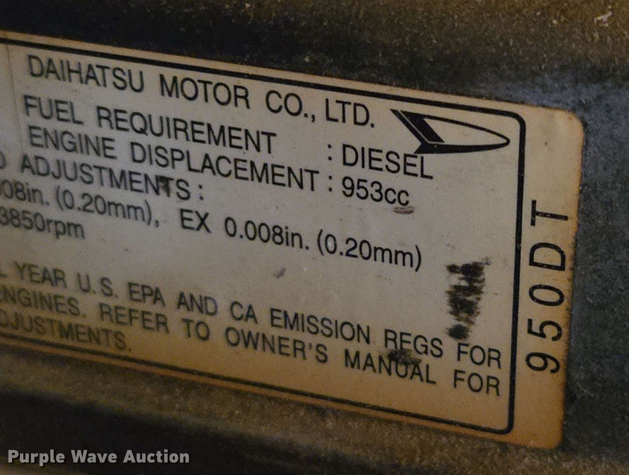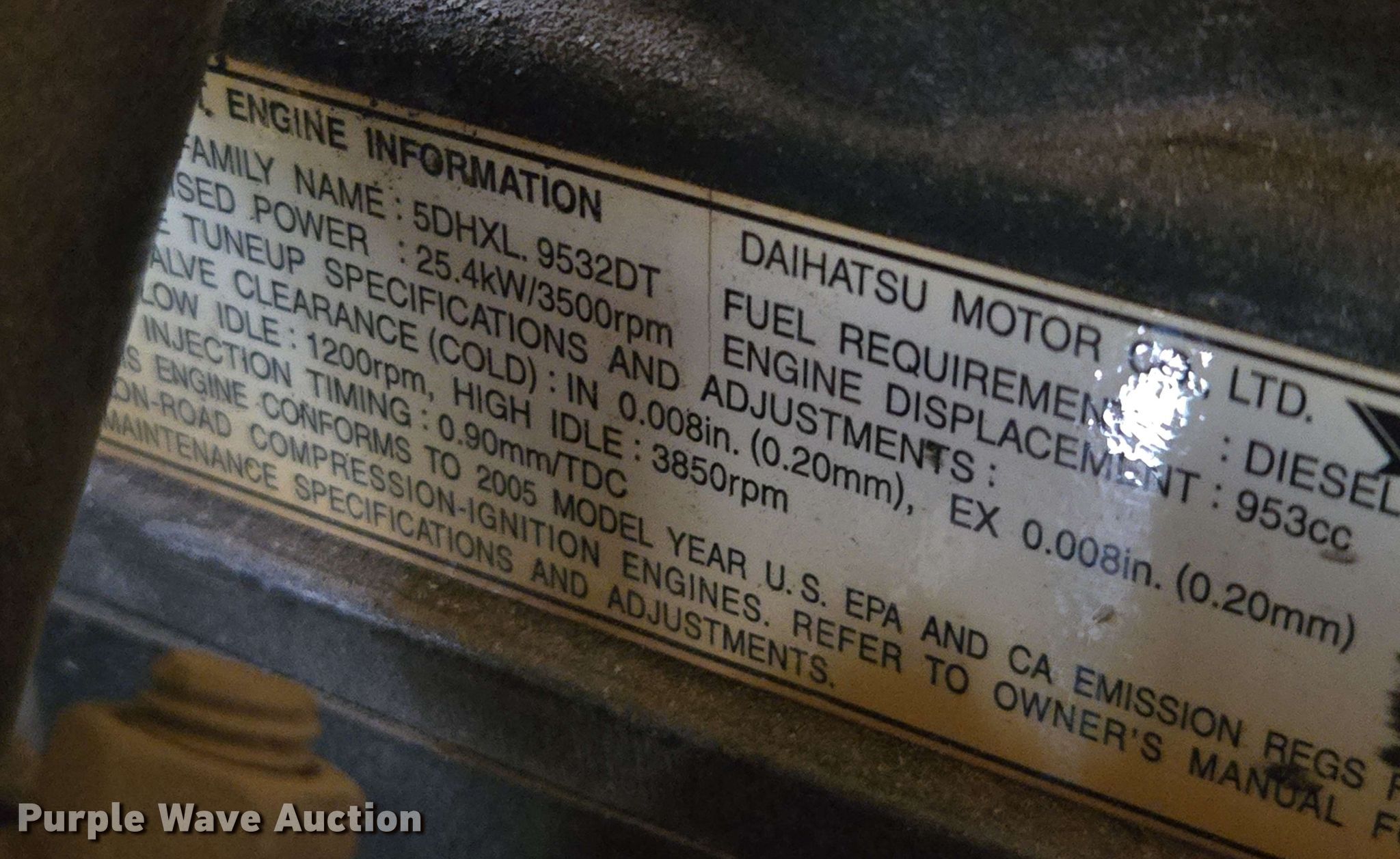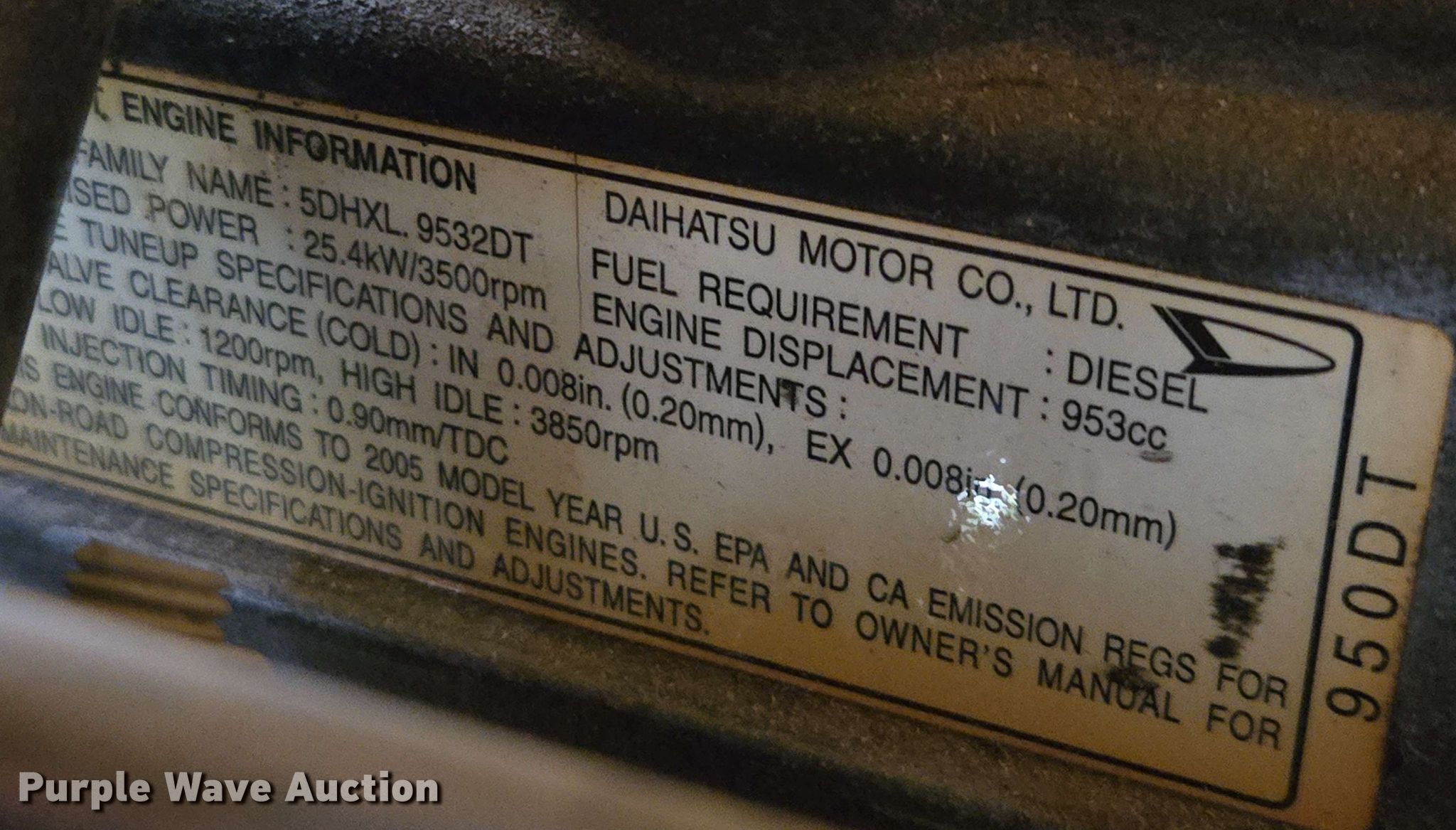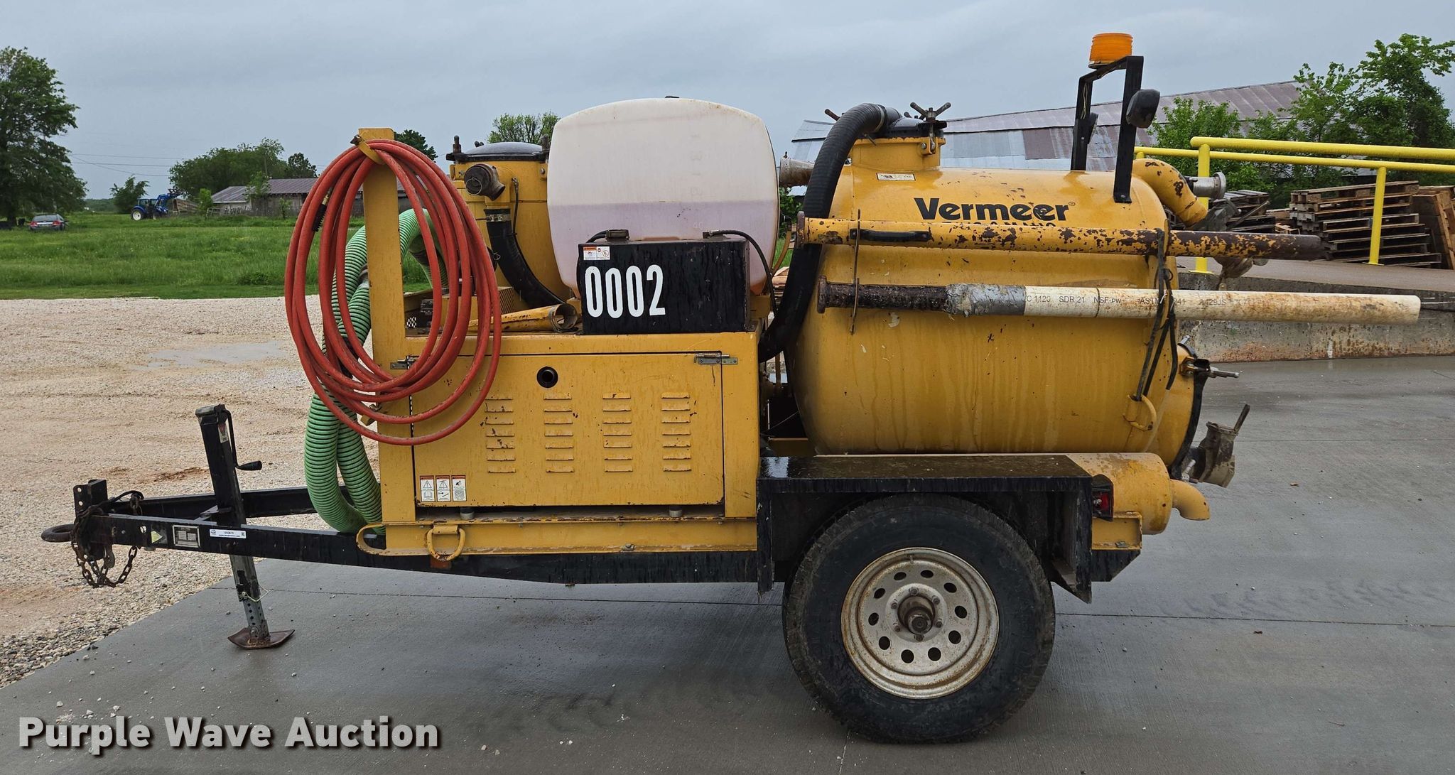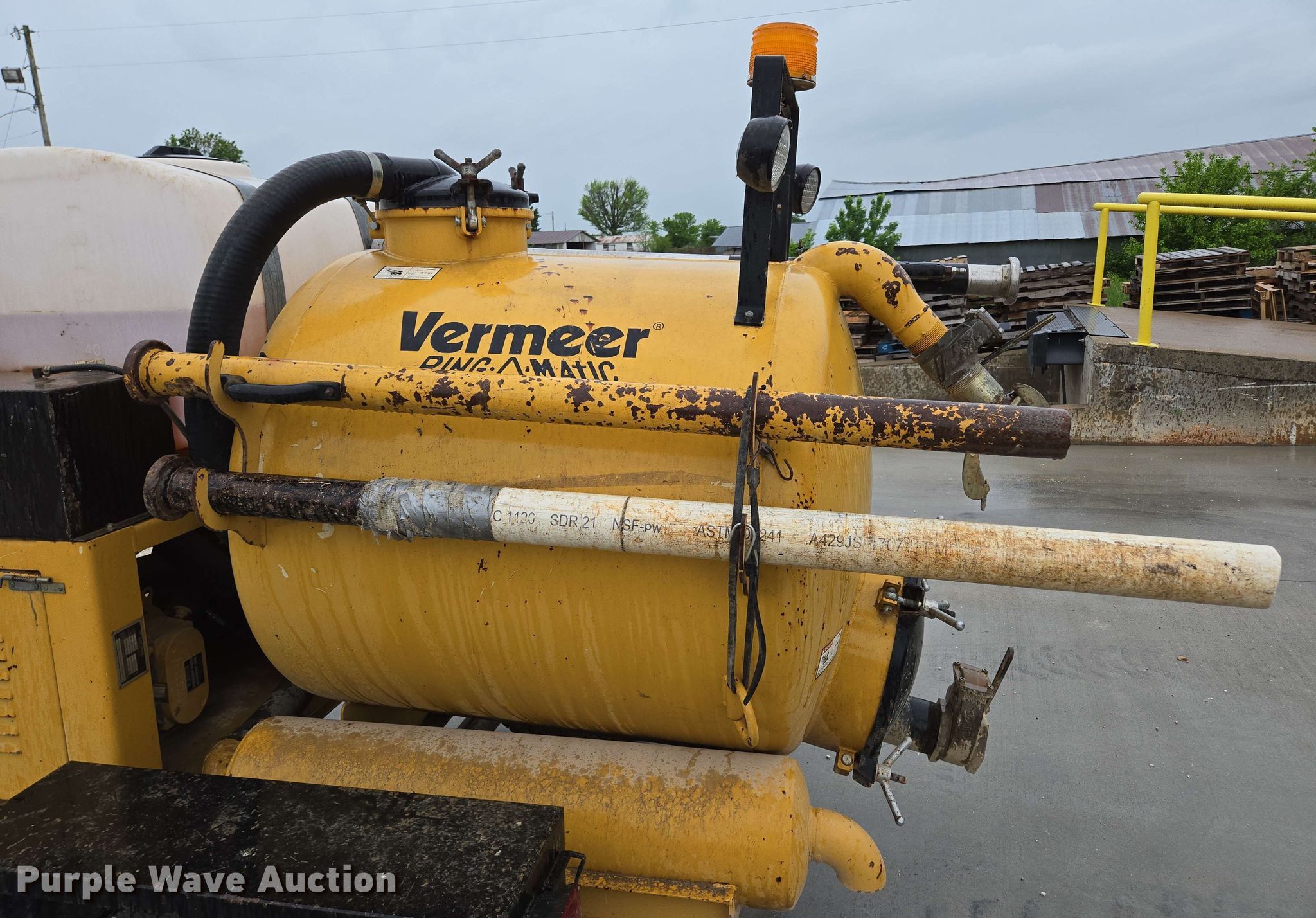 2005 Vermeer Ring-O-Matic 275 vacuum excavator. Hours: 123 on meter, VIN: 1R9J216115P303027, Unit #: 0002. Engine Diahatsu, Displacement: 953 cc, Cylinders: 3, Fuel type: Diesel, kW: 25.4. Features Spoils tank Capacity: 150 gallons, Water tank Capacity: 100 gallons, Water pump Cat Pumps 56RS, Vacuum pump Gardner Denver GACLBPAO188, Suction hose Diameter: 3.5". Trailer 14' 6" L x 6' 6" W, Hitch: Pintle, Suspension: Torsion, Brakes: Electric, Axles: Single, Tire size: LT245/75R16, GVWR: 3,030 lbs. This is worksite support equipment and will not come with a title. Transfer of ownership documentation will be a bill of sale. Hills Electric Inc. Farmington, AR 72730